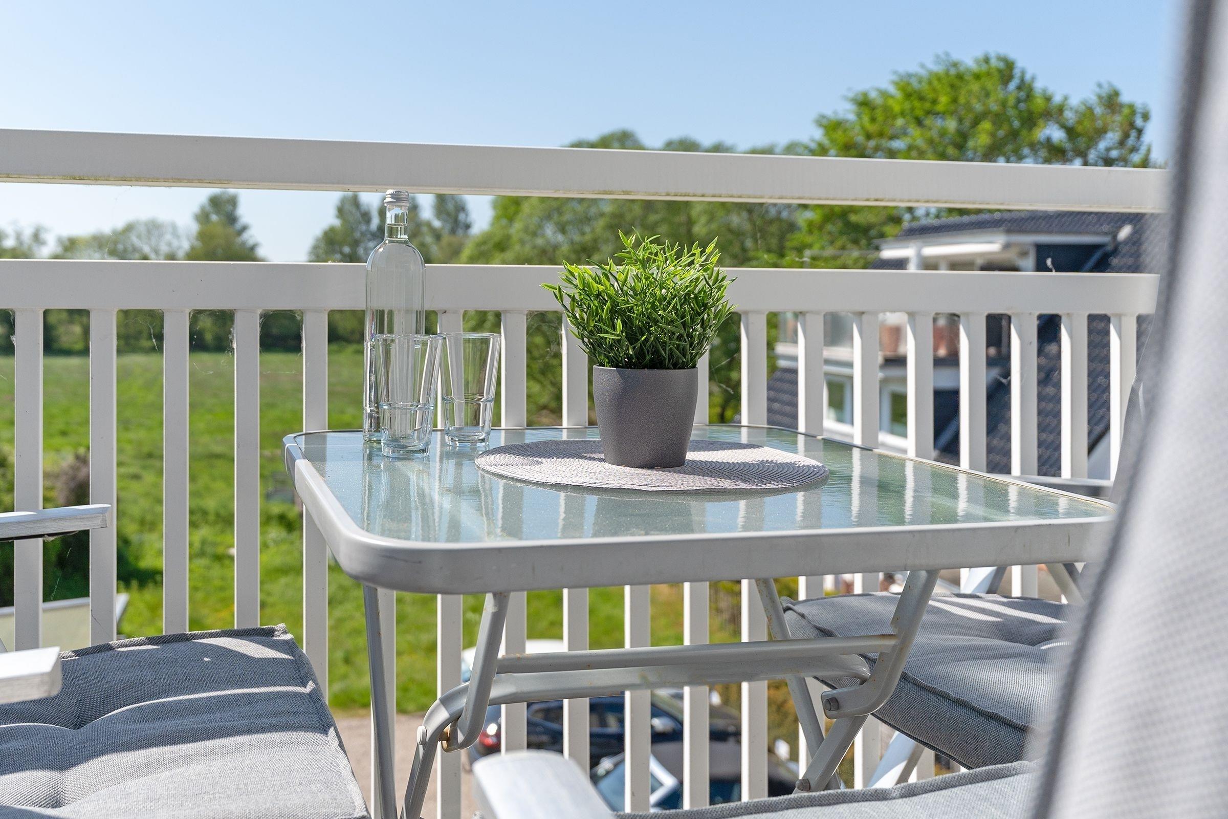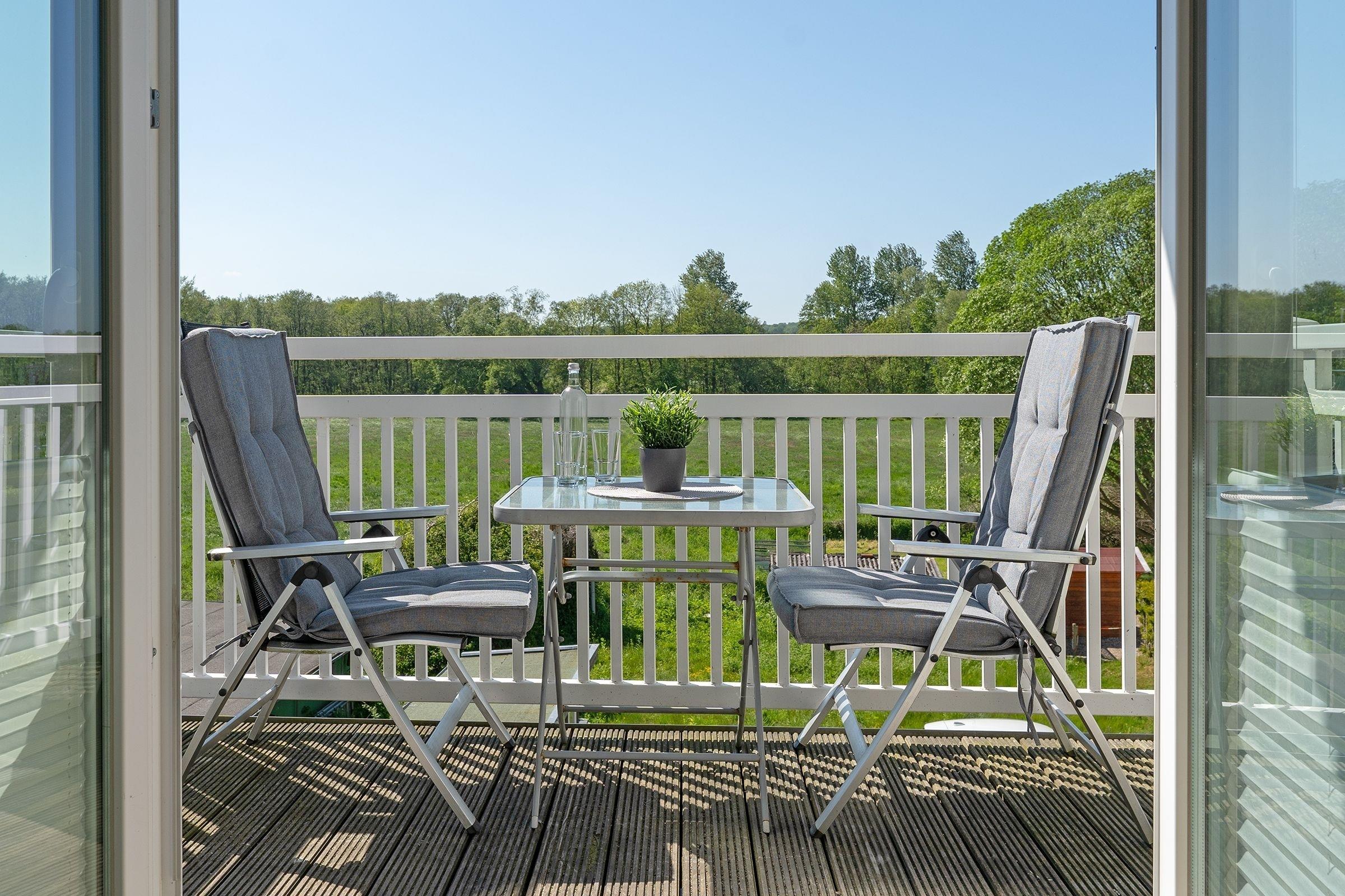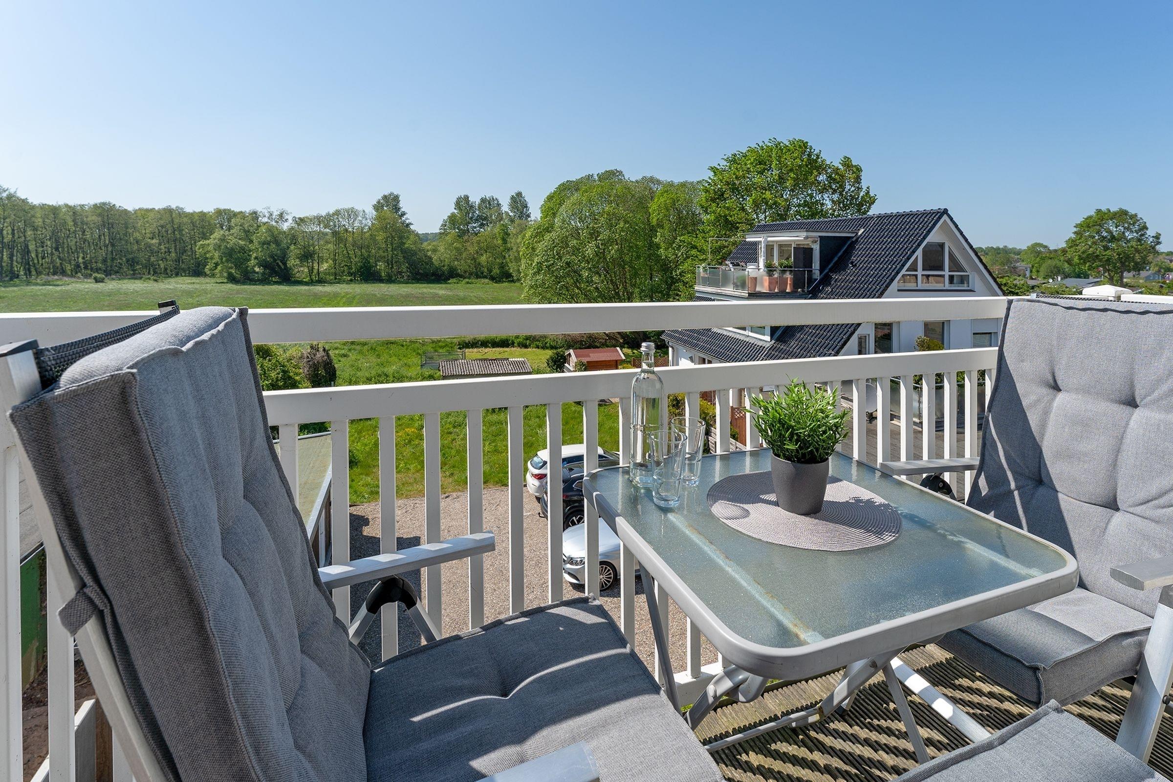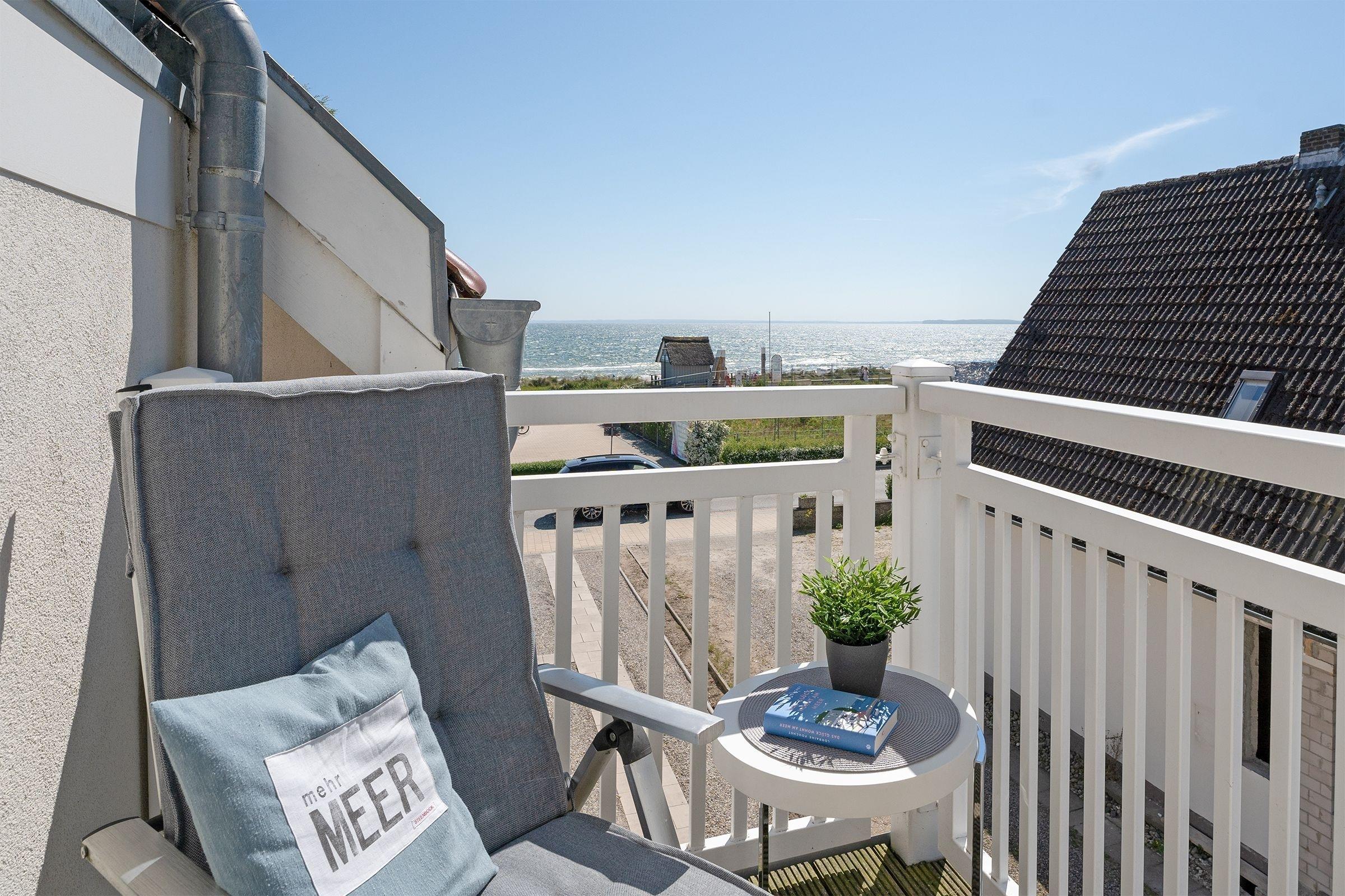 Modern und behaglich eingerichtet erstreckt sich das Sonnendeck über 2 Ebenen. In bester Lage von Haffkrug genießen Sie von 2 Balkonen den Meerblick oder den Blick ins Grüne. Eine offene Wohnküche mit Natursteinboden und Fußbodenheizung, ein modernes Bad mit Regendusche, sowie zwei gemütliche separate Schlafzimmer sorgen für Wohlbefinden. Ein Schlafzimmer verfügt über ein komfortables Doppelbett (2x 90x200 cm), ein weitere über zwei separate Einzelbetten (je 80x200 cm). Genießen Sie den wunderbaren Blick auf die Ostsee. Durch die Süd-West-Ausrichtung der Balkone können Sie die Sonnenstrahlen von mittags bis abends rundum auskosten.