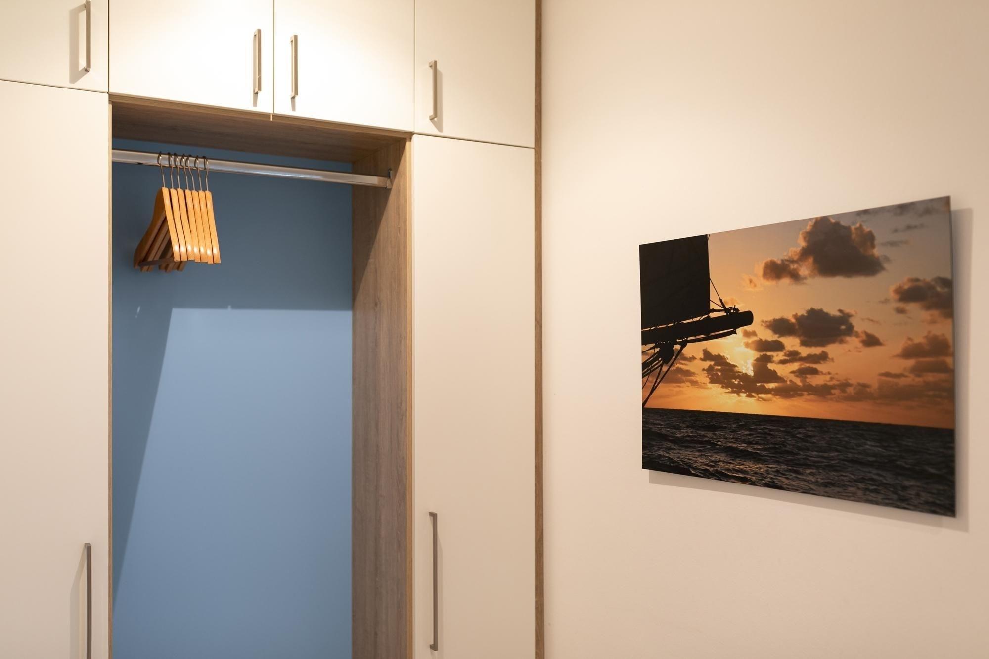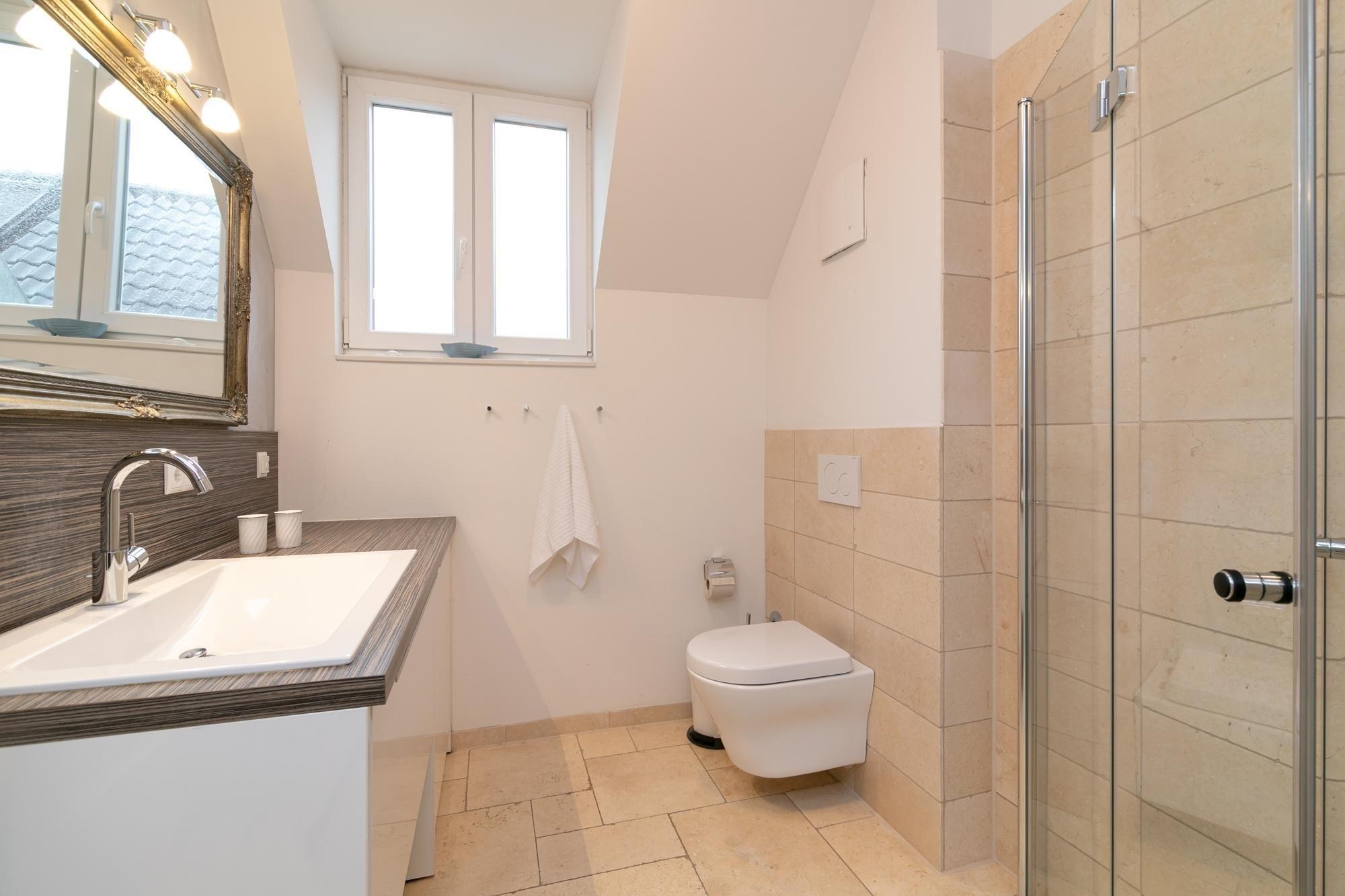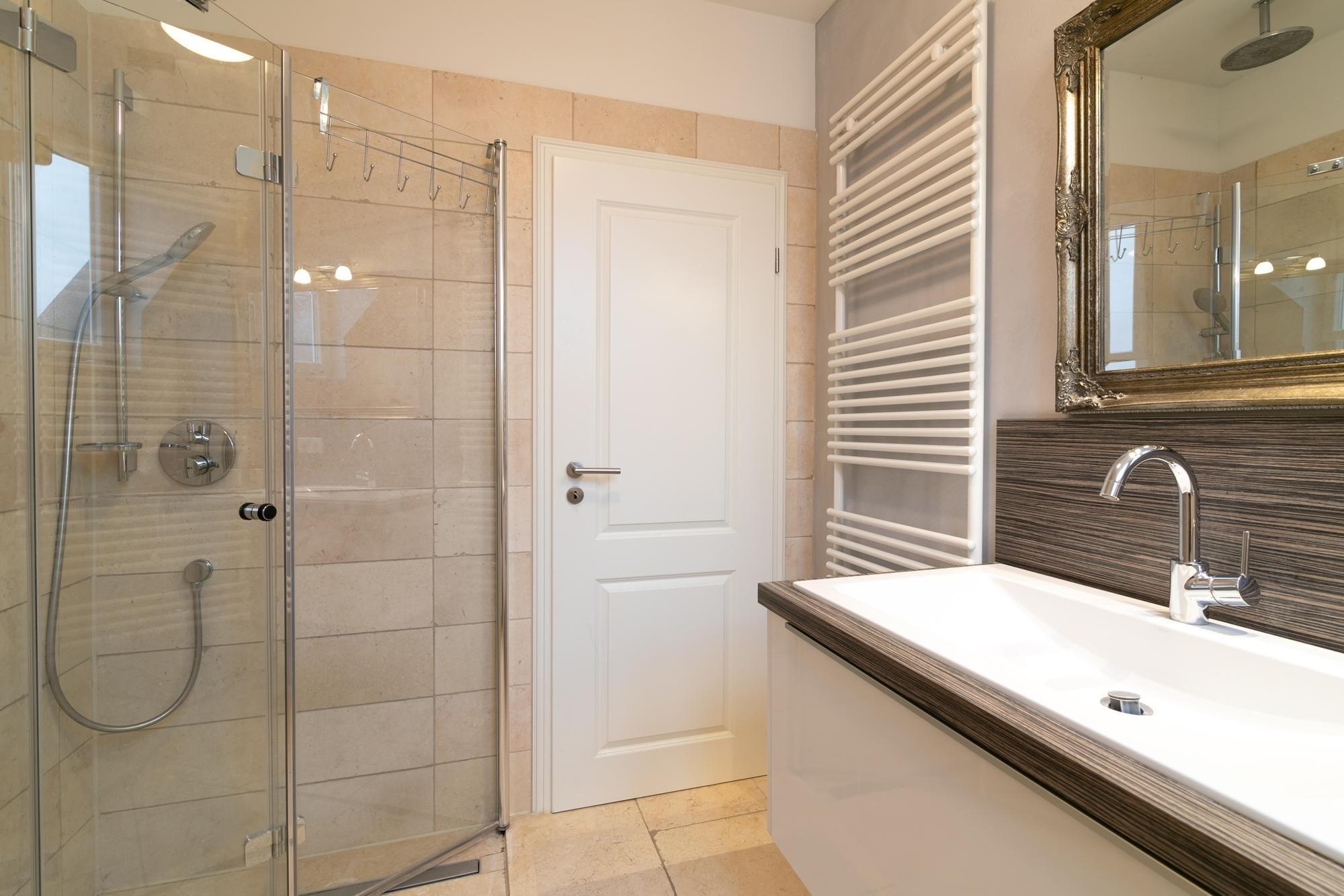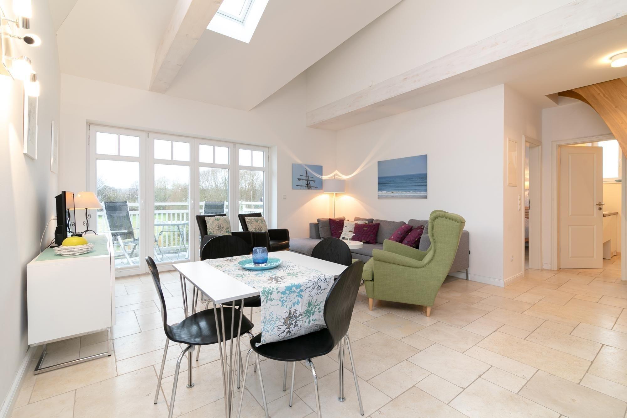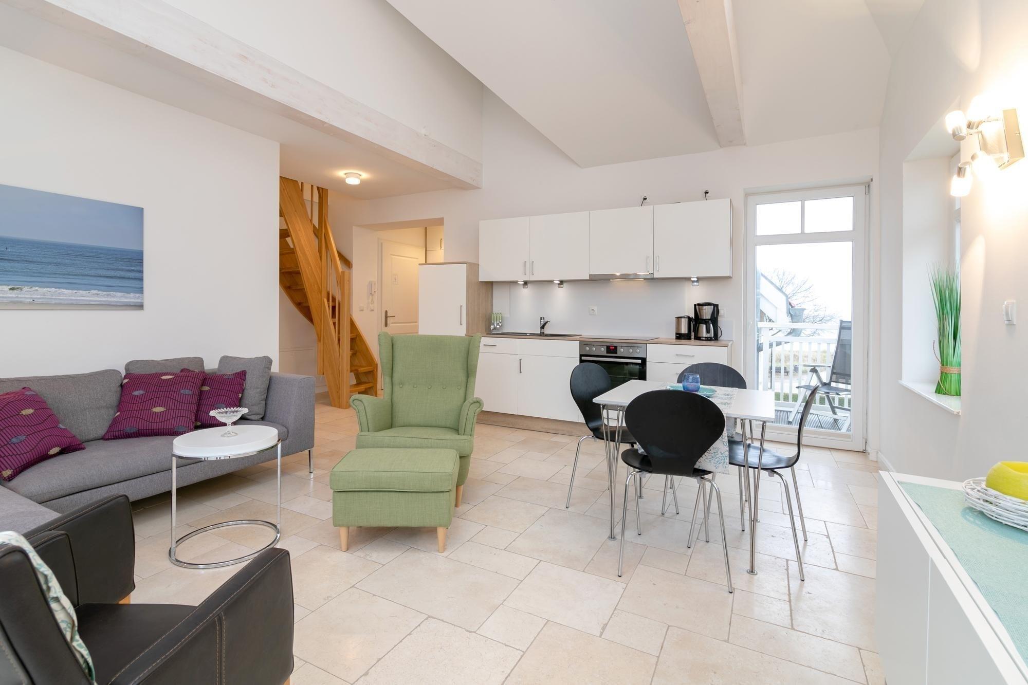 Modern und behaglich eingerichtet erstreckt sich das Sonnendeck über 2 Ebenen. In bester Lage von Haffkrug genießen Sie von 2 Balkonen den Meerblick oder den Blick ins Grüne. Eine offene Wohnküche mit Natursteinboden und Fußbodenheizung, ein modernes Bad mit Regendusche, sowie zwei gemütliche separate Schlafzimmer sorgen für Wohlbefinden. Ein Schlafzimmer verfügt über ein komfortables Doppelbett (2x 90x200 cm), ein weitere über zwei separate Einzelbetten (je 80x200 cm). Genießen Sie den wunderbaren Blick auf die Ostsee. Durch die Süd-West-Ausrichtung der Balkone können Sie die Sonnenstrahlen von mittags bis abends rundum auskosten.