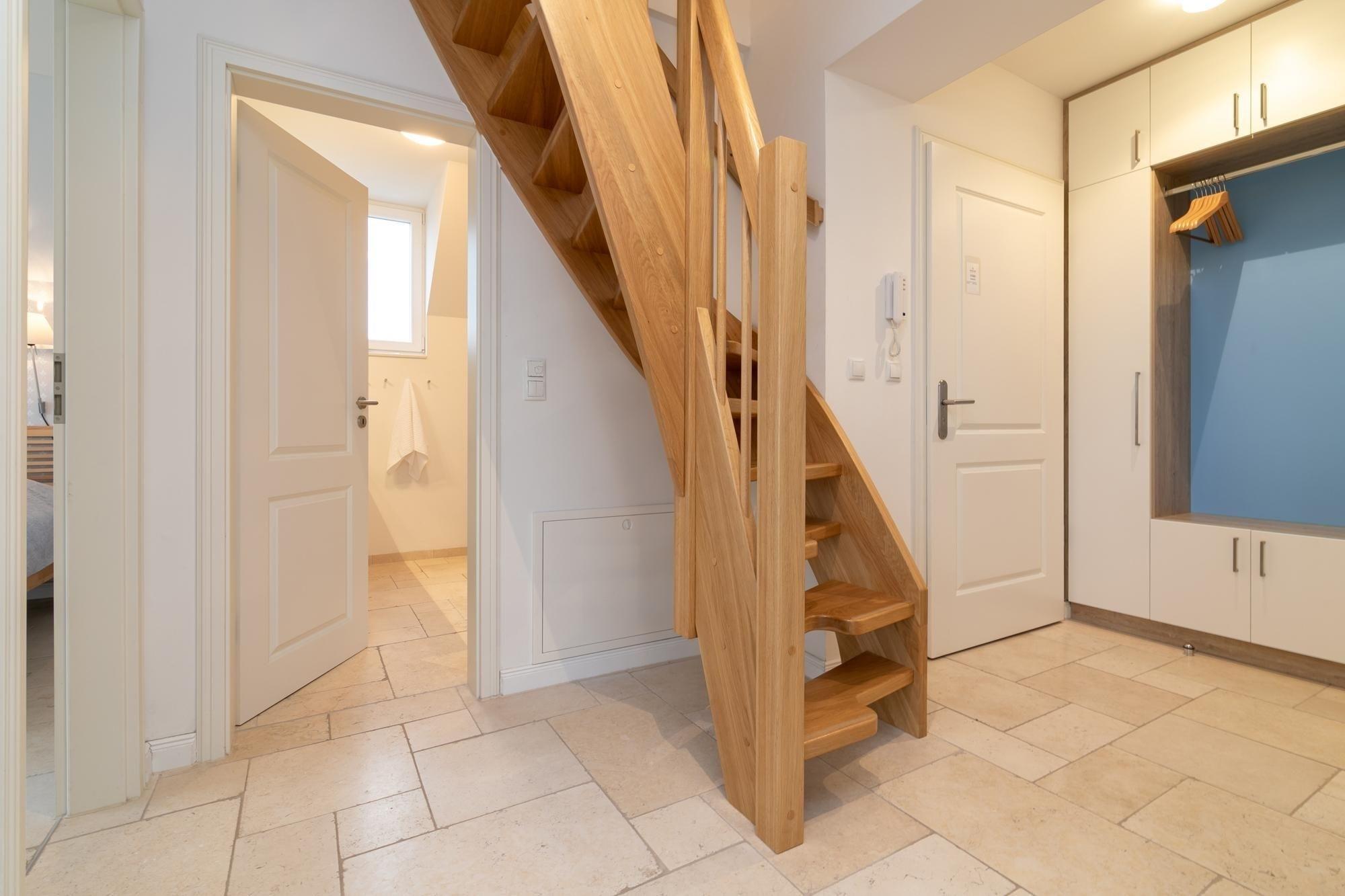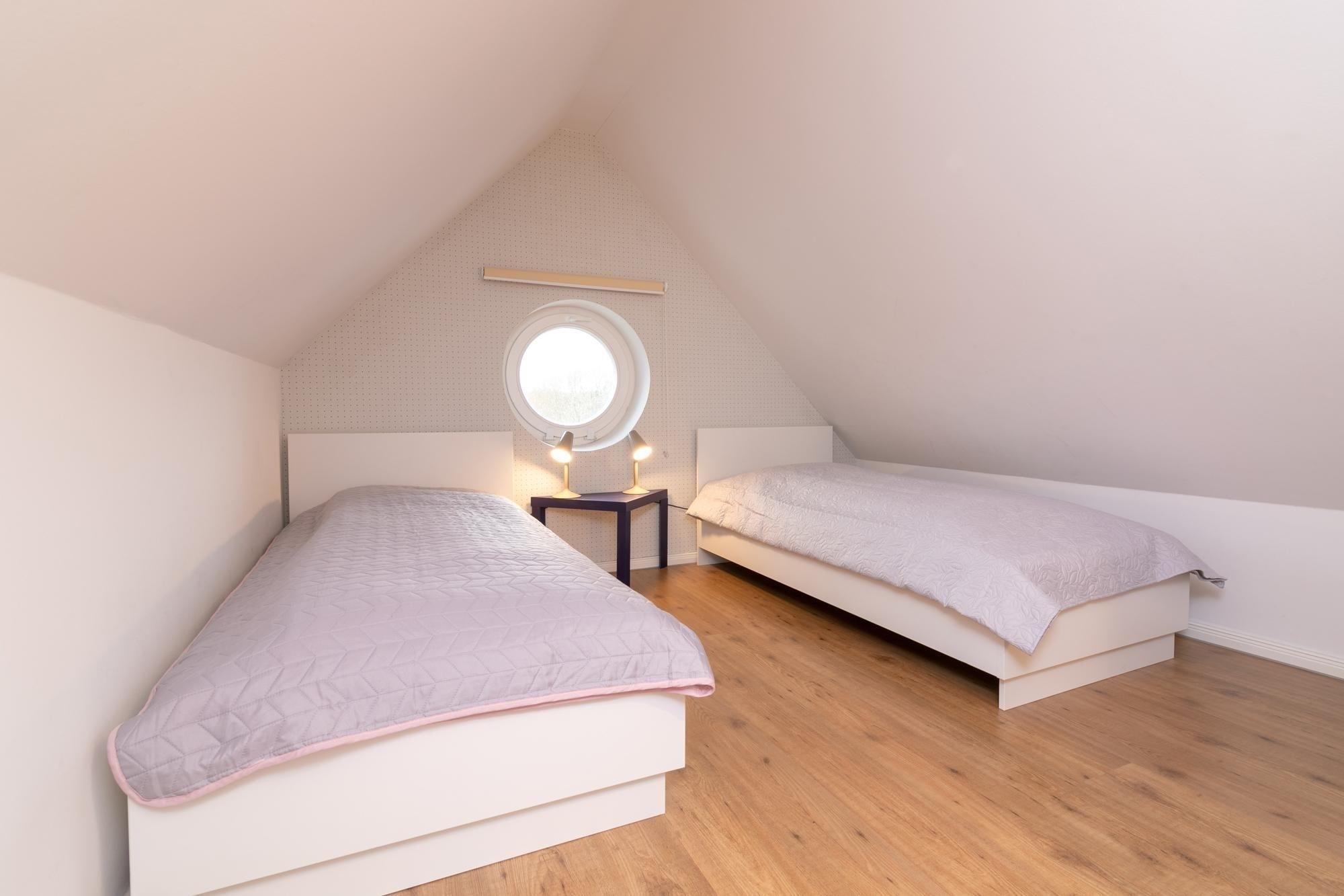 Bitte beachten Sie, dass eine steile Treppe in das Dachgeschoss mit den zwei Einzelbetten führt.