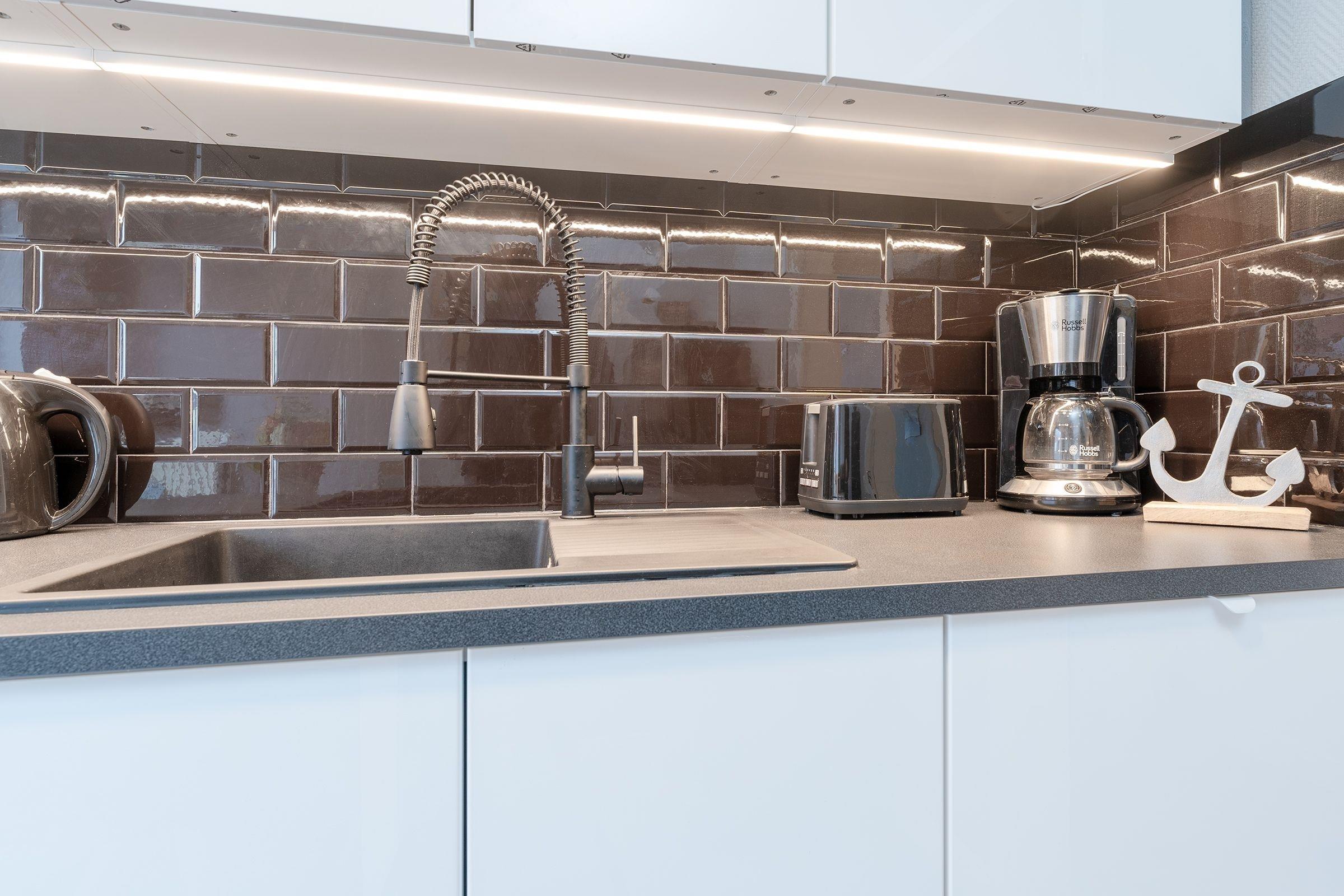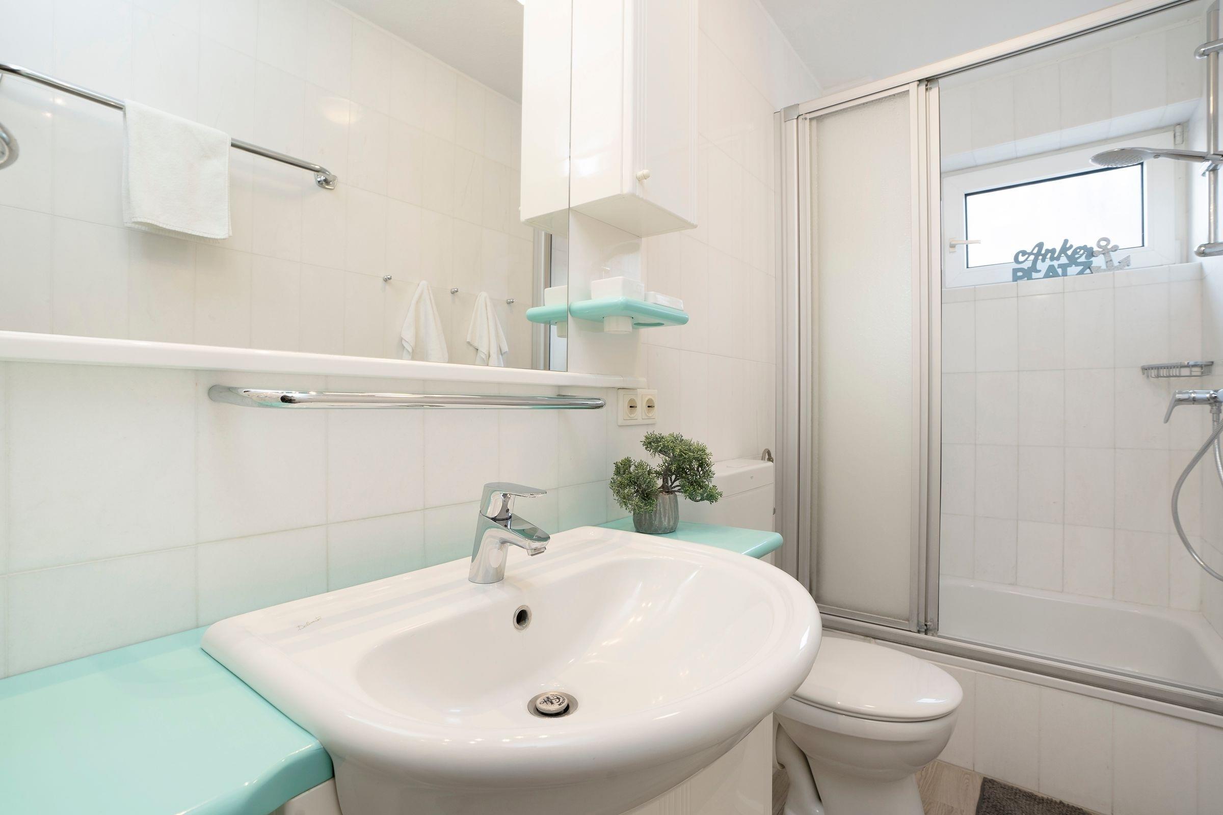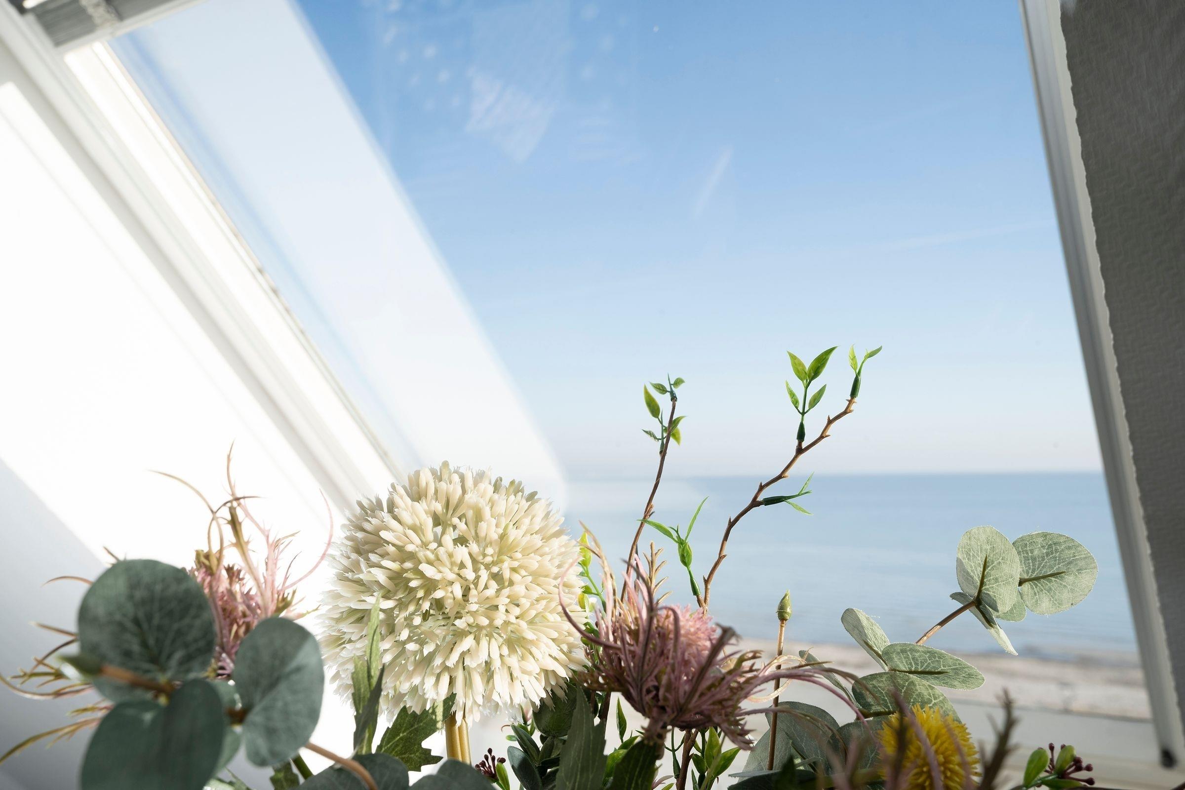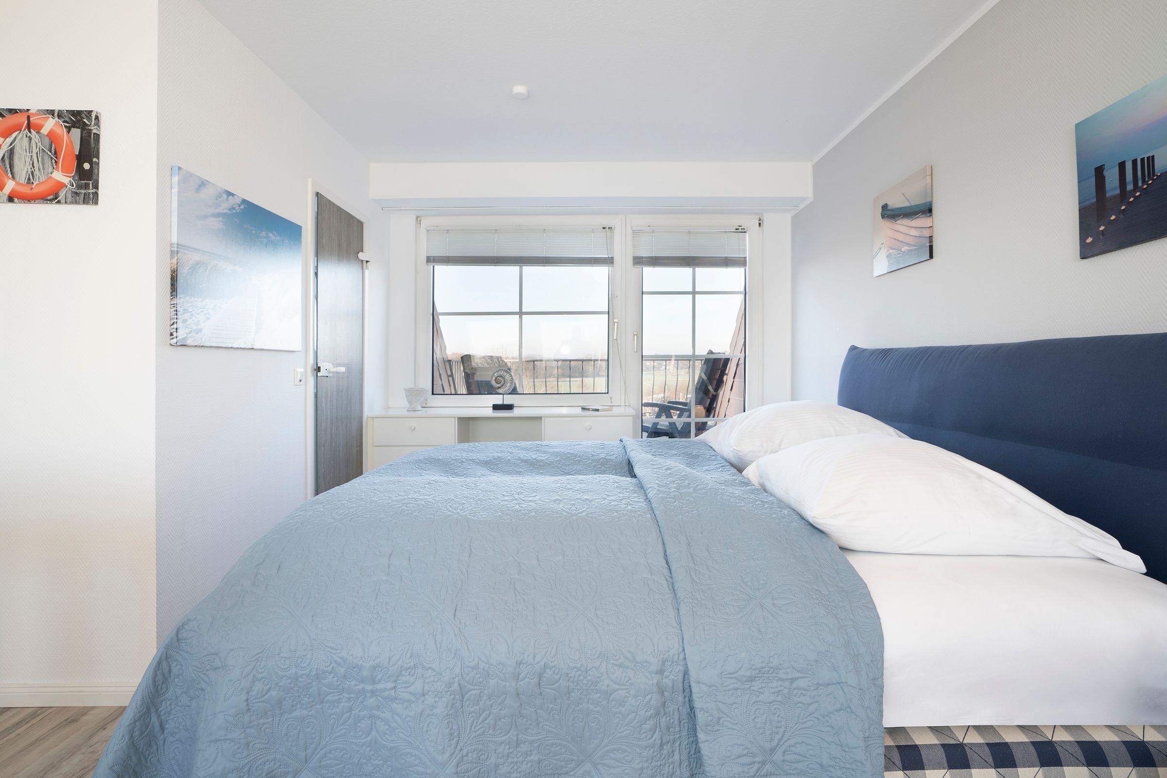 Der freundlich helle Wohnbereich lädt mit großer Couch zum Kuscheln vor dem Fernseher ein. Von hier gelangen Sie auf den Balkon, auf dem Sie schon morgens beim Frühstück den fantastischen Blick auf das Meer genießen können. Dank der gut ausgestatteten Küche können Sie selbst entscheiden, ob Sie das tolle kulinarische Angebot der Region nutzen oder sich doch lieber selbst versorgen möchten. Nach einem ereignisreichen Urlaubstag entspannen Sie im Doppelbett (2x 90x200 cm) im separaten Schlafzimmer. Auf dieser Etage befindet sich außerdem ein Duschbad. Über eine Wendeltreppe erreichen Sie das OG, wo ein weiteres Schlafzimmer mit Doppelbett (2x 90x200 cm) wartet. Genießen Sie nach dem Aufwachen die gute Ostseeluft auf einem eigenen kleinen Balkon. Auch diese Etage verfügt über ein Duschbad.