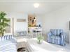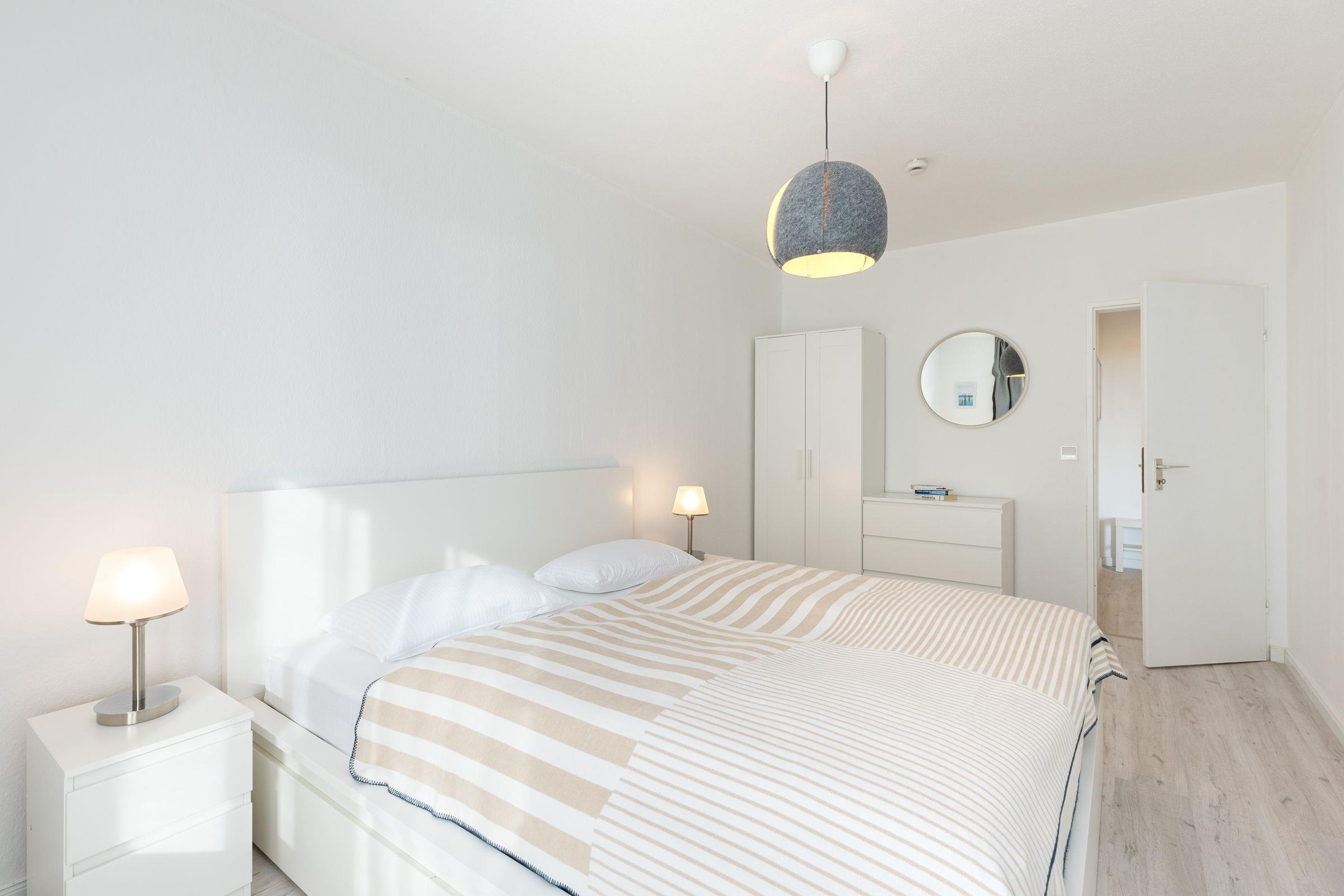 Vom Flur aus gelangen Sie in den maritimen Wohnbereich mit gemütlicher Schlafcouch (160x200 cm), TV und einem Essplatz, an dem Sie gemeinsam Ihre Mahlzeiten einnehmen können. Die angrenzende Küche ist mit allen Annehmlichkeiten ausgestattet. Über den Tresen zwischen Küche und Wohnzimmer kann alles bequem zum Esstisch gereicht oder zusätzlich abgestellt werden. Geruhsame Nächte verspricht das helle Schlafzimmer mit Doppelbett (2 x90x200cm). Vom Wohnbereich sowie vom Schlafzimmer aus gelangen Sie auf den Balkon und können den seitlichen Blick auf die schöne Ostsee genießen.