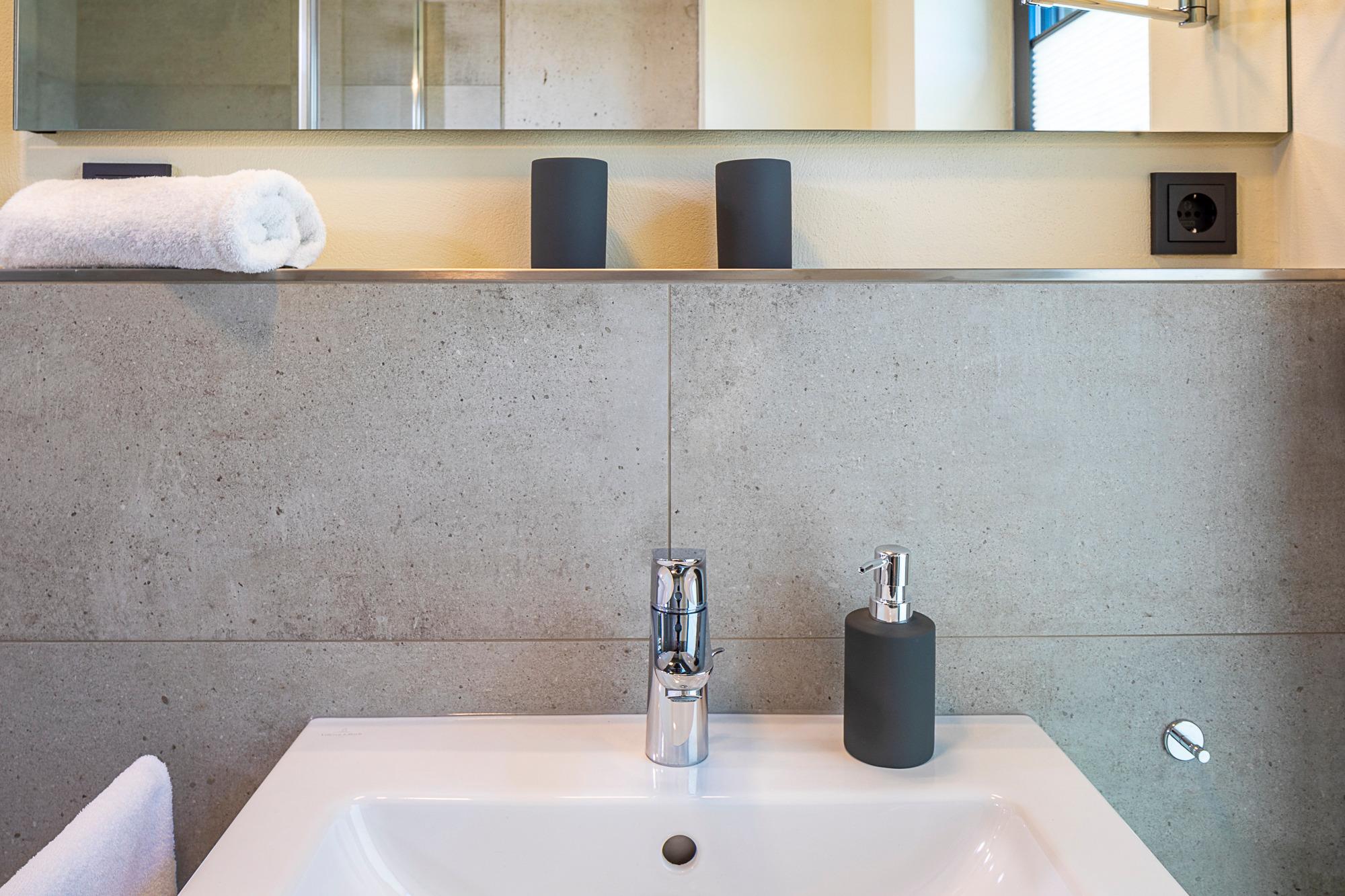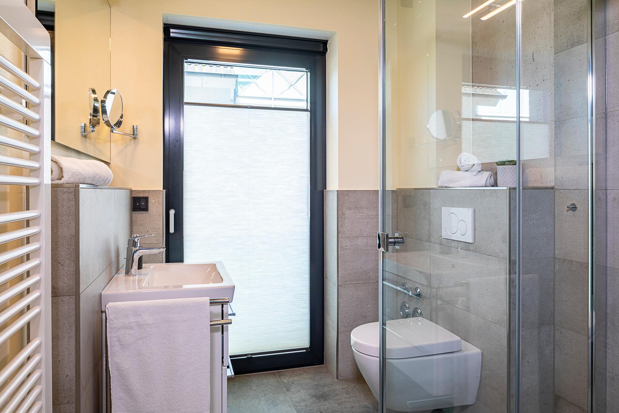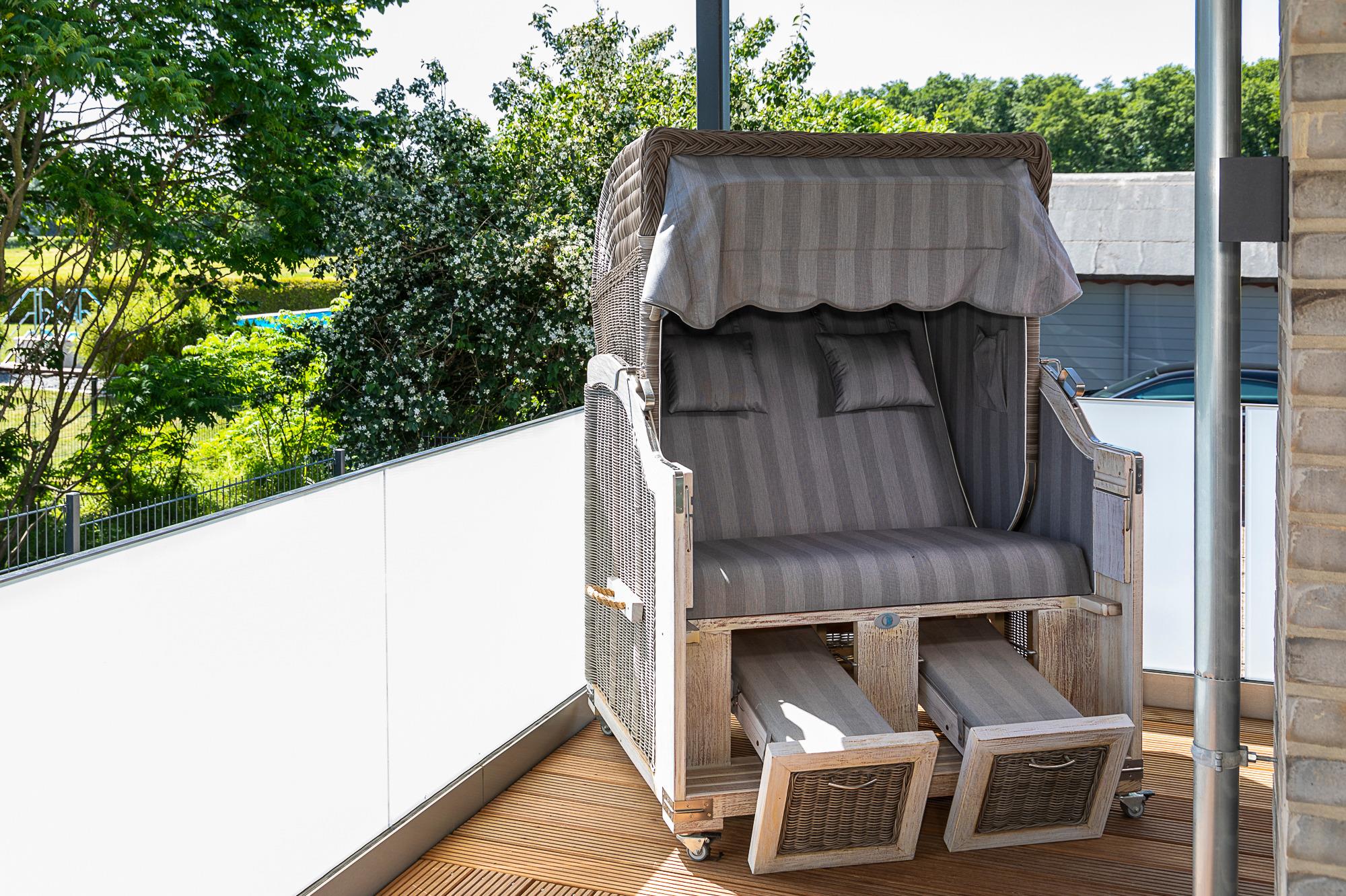 Diese 2-Zimmer-Wohnung besticht durch zeitlos elegante Einrichtung (Design-Pandomo-Fußboden). Das helle Wohnzimmer, mit Flachbild-TV, Schlafsofa (1,40 x 2,00m) und die komplett ausgestattete Küchenzeile eignen sich für einen komfortablen Urlaub. Großzügiges Schlafzimmer mit einem Boxspringbett (1,80 x 2,00m), durchgehende Matratze (der Firma Jensen), einem Kleiderschrank, Kommode und TV. Das Bad ist mit einer bodengleichen Dusche / Regendusche sowie einem Handtuchheizkörper ausgestattet. Großer, halb umlaufender Balkon nach Südwesten, mit seitlichem Ostseeblick sowie weitem Blick ins Grüne – hier genießen Sie die Mittags- und Nachmittagssonne bis zum Abend. Gartenmöbel sowie ein Strandkorb werden Sie hier zum Lesen oder einfach nur zum Träumen einladen. Zur komfortablen und sicheren Unterbringung Ihres PKWs steht Ihnen ein Außenstellplatz direkt am Haus zur Verfügung. Ebenso im Haus ein Gemeinschaftsraum mit Waschmaschine und Trockner, die über einen Münzzähler zu bedienen sind. Auch Fahrräder können sicher im abschließbaren Fahrradraum untergestellt werden