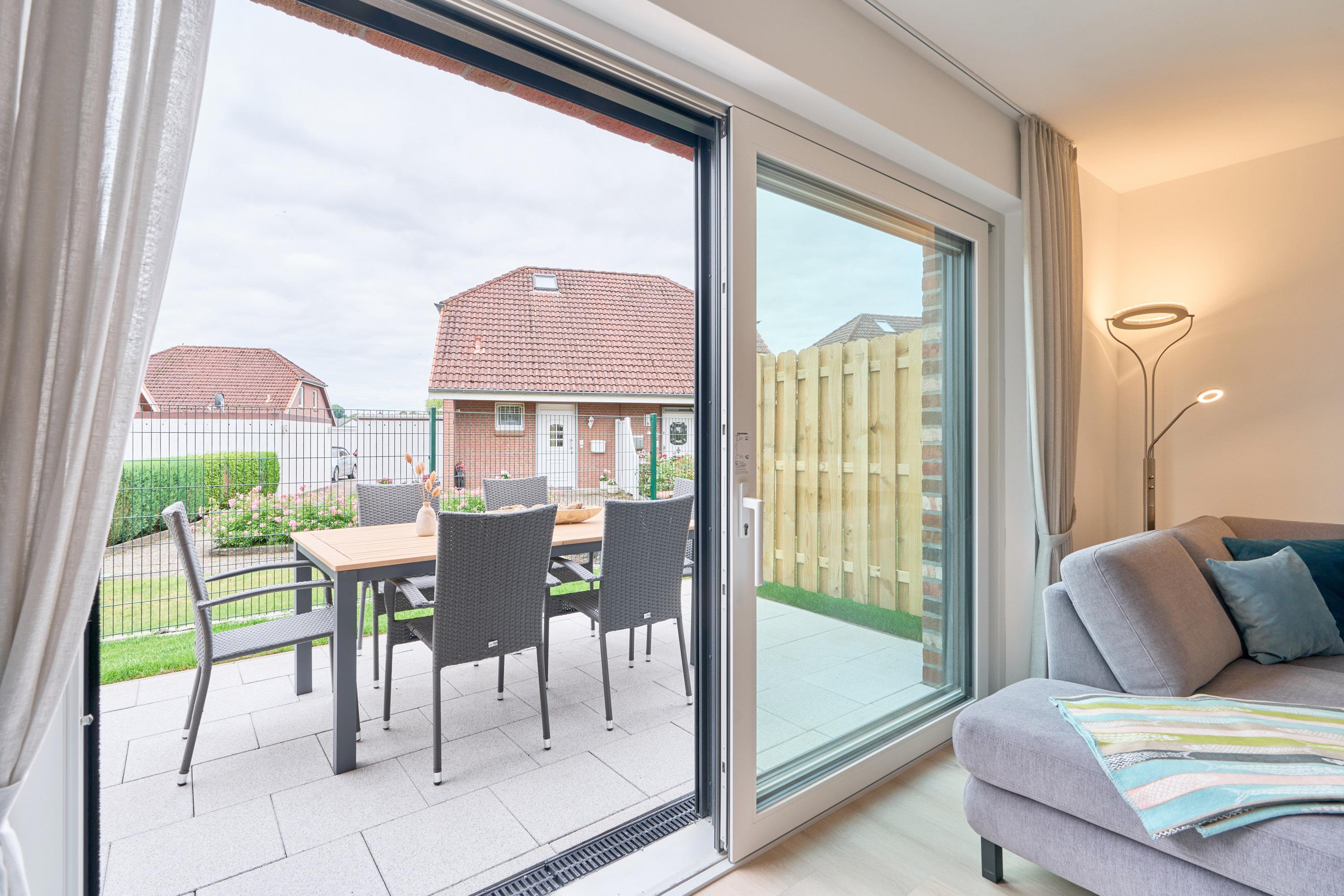 Endreihenhaus, ca. 100 m² auf zwei Ebenen, 3 Schlafzimmer, 2 Bäder, für bis zu 6 Personen, Südterrasse, Außenstellplatz mit E-Ladestation