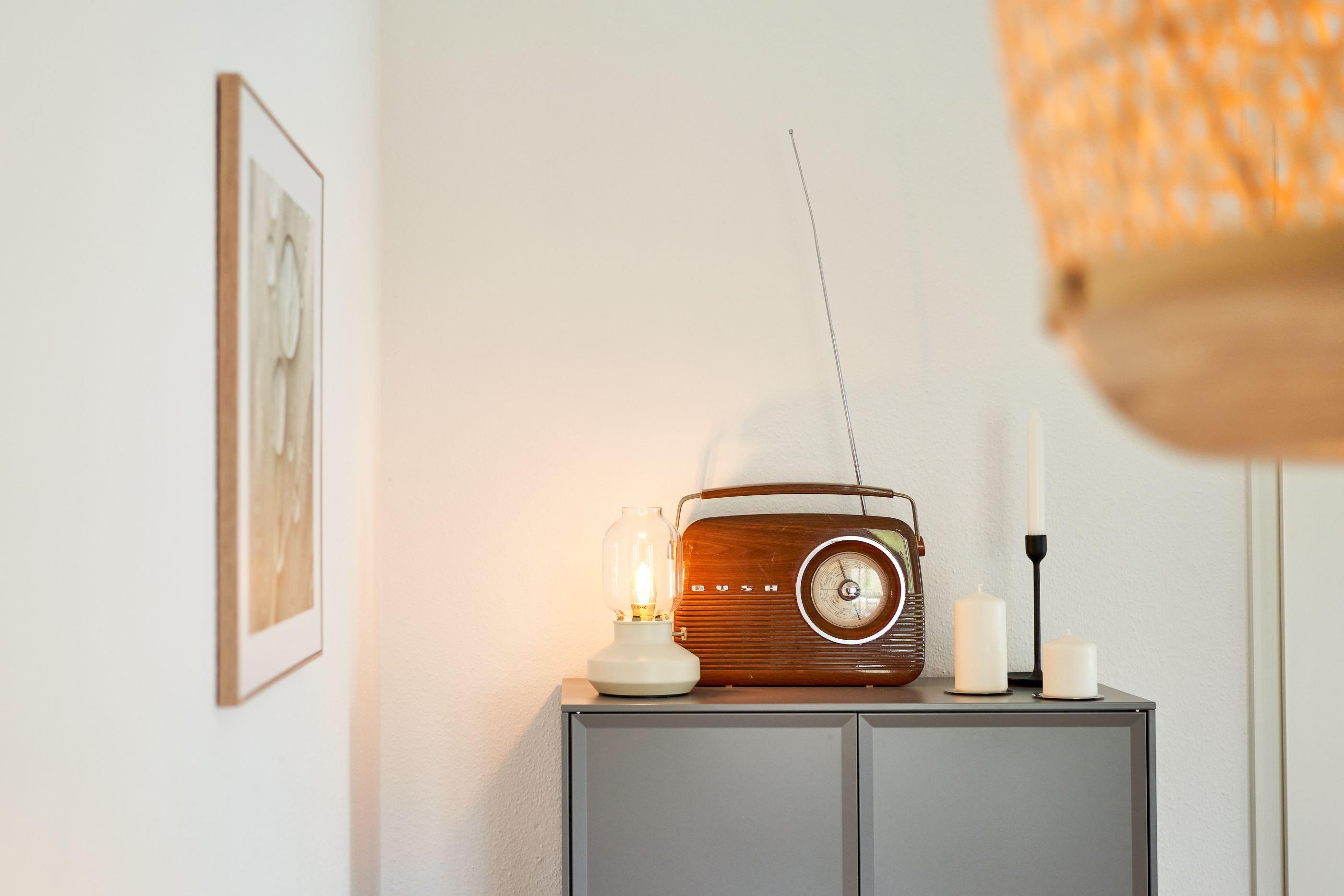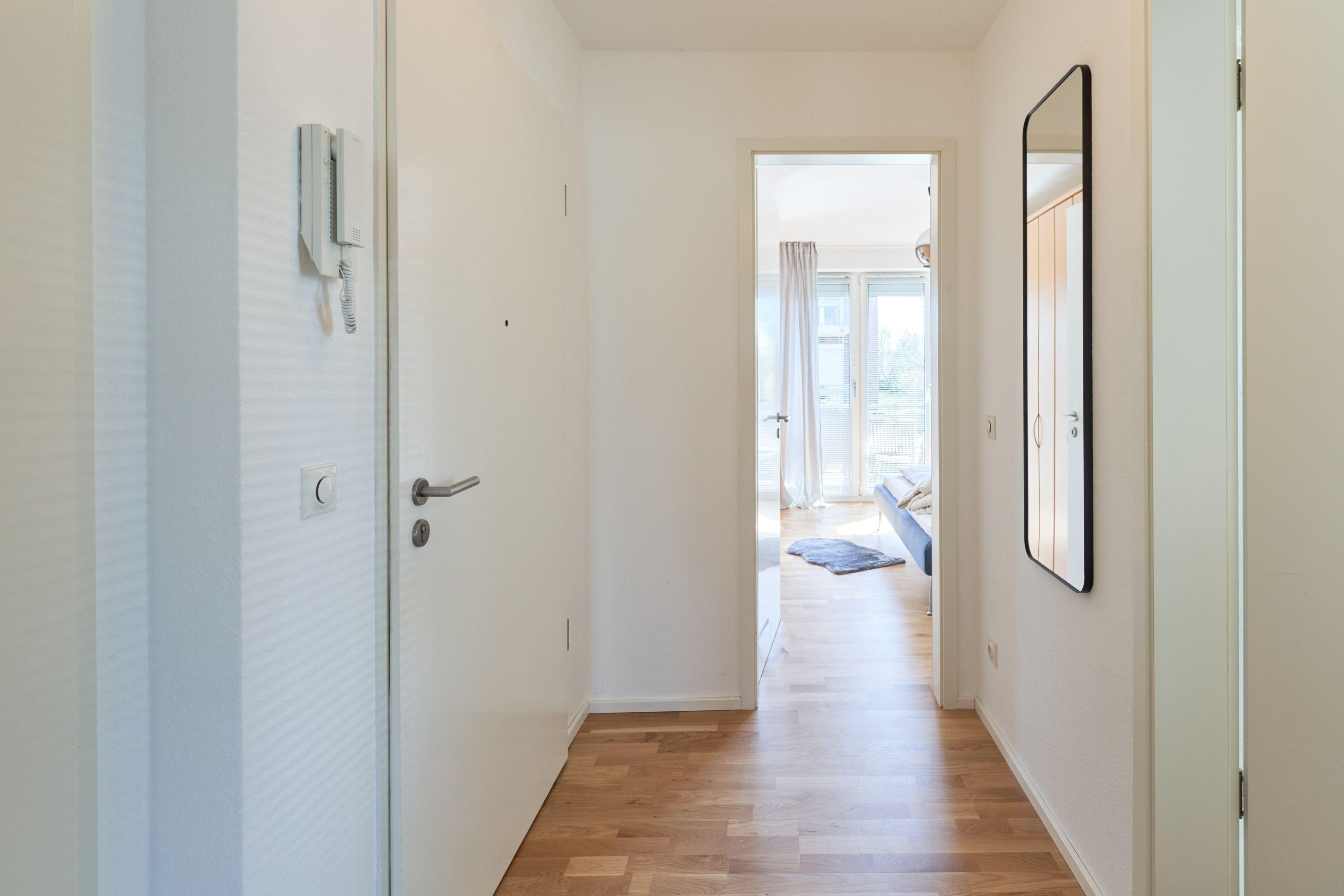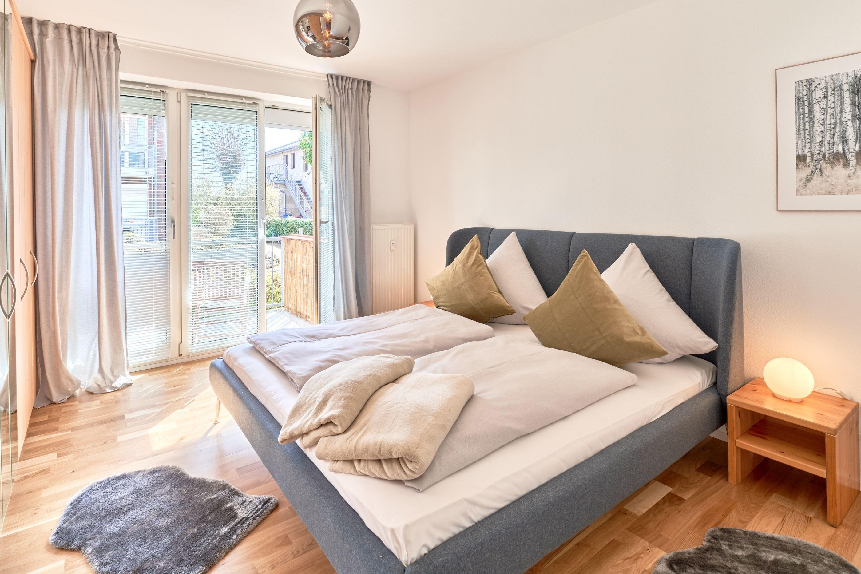 Diese helle Ferienwohnung wird sowohl von der Morgen- als auch von der Abendsonne durchflutet. Der gemütliche Wohn-Essbereich verfügt über einen Flachbildfernseher mit Soundbar, Kabel/SAT-TV und einen kostenlosen WLAN-Internetanschluss sowie ein Sofa (ausklappbar zu einem Doppelbett, mit gesonderter Matratze, 1,40 m x 2,00 m). Auf dem angrenzenden Balkon können Sie die Nachmittagssonne genießen. Echtholz-Balkonmöbel bieten ausreichend Platz für gemütliche Stunden. Die Küche verfügt über alles, was für eine Ferienwohnung selbstverständlich ist. Sie ist ausgestattet mit Backofen, Induktionskochfeld, Kühlschrank, Gefrierfach, Geschirrspüler, Kaffeemaschine, Wasserkocher und Toaster. Das Schlafzimmer verfügt über ein Doppelbett und einen geräumigen Kleiderschrank. Vom Schlafzimmer aus erreichen Sie den zweiten Balkon in Richtung Osten, mit der Morgensonne. Zur Verdunkelung sind elektrische Rollläden angebracht. Im Tageslicht-Duschbad finden Sie einen großen Waschtisch und eine Spiegelwand sowie die zur Ferienwohnung gehörende Waschmaschine.