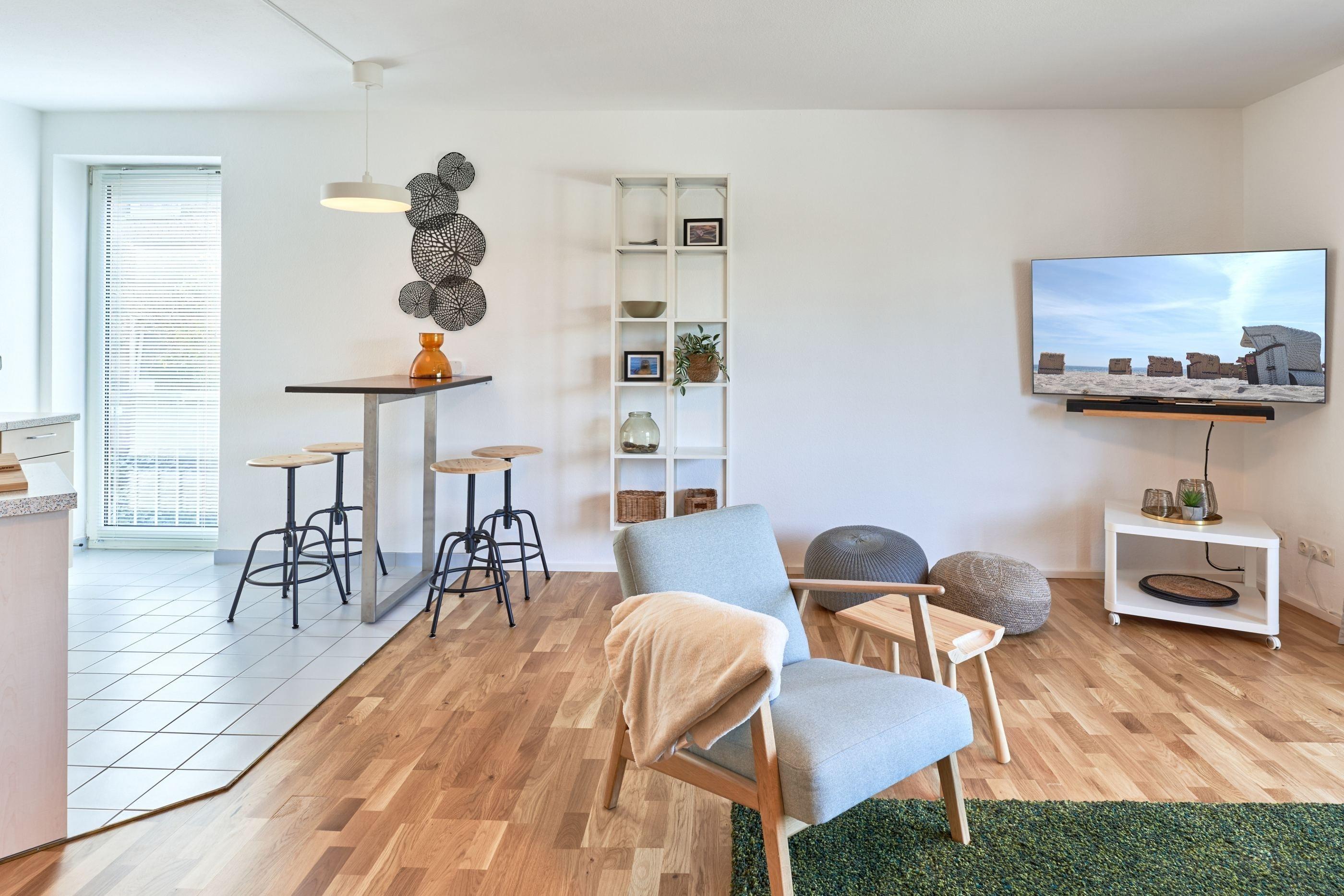 Die Nichtraucher-Ferienwohnung liegt gegenüber dem Strand. In der Strandkorbsaison (15.05. - 15.09.) steht Ihnen hier ein kostenloser Strandkorb gegenüber am Strand zur Verfügung. Ein Kinderreisebett und ein Hochstuhl können kostenpflichtig dazugebucht werden. Eine eigene Garage sorgt für eine sichere Unterbringung Ihres Autos. Auch mitgebrachte Fahrräder können in einem separaten Fahrradkeller untergestellt werden. Möchten Sie mit zwei Familien anreisen oder benötigen Sie zwei Wohnungen in einem Haus? Dann eignen sich diese Ferienwohnung und die Nachbar-Ferienwohnungen Ostwind und Stranddüne besonders.