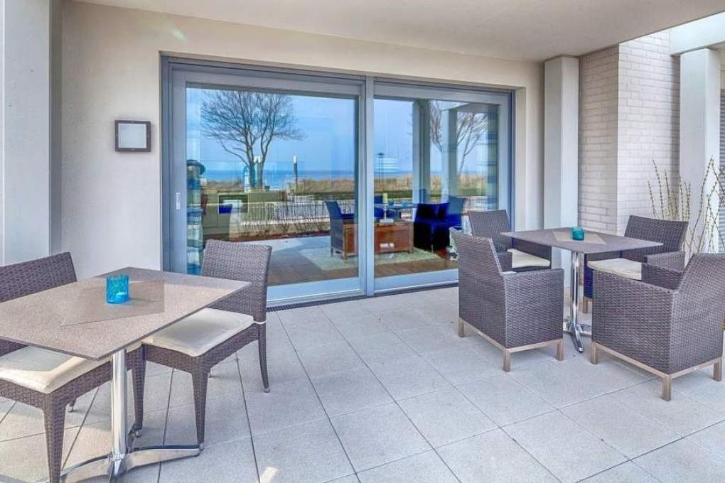 Die Nichtraucher-Ferienwohnung eignet sich für Allergiker, da keine Haustiere erlaubt sind, und sie ist für Rollstuhlfahrer geeignet. Sie liegt direkt gegenüber dem Strand und in der Strandkorbsaison (15.05. - 15.09.) steht Ihnen hier ein kostenloser Strandkorb zur Verfügung. Die überdachte Terrasse lädt zum Entspannen ein, von hier aus können Sie den Blick über die Ostsee genießen. In der ganzen Ferienwohnung ist eine Fußbodenheizung verlegt. Ein Kinderreisebett und ein Hochstuhl stehen Ihnen kostenlos zur Verfügung. Das Carport sorgt für eine sichere Unterbringung Ihres Autos. Für mitgebrachte Fahrräder steht Ihnen ein Fahrradkeller zur Verfügung.