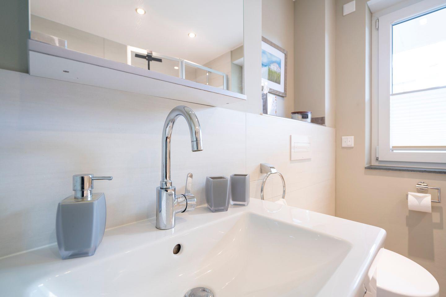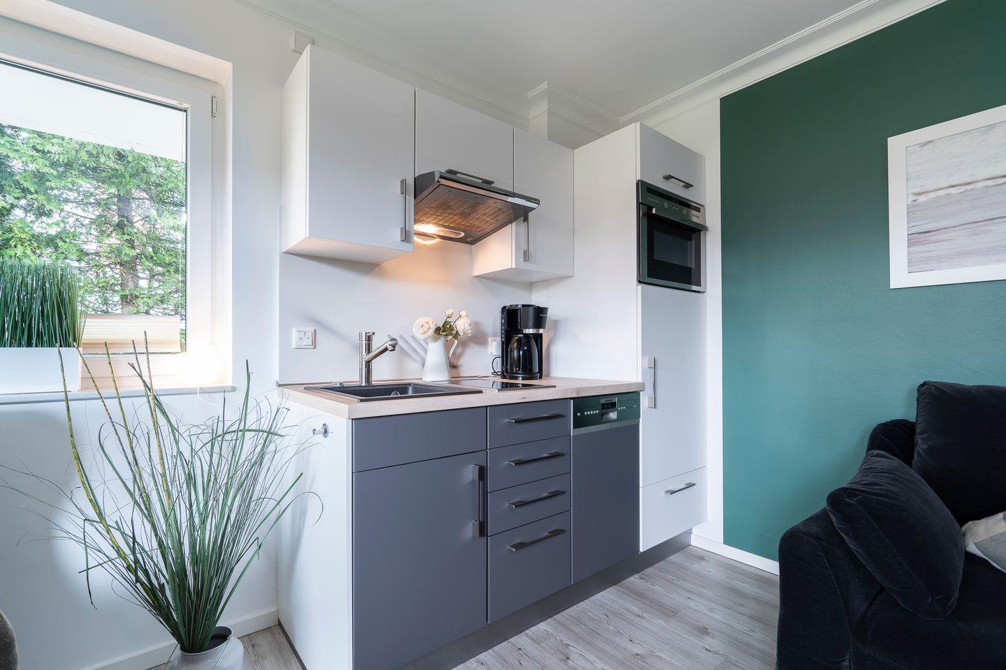 Herzlich willkommen in dieser einzigartigen Maisonette-Ferienwohnung, die Eleganz und Komfort nahtlos miteinander verbindet. Gelegen auf zwei Ebenen, bietet dieses Appartement durch seine kluge Raumteilung perfekte Wohnmöglichkeiten sowohl für Familien als auch für zwei Paare. Eine geschmackvolle Wendeltreppe führt euch vom Eingangsbereich in den geräumigen Erdgeschossbereich. Genießt die Ruhe auf der gepflegten Terrasse in Westlage, umgeben von grünem Rasen und schützenden Hecken, die einen idyllischen Rückzugsort für entspannte Stunden bieten. Zusätzlichen Komfort verspricht ein überdachter Parkplatz direkt hinter dem Haus, wo sich ebenfalls der Haupteingang und ein praktischer Fahrradständer befinden. In der Wohnung gibt es kostenfreies WLAN (bei Störungen kein Anspruch auf Erstattung oder Ersatz). Entdeckt den idealen Ausgangspunkt für eure Urlaubstage in dieser Nichtraucher-Ferienwohnung!