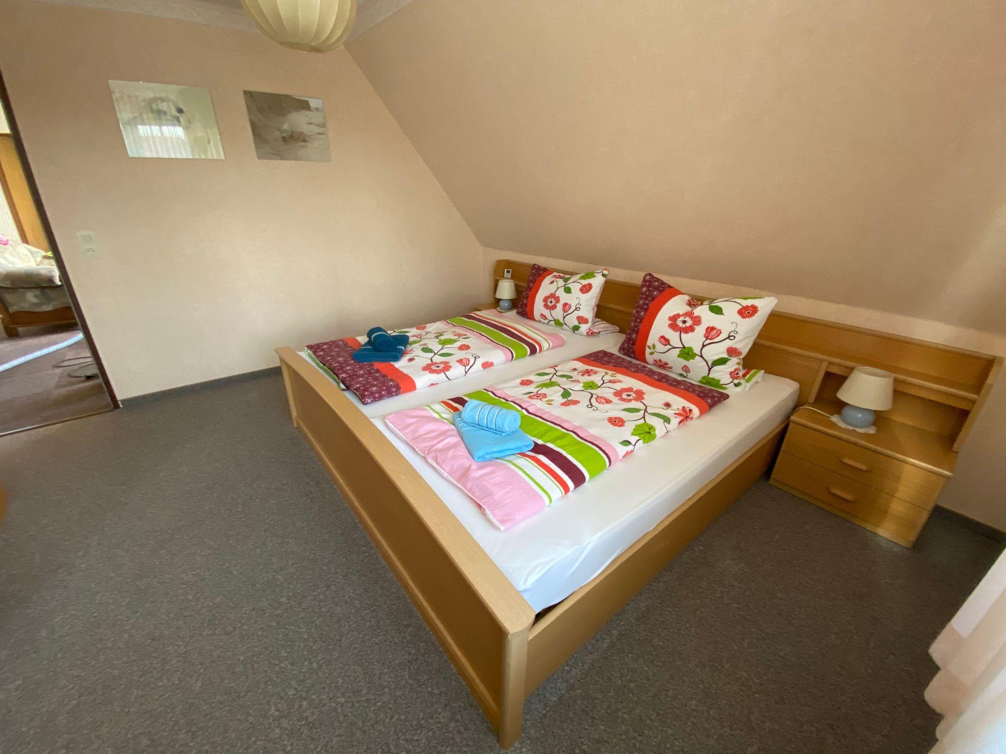 Welcome to the climatic health resort of Hage in beautiful East Frisia! Our well-kept, 90 square metre Hanni holiday flat is located in the climatic health resort of Hage (Berumbur district) in beautiful East Frisia. Only a few metres away from the spa gardens at the Kiessee. The good and quiet location near the spa centre with indoor and outdoor pool (depending on the season) are ideal conditions to enjoy your holiday. From here you can go on great excursions on foot, by bike or by car! Whether wellness treatments in the spa centre (approx. 300m away), swimming in the outdoor pool with slide and volleyball court, minigolf or the children's playground at the spa centre - we have plenty of variety for couples and families! Feel good right from the start! In our Hanni holiday flat you will find plenty of space and a well-kept environment for a relaxing holiday. The separate flat on the upper floor of our detached house has 2 bedrooms, each with a double bed, 1 bedroom with two single beds for our younger guests. Wardrobe and external blinds. The living room is the central hub of the accommodation, as you can access all the other rooms from here. The bathroom with shower/WC and washbasin is spacious and has a window. The kitchen is well equipped and includes a dining area with a cosy East Frisian sofa. A high chair is available for our younger guests. If you would like to sunbathe or barbecue in fine weather, you are welcome to use our terrace (with garden furniture) and our garden. If you bring your bicycles with you, you are welcome to store them in a lockable room in our garage.