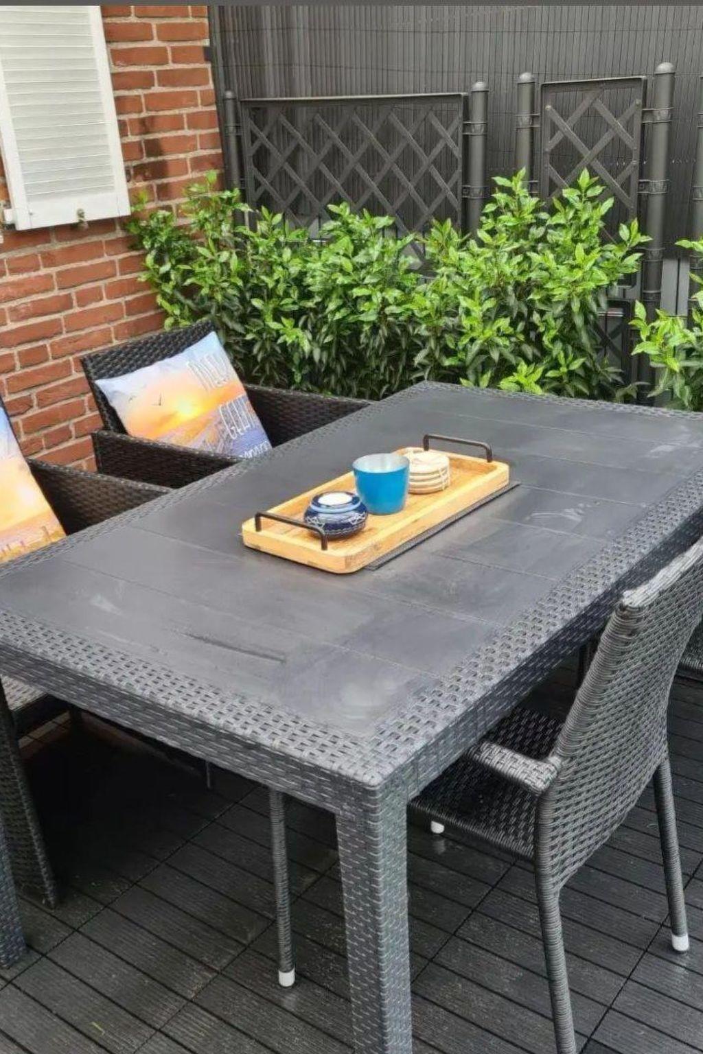 A covered terrace with seating area and beach chair invites you to relax at any time of year.