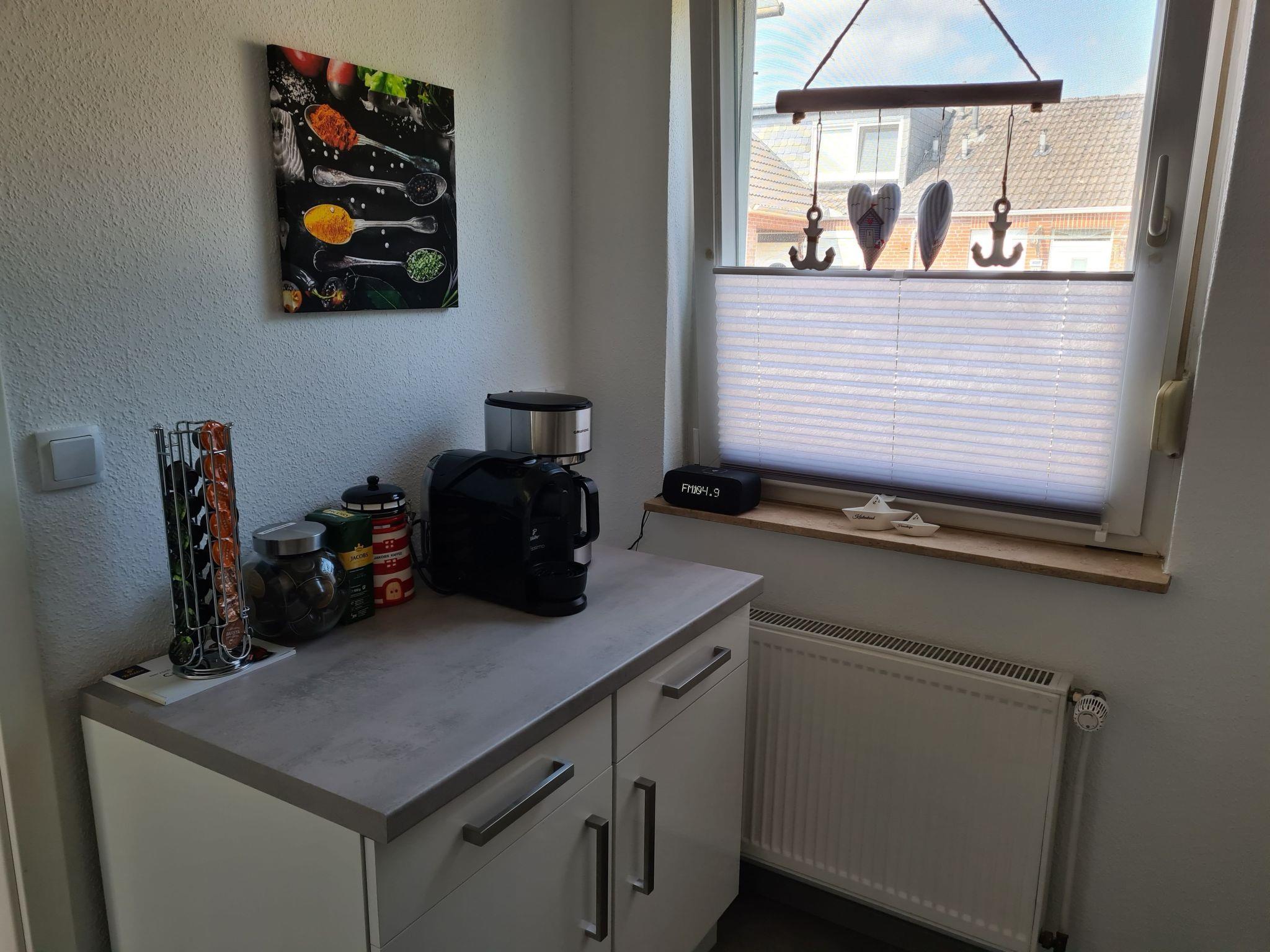 The kitchen, with fitted kitchen, filter coffee machine & Caffisimo capsule machine offer everything for daily needs.