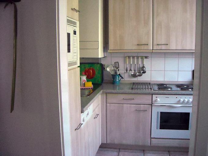 Die frisch renovierte und liebevoll eingerichtete Ferienwohnung liegt im EG des Zweifamilienhauses und hat eine Grösse von ca. 55 m2. Es ist eine Nichtraucherwohnung. Das erste Schlafzimmer ist mit einem Doppelbett (180 x 200) mit schöner Bettwäsche ausgestattet. Das zweite Kinderzimmer wurde mit einem bequemen franz. Bett(140 x 200) eingerichtet. Auch hier gehört natürlich die schöne Bettwäsche zur Ausstattung. Die moderne Küche verfügt über E-Herd, Spülmaschine, Mikrowelle, Kühl-/ Gefrierkombi und allem, was dazu gehört. Das Duschbad/WC ist hell gefliest und beinhaltet Kosmetikspiegel, Fön, sowie Handtücher.