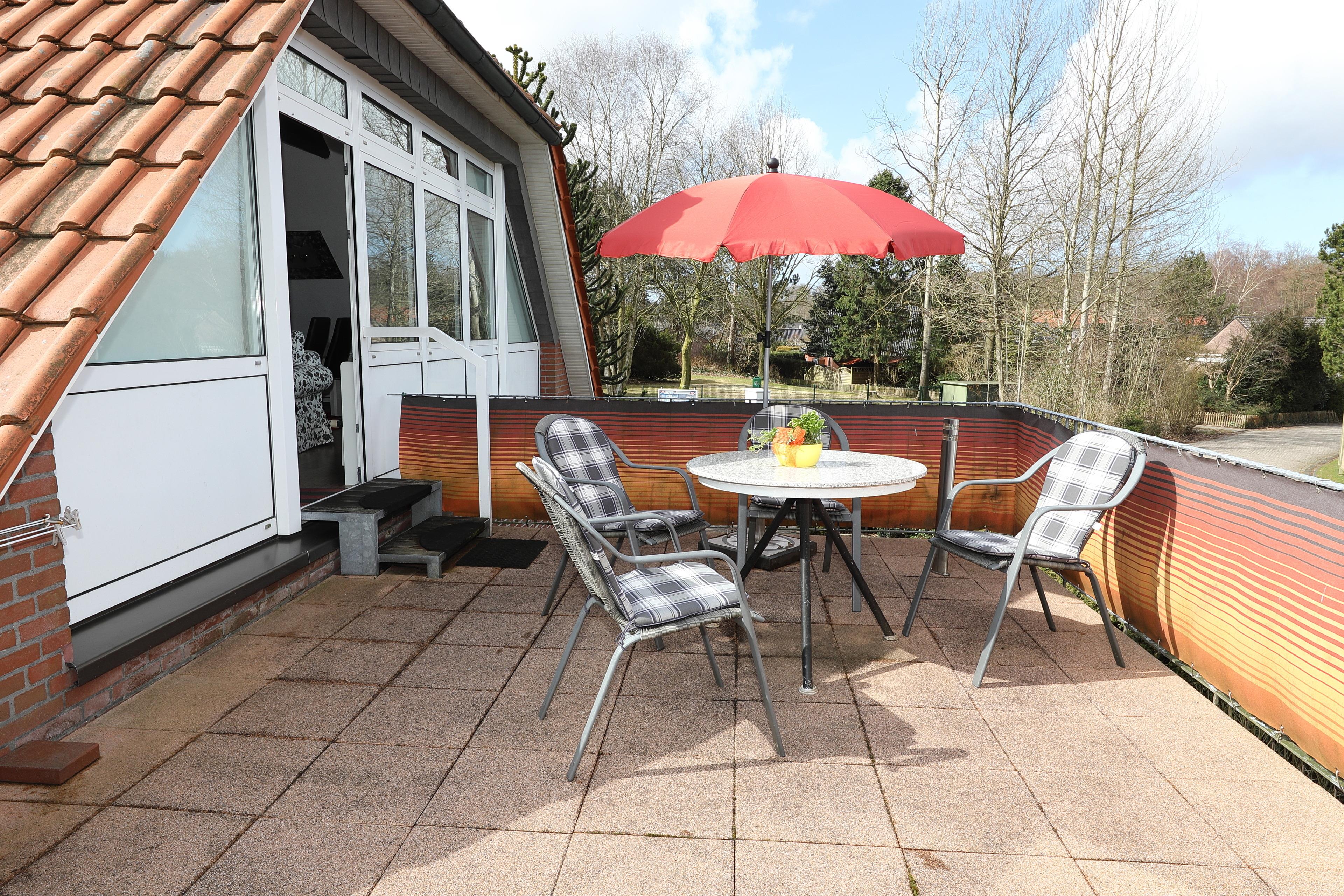 Mitten im Ferienpark Hage-Berum - unweit des Kurzentrums - liegt das Apartment im OG eines Zweifamilienhauses.