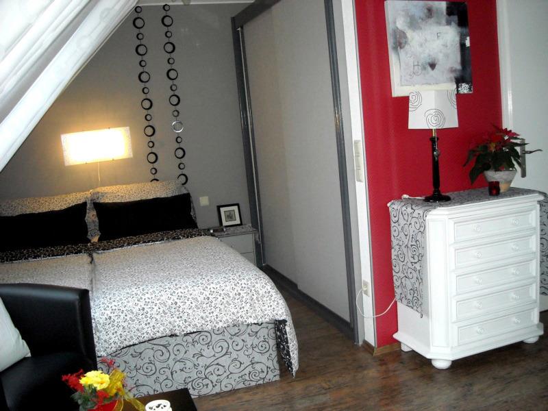 Der Wohn-/Ess-/Schlafraum (mit SAT-TV, DVD, CD/Radio & Franz. Bett ist lichtdurchflutet durch eine 6m breite Fensterfront zur Dachterrasse hin. Die moderne, neue Einbauküche ist mit allem Komfort ausgestattet. Das Dusch-/Wannenbad/WC ist hell gefliest und beinhaltet Kosmetikspiegel, Fön, sowie Handtücher. Zur Ausstattung gehört natürlich auch die schöne Bettwäsche.
