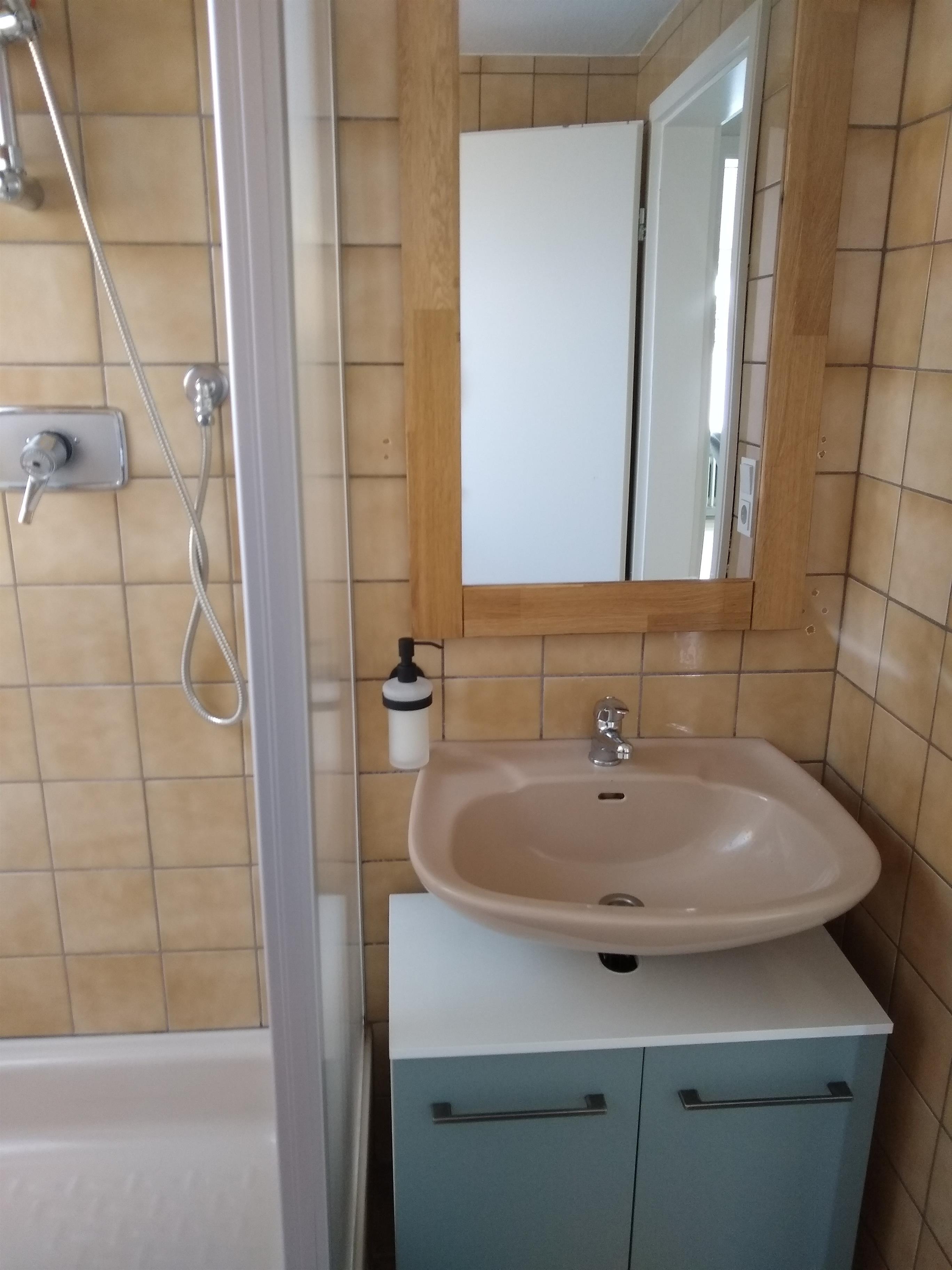 Zum Stylen bieten wir ein Tageslichtbad mit großem Spiegel, Dusche und WC sowie Waschbecken, das andere Tageslichtbad hat eine Badewanne zum Entspannen und WC sowie Waschbecken.