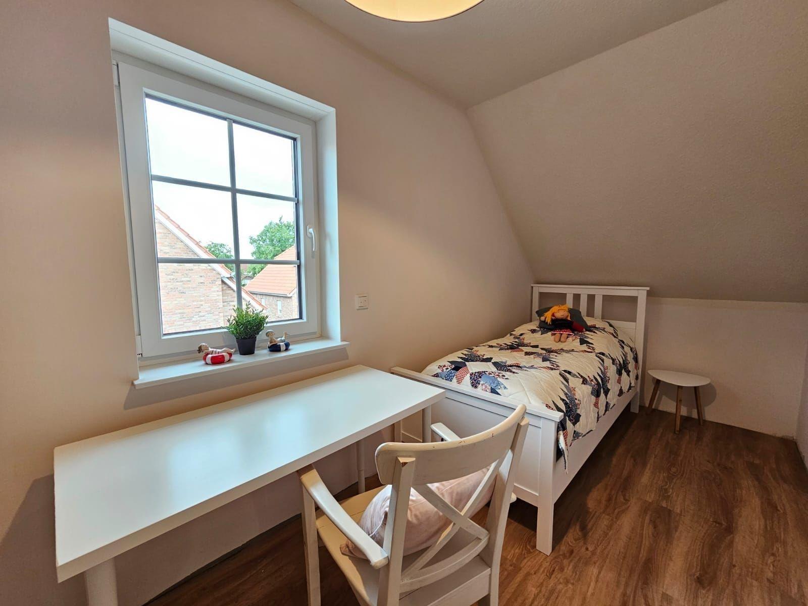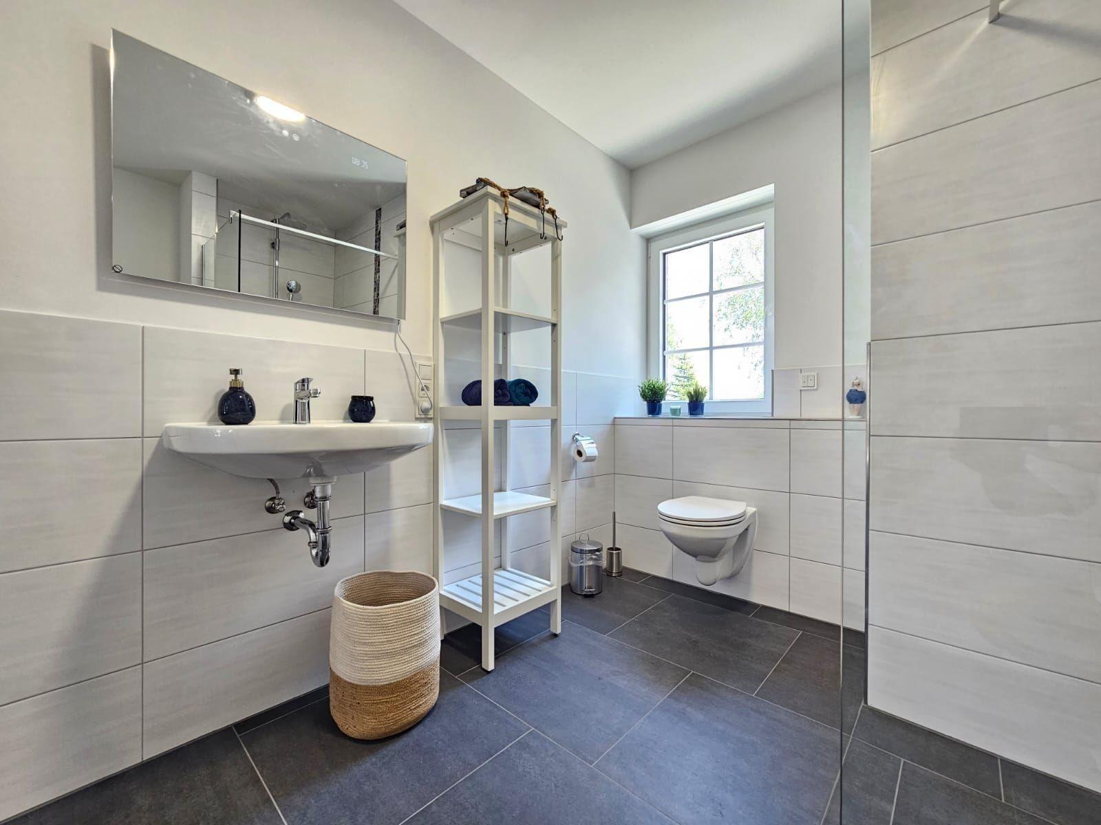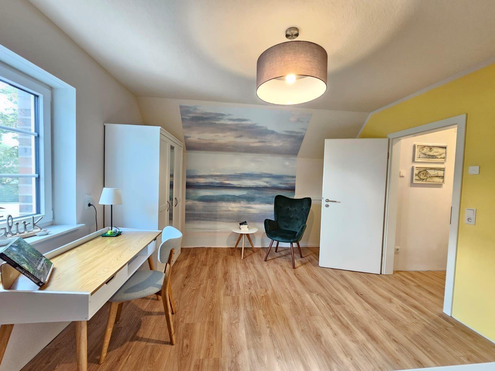 Die Ferienwohnung bietet ein geräumiges und durchdachtes Ambiente für unbeschwerte Aufenthalte. Mit insgesamt drei Schlafzimmern, darunter zwei Doppelbetten und zwei Einzelbetten, finden bis zu sechs Personen Platz. Die offene Küche ist vollständig ausgestattet und verfügt über einen Elektro-/Gasherd, Backofen, Geschirrspüler sowie eine Mikrowelle. Der gemütliche Esstisch lädt zu gemeinsamen Mahlzeiten ein. Ideal für Senioren und Allergiker, ist die Wohnung barrierefrei und allergikergeeignet. Die beiden Badezimmer sind mit Duschbad und Fenster ausgestattet, während zusätzliche Annehmlichkeiten wie Haartrockner, Waschmaschine und Wäschetrockner den Komfort erhöhen. Für Unterhaltung sorgen ein TV und eine HiFi-Anlage. WLAN und ein Parkplatz sind ebenfalls vorhanden. Gäste können sich über ein Starterset mit Hygieneartikeln freuen. Mit einem Schreibtisch, Sofa und Sessel wird der Aufenthalt sowohl komfortabel als auch funktional gestaltbar.