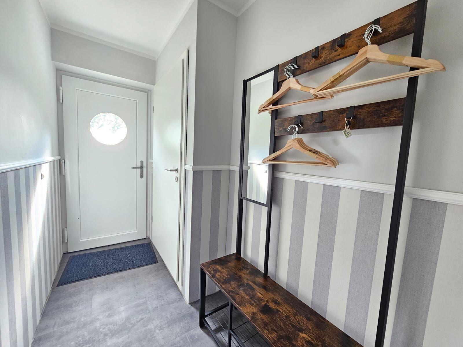 Entspanntes Wohnen in einer freistehenden Ferienwohnung, die barrierefrei gestaltet ist. Ein Parkplatz steht direkt zur Verfügung. Der Außenbereich lädt mit einem Holzkohlegrill zu geselligen Abenden ein. Zudem bietet die Unterkunft einen praktischen Arbeitsplatz für Gäste, die auch während des Urlaubs effizient arbeiten möchten. Hier findet jeder die Ruhe und Bequemlichkeit, die er sucht.