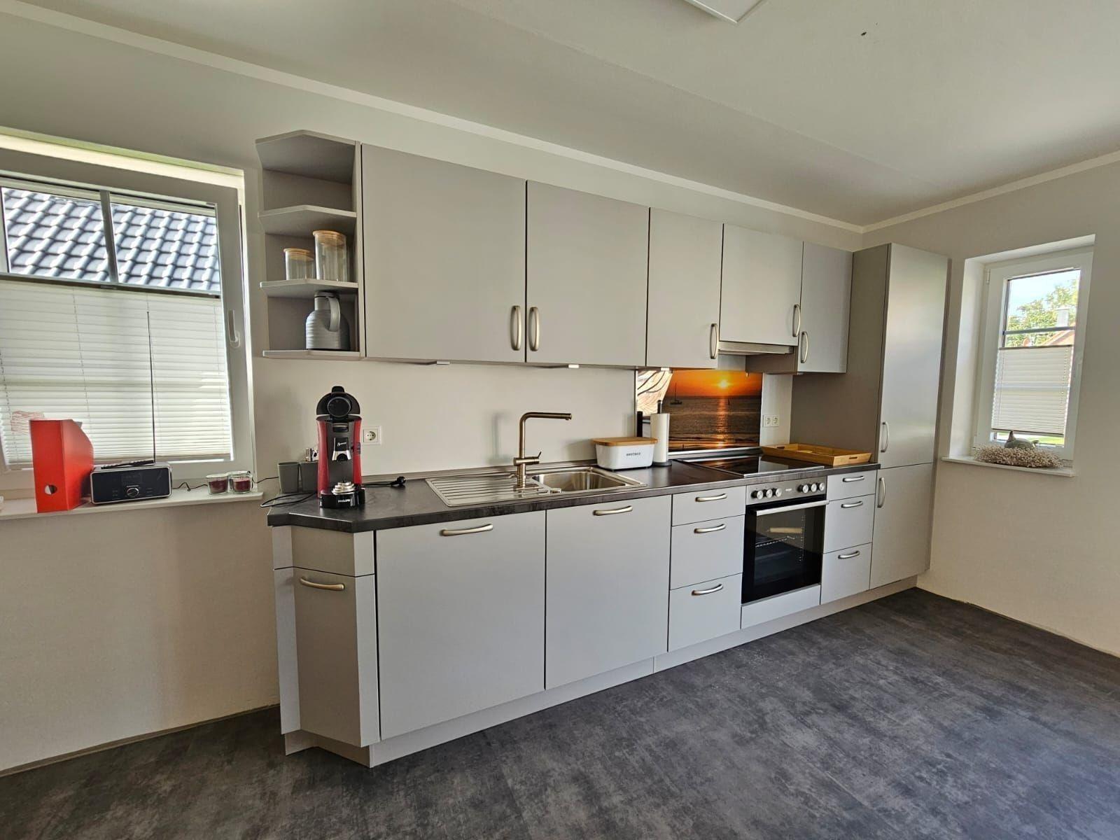 Diese helle und großzügige Ferienwohnung bietet eine ideale Kombination aus Komfort und Funktionalität. Mit drei Schlafzimmern, ausgestattet mit zwei Doppelbetten und zwei Einzelbetten, ist sie perfekt für Familien oder Gruppen. Die offene Küche lässt keine Wünsche offen: Sie verfügt über einen Elektro-/Gasherd, Backofen, Geschirrspüler, Kühlschrank, Kaffeemaschine und mehr.