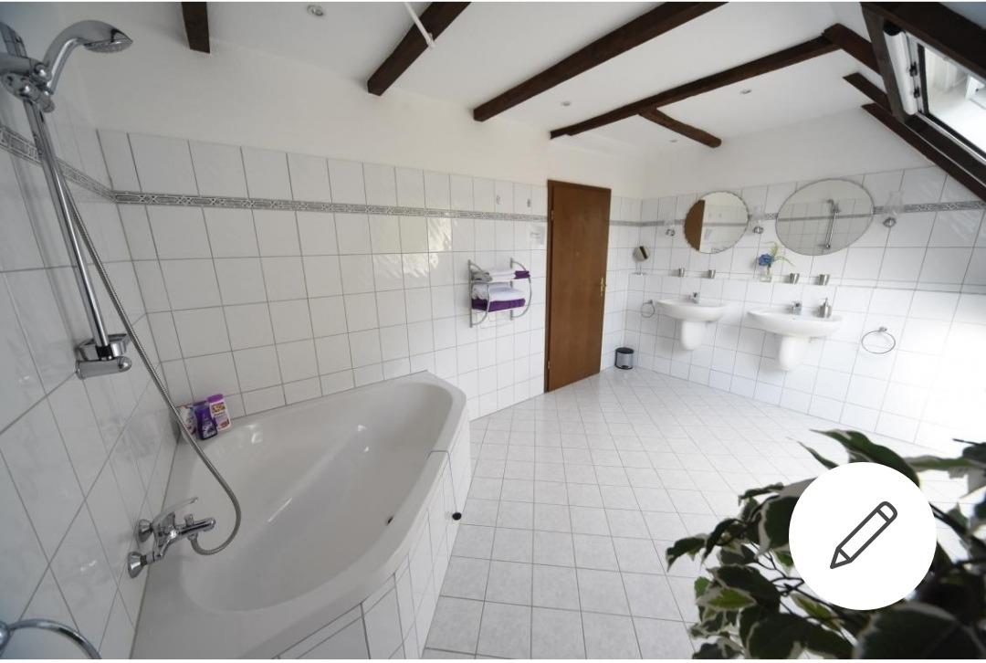 Das riesige Komfort Bad mit Rundwanne und Dusche lädt zum Entspannen ein.