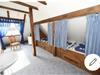 In einen Schlafzimmer sind zwei urtypisch, gemütliche Alkovenbetten in Übergröße.