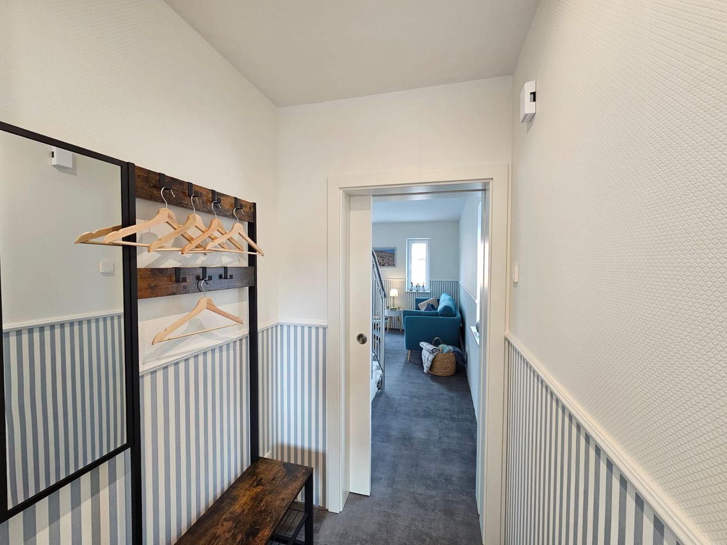 Das stilvolle Badezimmer ist hell, modern und komfortabel gestaltet. Es bietet Ihnen entweder eine Dusche oder eine Badewanne – ganz nach Ihren Wünschen. Zudem steht Ihnen eine hochwertige Infrarotkabine zur Verfügung, die für wohltuende Wärme und Entspannung sorgt – ideal nach einem langen Spaziergang am Meer. Eine Waschmaschine steht ebenfalls zur Nutzung bereit.