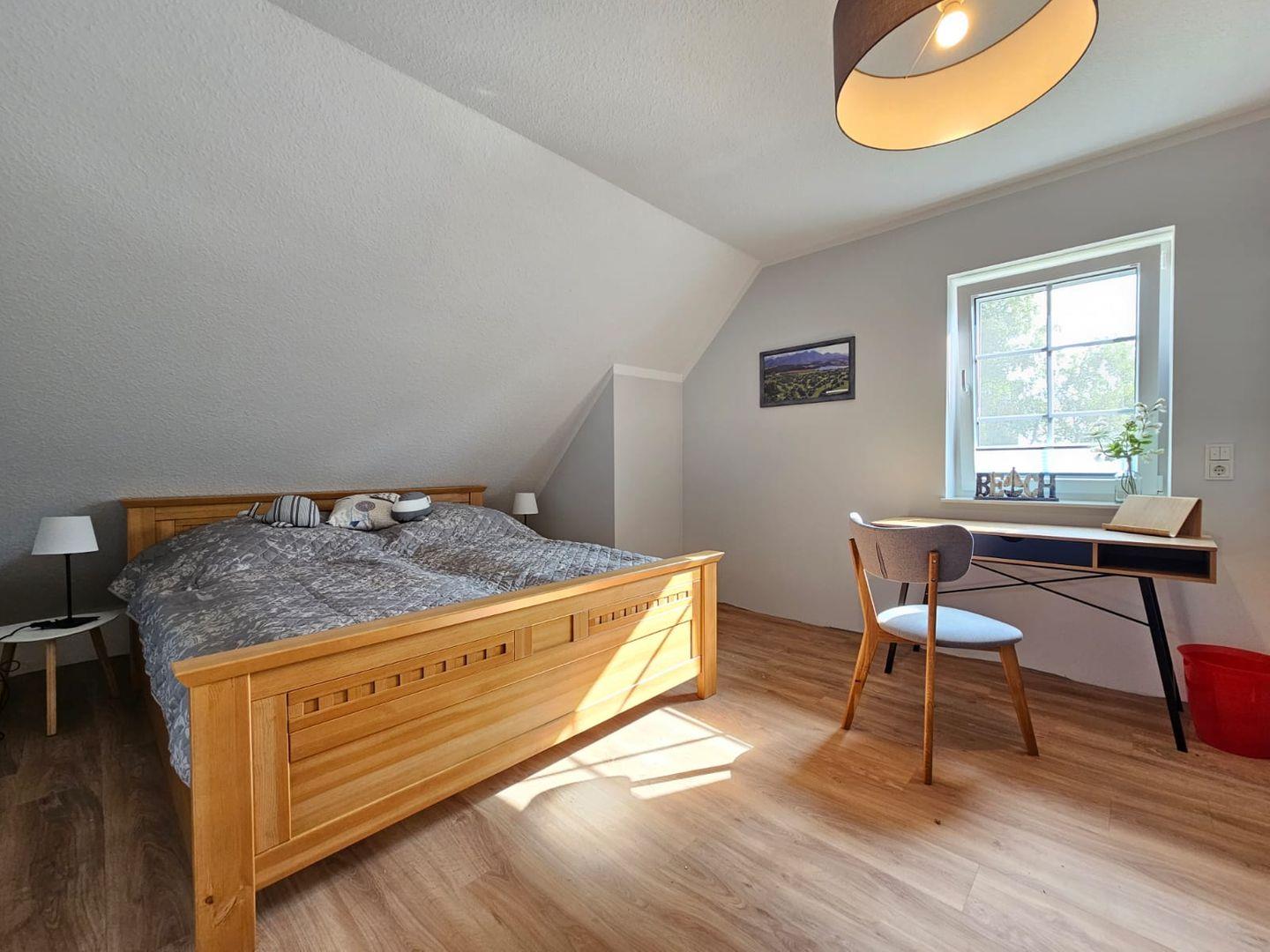 Das Ferienhaus verfügt über drei geschmackvoll eingerichtete Schlafzimmer, die jeweils mit bequemen Betten und ausreichend Stauraum ausgestattet sind. Alle Räume sind hell, freundlich und schaffen eine angenehme Atmosphäre zum Entspannen.
