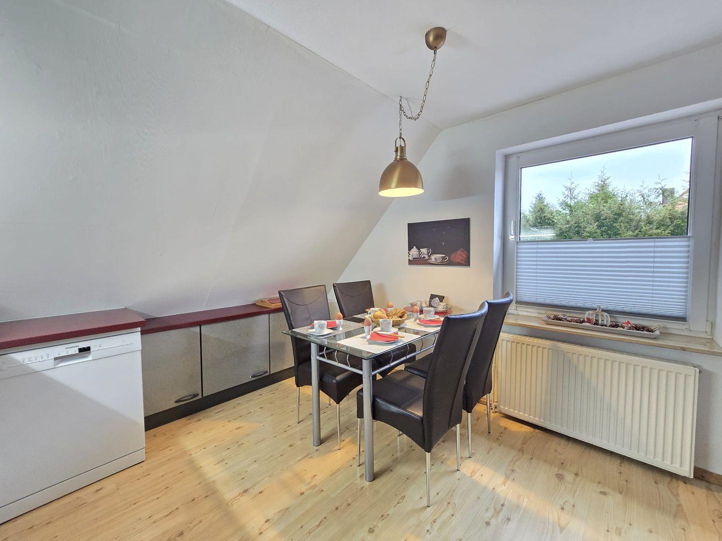 Der Essbereich bietet ausreichend Platz für gemeinsame Mahlzeiten mit Familie oder Freunden.