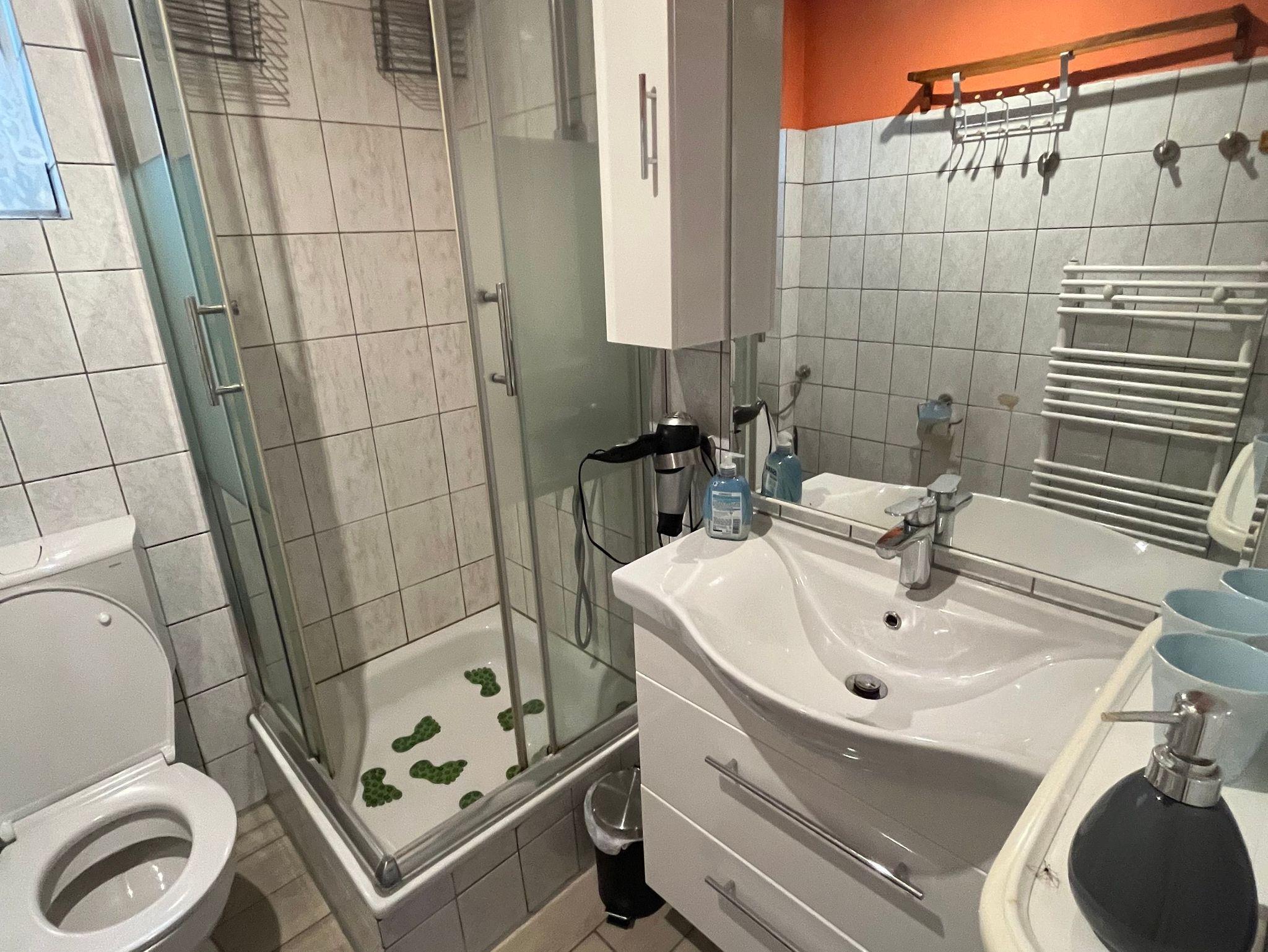 Zur Wohnung gehört ein Duschbad mit Fenster. Handtücher, Duschvorlagen und Bettwäsche werden gestellt.