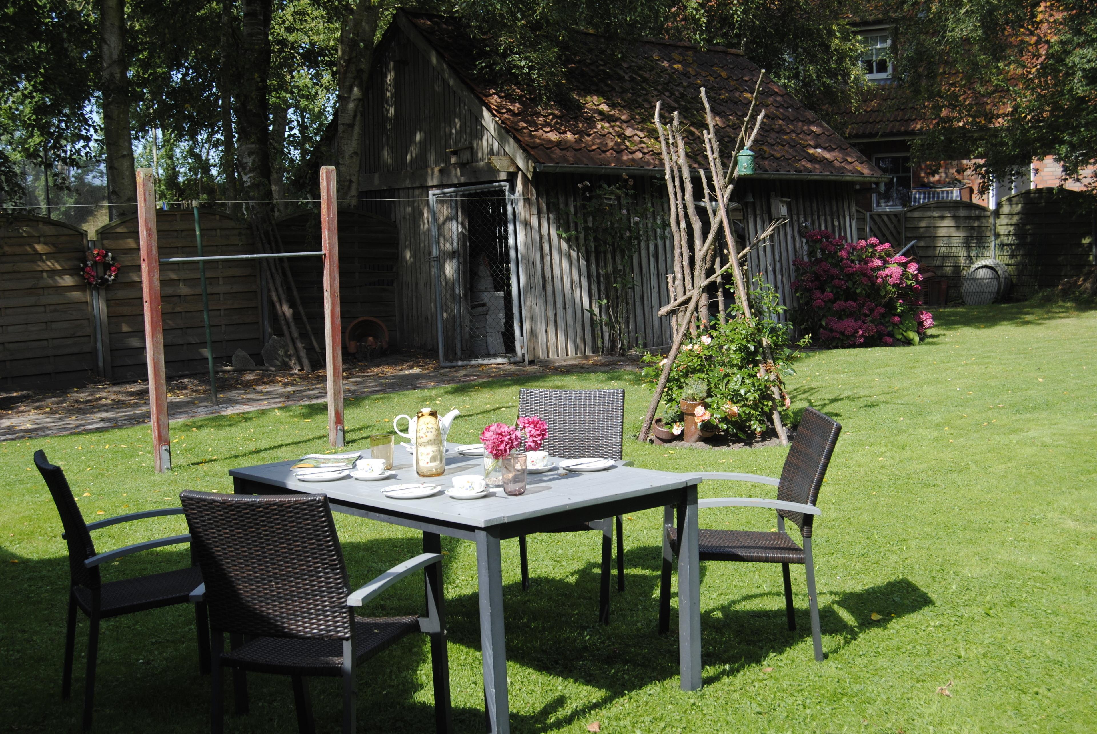 Selbstverständlich steht Ihnen auch der große Garten mit Sitzgelegenheiten und Liegen zur Verfügung. Der Naturstrand in nach ca. 10 Min. Fußweg erreicht. Unser Strand ist besonders für kleine Kinder sehr gut geeignet, bei Ebbe lädt der feste Sandwatt zum Muscheln suchen ein, bei Flut zum baden. Ausflüge zu den vorgelagerten Inseln und Wattwanderungen sind ein unbedingtes muss!
