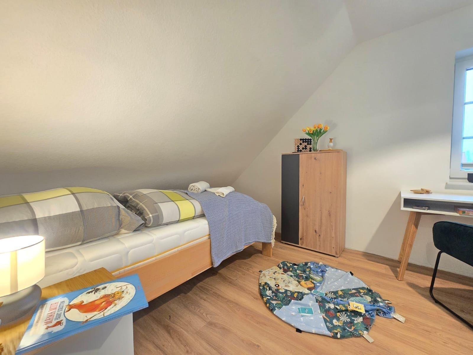Die Ferienwohnung bietet eine private Terrasse mit direktem Zugang zu einem gepflegten Garten. Hier befindet sich eine gemütliche Liegewiese, ideal zum Entspannen unter freiem Himmel. Ein Holzkohlegrill lädt zu geselligen Grillabenden ein. Gäste können die ruhige Umgebung genießen und sich im eigenen Garten erholen. Diese Oase im Freien verspricht unvergessliche Urlaubsmomente.