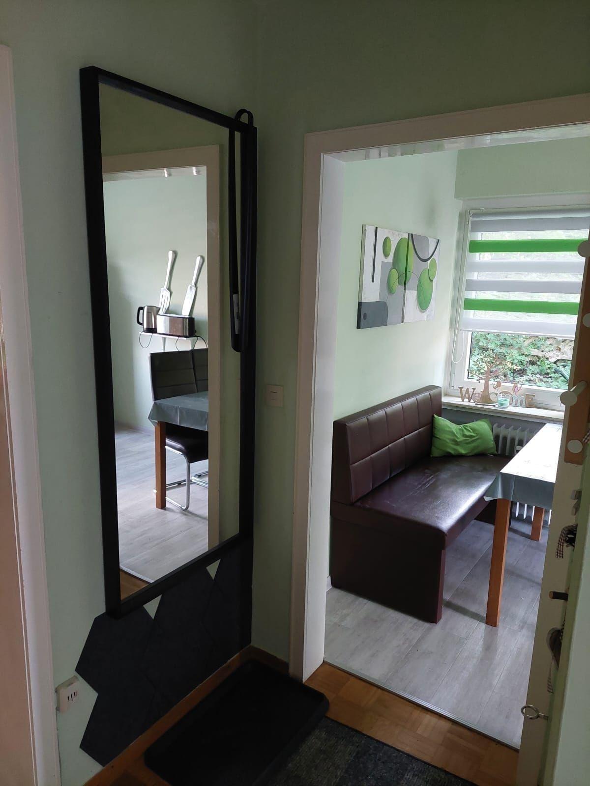 Die Ferienwohnung überzeugt durch ihre zentrale Lage und unmittelbare Nähe zu Sehenswürdigkeiten. Helle, freundliche Räume bieten Raum zum Entspannen. Die voll ausgestattete Küche lädt zu kulinarischen Erlebnissen ein. Ein komfortables Schlafzimmer garantiert erholsame Nächte. Genießen Sie die Ruhe auf dem Balkon mit Blick auf die umliegende Natur. Ideal für einen unvergesslichen Aufenthalt.