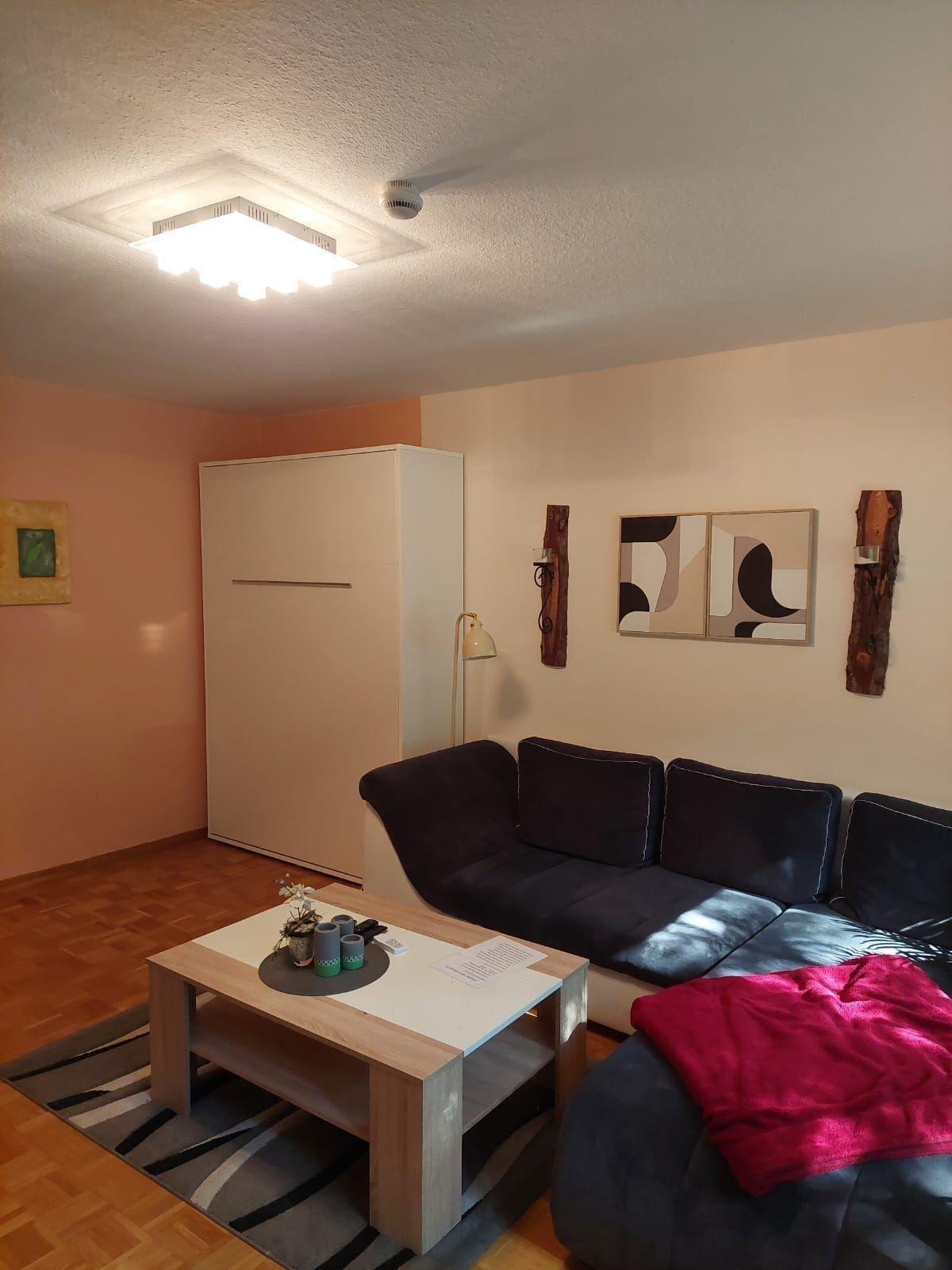 Das Badezimmer mit Fenster ist mit einem Duschbad, einem Haartrockner und einem Spiegel ausgestattet, während der Wohnbereich mit Sofa und Sessel zum Entspannen einlädt. Für Unterhaltung sorgen die HiFi-Anlage und der TV. Die Wohnung verfügt über eine Internetverbindung mit 100 MBit/s.