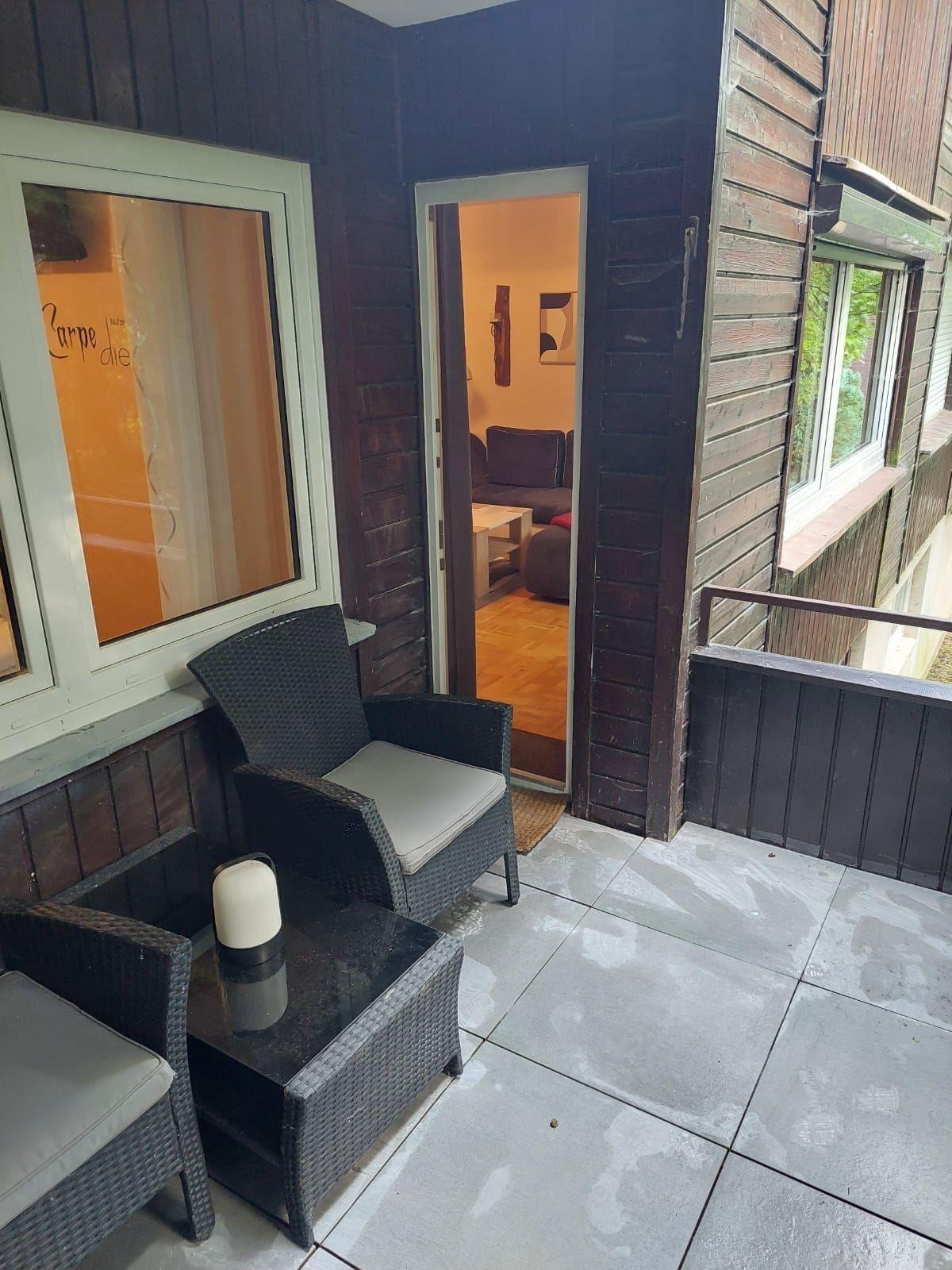 Die Ferienwohnung bietet einen einladenden Balkon, der perfekten Raum zum Entspannen im Freien schafft. Hier kann man die frische Luft genießen und die Umgebung in Ruhe betrachten. Ideale Voraussetzungen, um den Tag mit einem Kaffee zu beginnen oder den Abend bei einem Glas Wein ausklingen zu lassen. Ideal für eine erholsame Auszeit.