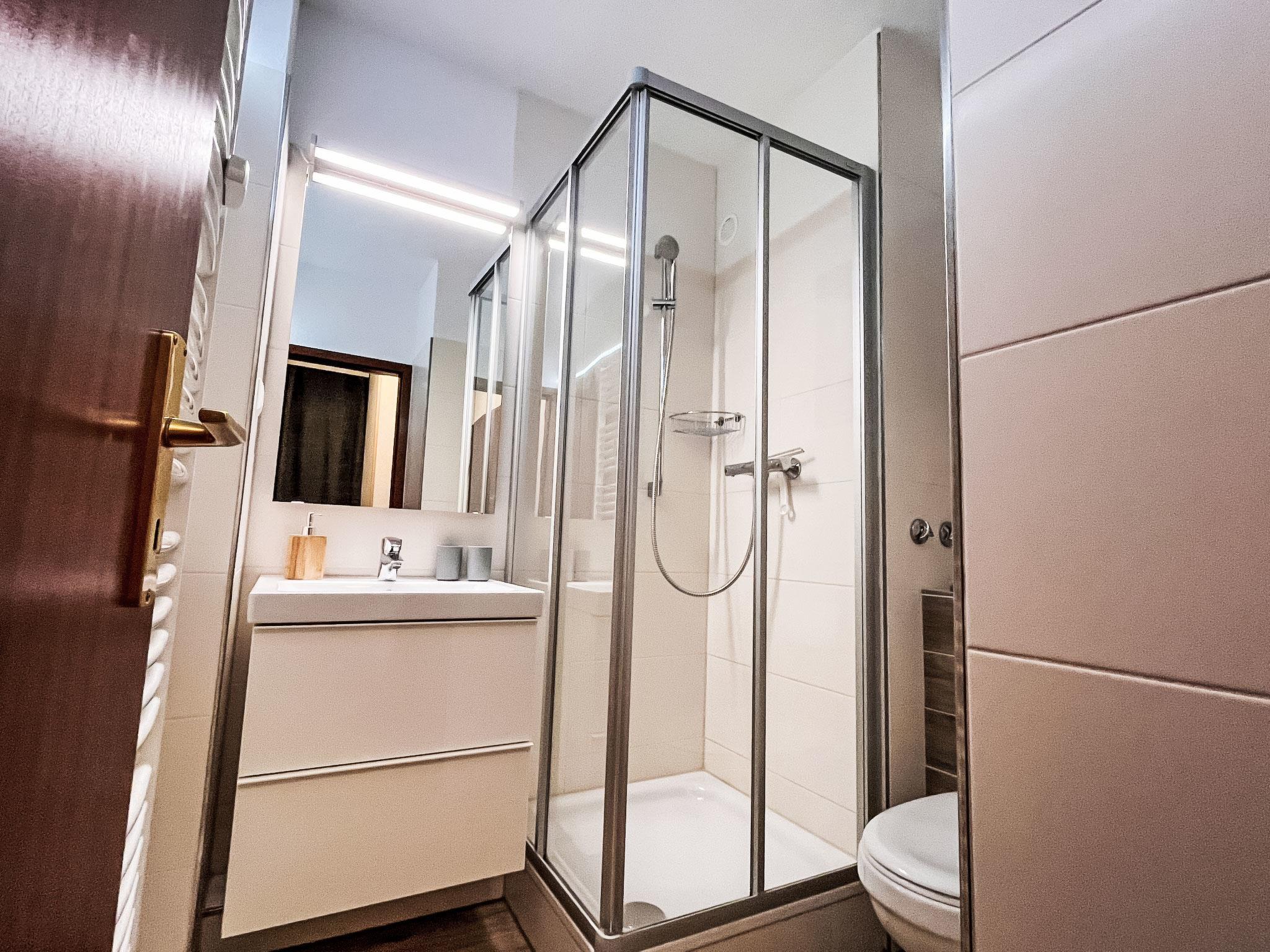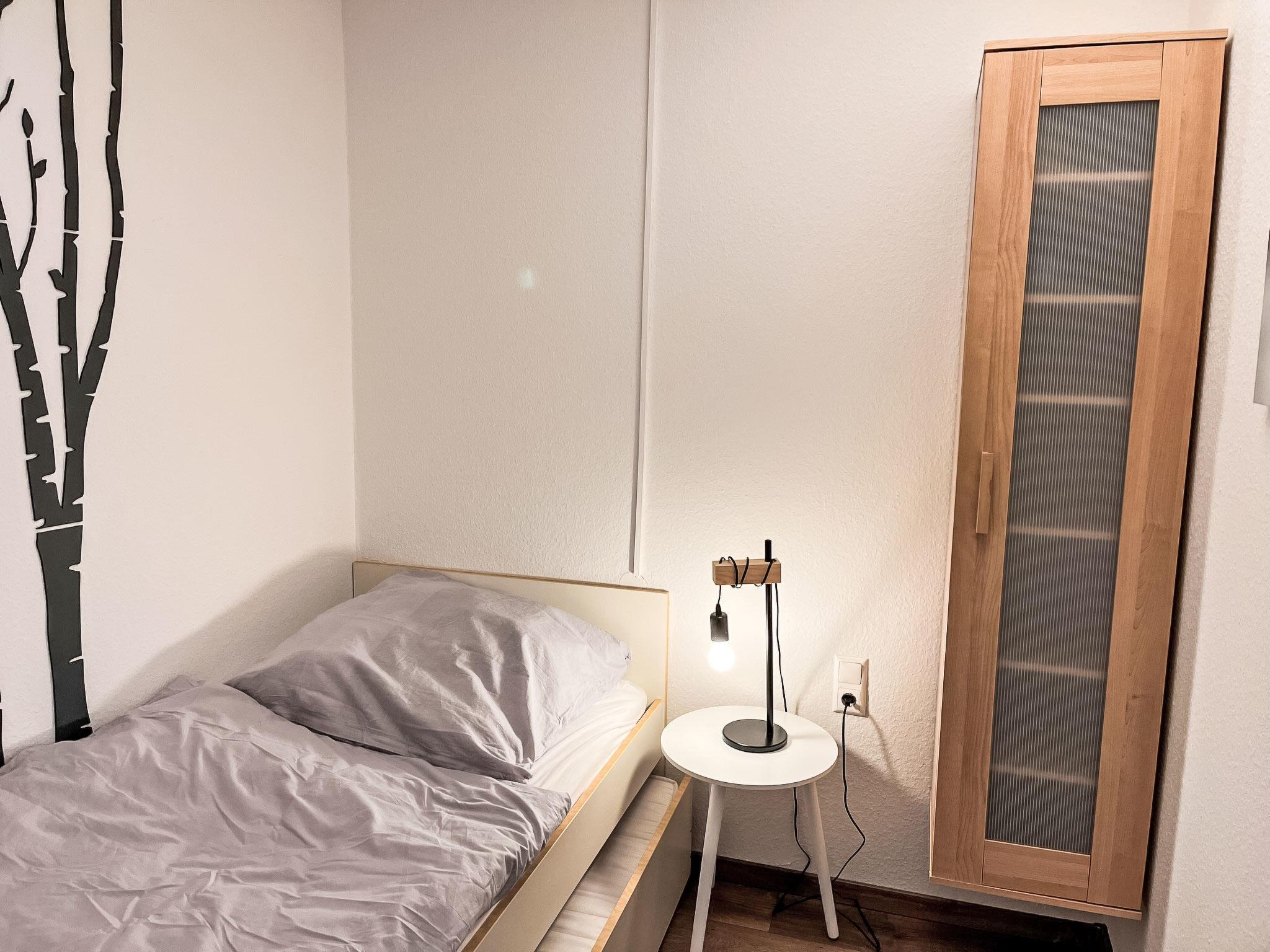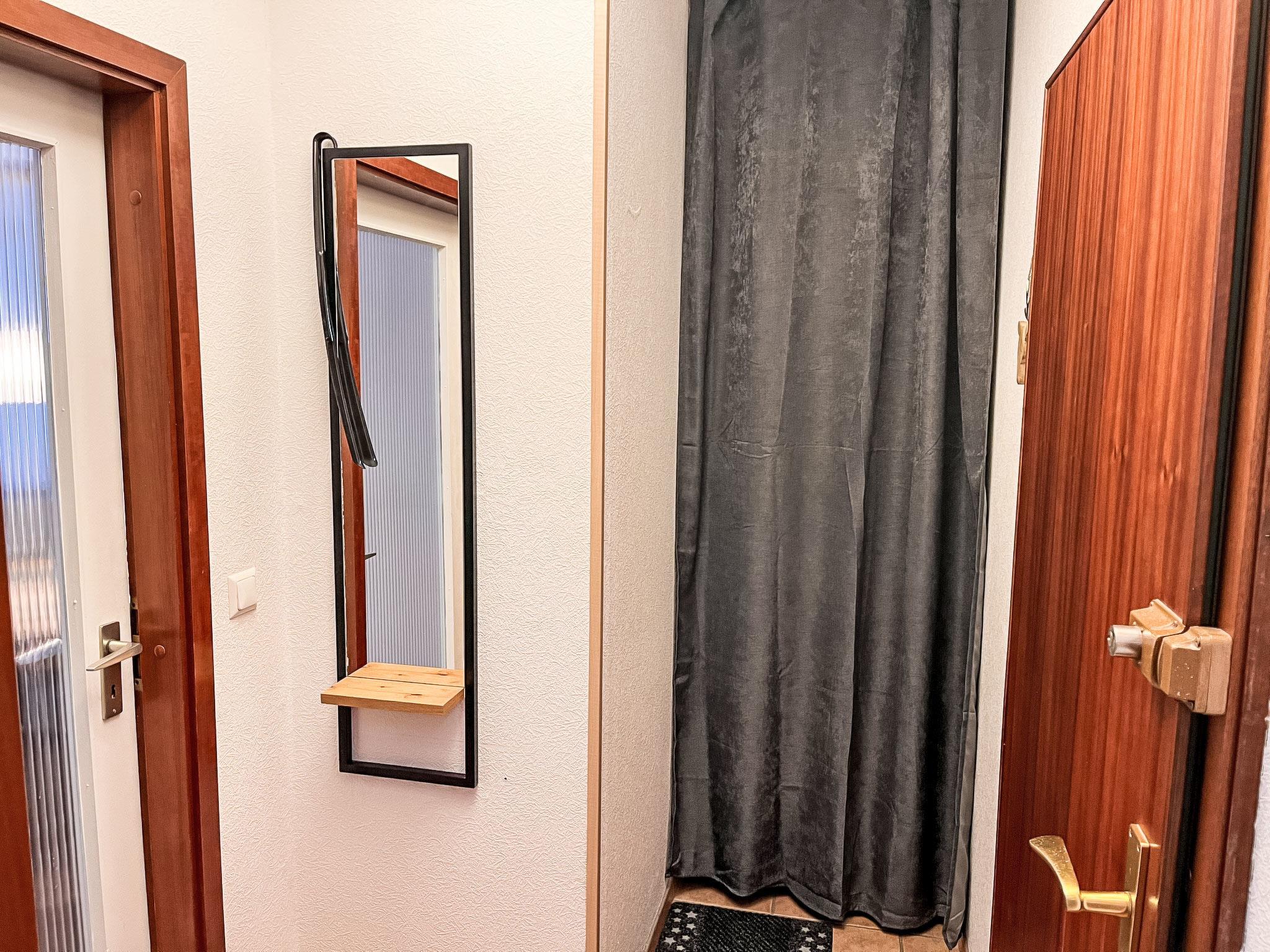 "Elwi", 3-room apartment 38 m2 on 2nd floor. Renovated in 2024, modern and cosy furnishings: living/dining room with dining table and cable TV (flat screen). Exit to the balcony. 1 room with 1 double bed (140 cm, length 200 cm). 1 room with 1 pull-out bed (2 pers. 2 x 90 cm, length 200 cm). Open kitchen (oven, 4 ceramic glass hob hotplates, toaster, kettle, microwave, freezer, electric coffee machine). Shower/WC. Oil heating. Balcony 5 m2. Balcony furniture, deck chairs (4). View of the countryside. Facilities: Internet (WiFi, free). Parking space n Haus 2/202 (1 car). Please note: maximum 1 pet/ dog allowed. Smoke alarm, fire extinguisher.