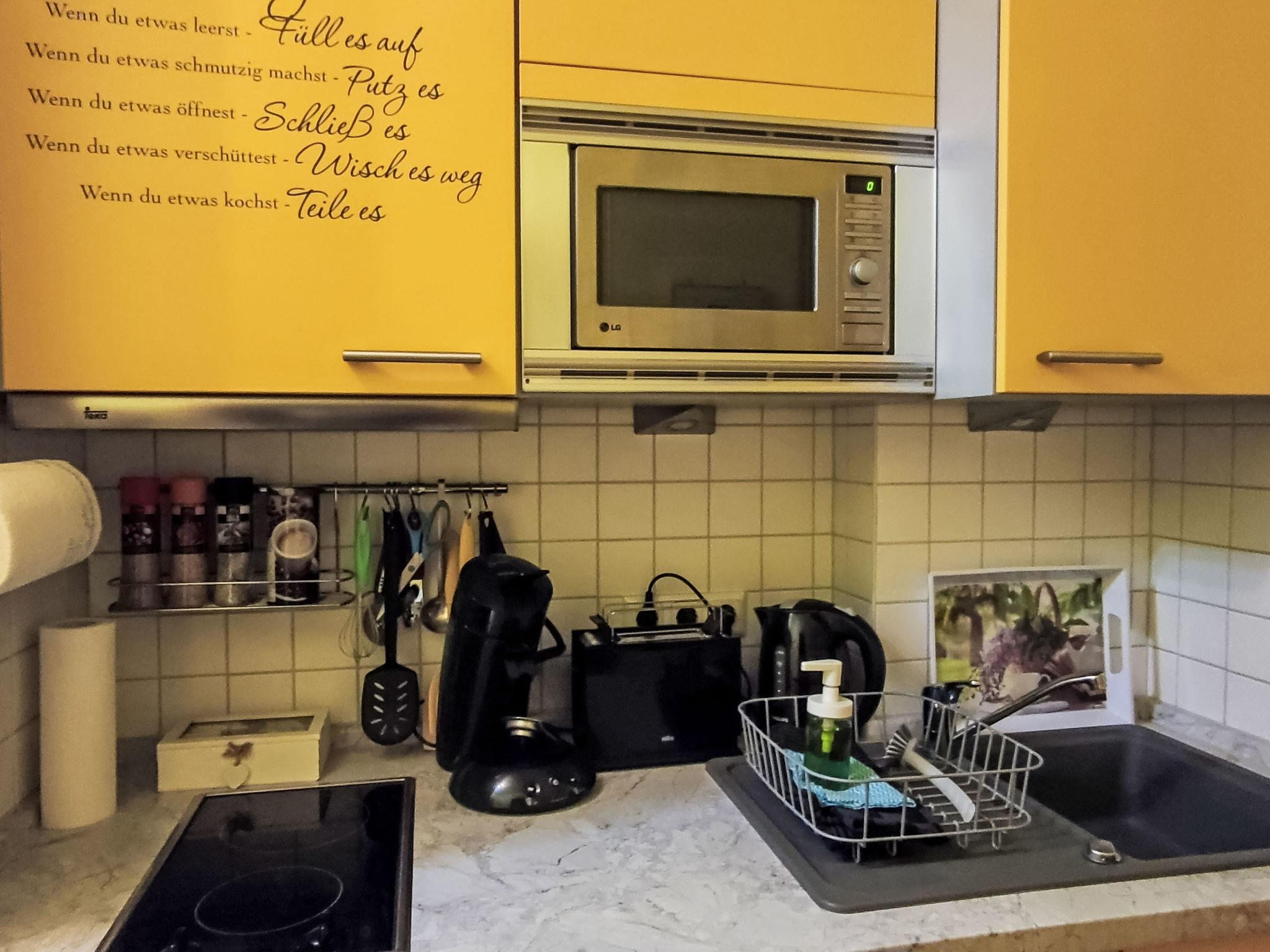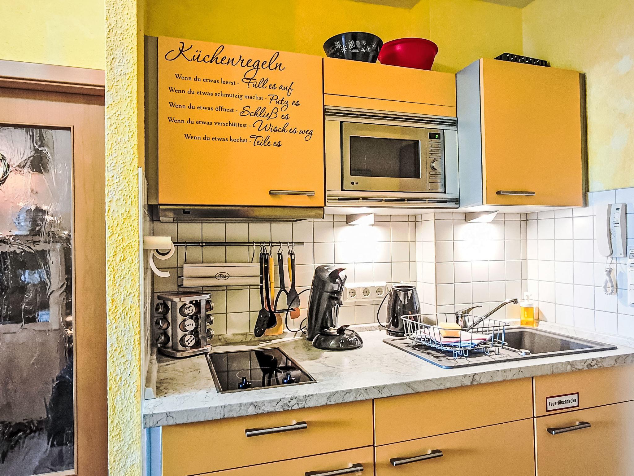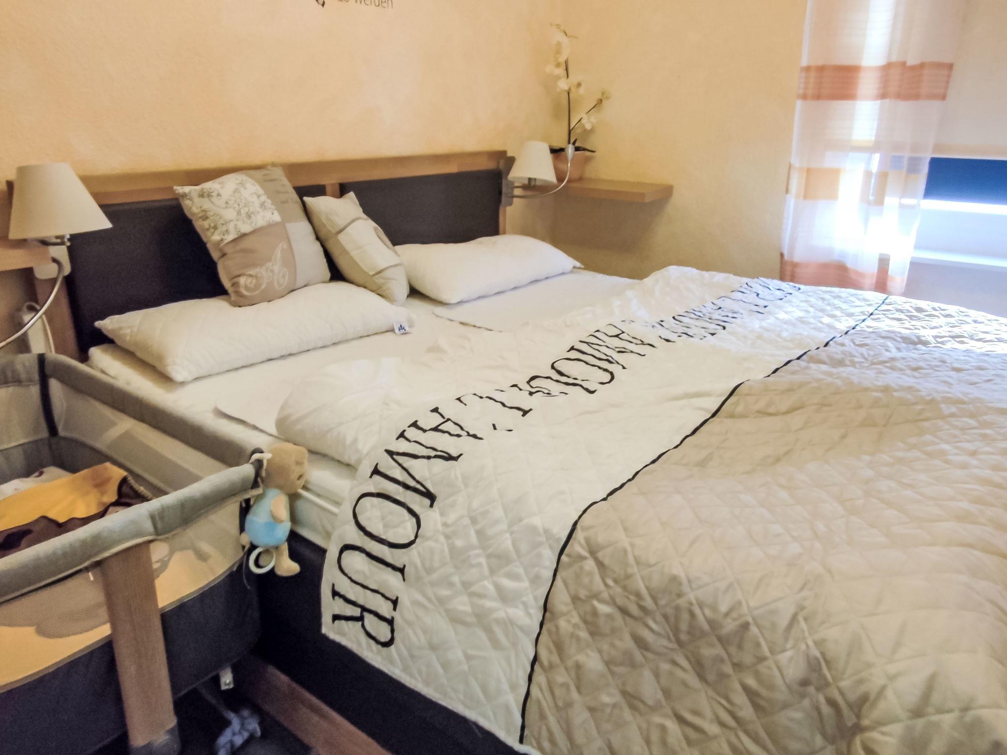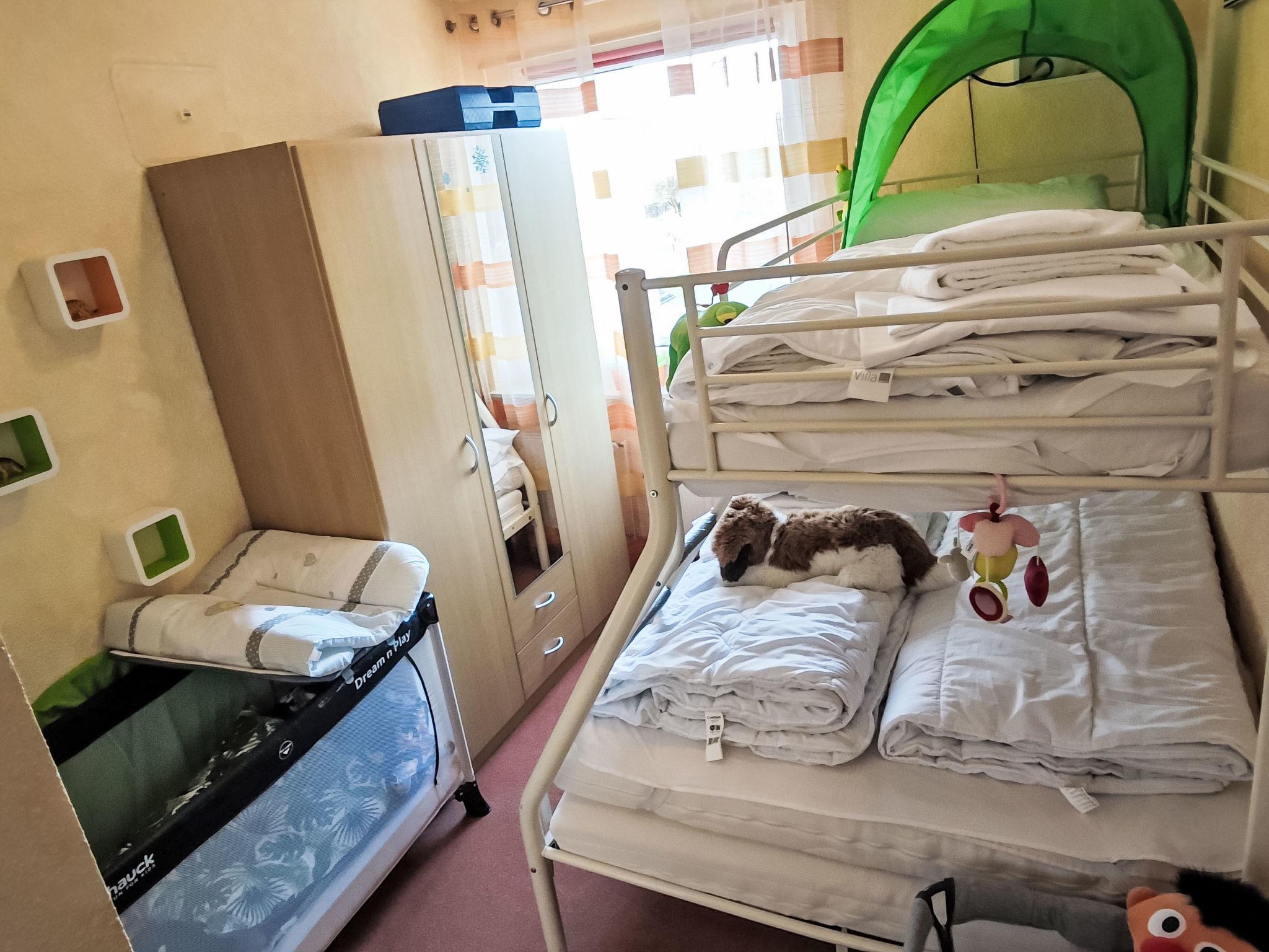 "Bocksbergperle 1", 3-room apartment 50 m2 on 1st floor. Renovated in 2022: living/dining room with cable TV (flat screen), radio and hi-fi system. 1 room with 1 double bed. 1 room with 1 x 1 bunk beds (90 cm, length 200 cm), 1 french bed (140 cm, length 200 cm). Kitchenette (2 ceramic glass hob hotplates, toaster, kettle, microwave, freezer). Shower/WC. Gas heating. Facilities: children's high chair, baby cot, hair dryer. Internet (WiFi, free). Parking space n Haus 6, 08. Please note: non-smokers only.