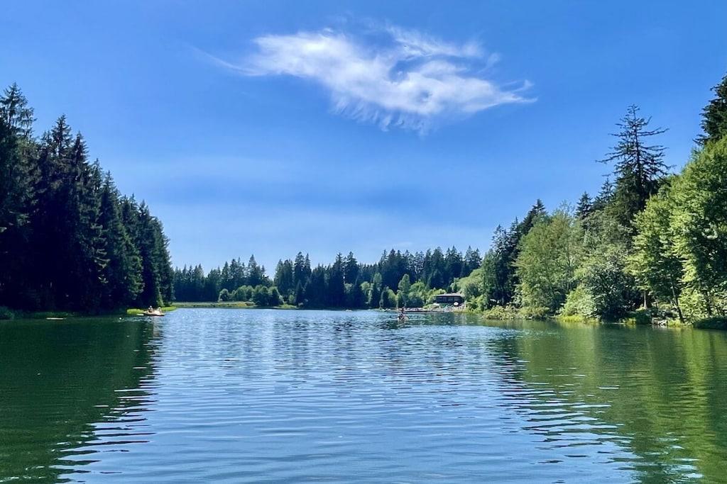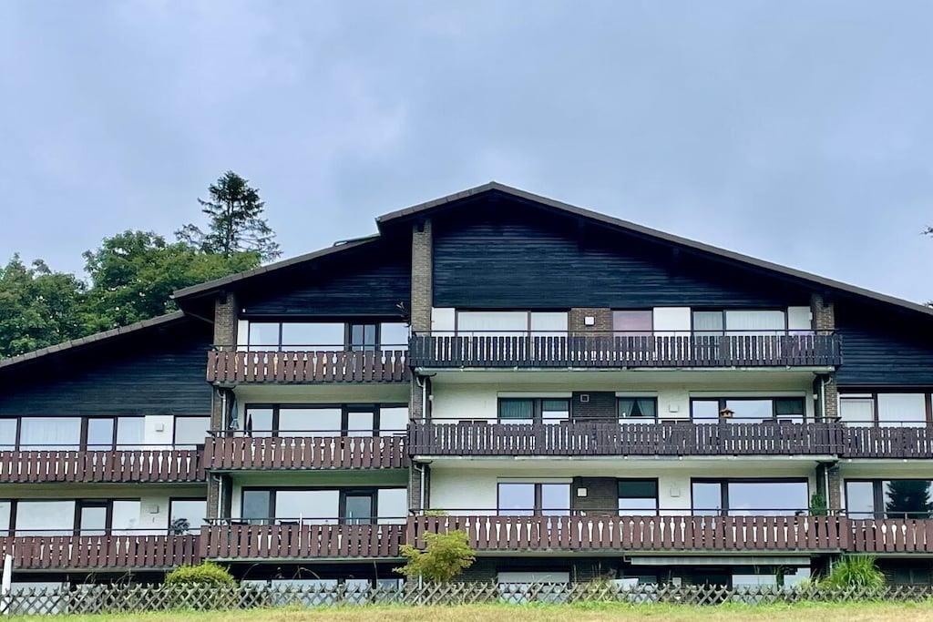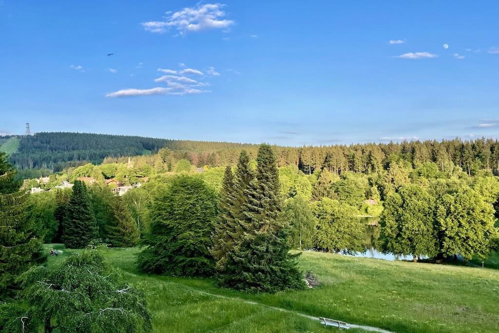 Die renovierte Ferienwohnung in Hahnenklee bietet erstklassigen Komfort und Exklusivität inmitten einer bezaubernden Umgebung. Diese 60 Quadratmeter große Oase in der 2. Etage eines herrlichen Domizils gewährt Ihnen den besten Ausblick auf den Wald, die Berge und den See. Im Jahr 2022 wurde die Wohnung von Grund auf saniert und auf den neuesten Stand gebracht. Die Wohnung bietet ausreichend Platz für bis zu drei Personen. Der behagliche Wohnbereich ist mit einem bequemen Ecksofa ausgestattet, das sich im Handumdrehen zu einem großzügigen Bett (1,50m x 2,00m) umwandeln lässt. Ein 75-Zoll Flachbildfernseher versorgt Sie mit unzähligen Unterhaltungsmöglichkeiten. In den kalten Monaten schafft ein Elektrokamin eine gemütliche Atmosphäre. Der sonnige Südbalkon lädt dazu ein, Ihre Gedanken bei einem Blick in die Harzer Natur schweifen zu lassen. Sie finden hier auch Terrassenmöbel, die es Ihnen ermöglichen, Ihr Frühstück oder Abendessen in aller Ruhe im Freien zu genießen. Der Balkon verfügt zudem über eine elektrische Markise. Das Schlafzimmer beherbergt ein gemütliches Bett (1,60m x 2,00m), in dem Sie erholsame Nächte verbringen werden. Hier steht ebenfalls ein Flachbildfernseher für Ihre Unterhaltung bereit. Eine Außenjalousie hält störendes Licht draußen. Das Badezimmer besticht durch ein Naturstein-Waschbecken und ist mit einer Regendusche, einem Handtuchwärmer, einem Waschtisch mit Kosmetikspiegel und einem Haartrockner ausgestattet. Ein Unterputzradio sorgt für eine angenehme Atmosphäre. Die offene Küche ist komplett ausgestattet und verfügt über einen Geschirrspüler, Backofen, Kühlschrank, Gefrierschrank, Mikrowelle, Induktionskochfeld, Toaster, Wasserkocher, Kaffeemaschine, Milchaufschäumer, Espressokocher, Mixer und Weinkühler. Am großzügigen Esstisch können Sie Ihr individuelles Dinner zelebrieren oder gesellige Gesellschaftsspiele mit Ihrer Familie genießen. Im geräumigen Flurbereich befindet sich ein elektrischer Schuhtrockner, um Ihre Wanderschuhe nach Ausflügen wieder trocken und bequem zu machen. Gegenüber der Wohnung steht ein kleiner Abstellraum für Koffer und zusätzliche Ausstattung zur Verfügung, darunter Kinderbett, Hochstuhl, Bügeleisen, Wäscheständer und Schlitten. Des Weiteren finden Sie dort Waschmarken für die Gemeinschaftswaschmaschine im Keller. Ein kostenloser Außenstellplatz vor dem Gebäudeeingang gehört ebenfalls zur Verfügung. Das WLAN mit einer Bandbreite von 150 Mbit ist für Sie kostenfrei nutzbar. Wir bitten um Verständnis, dass Haustiere und das Rauchen in der Wohnung aus Rücksicht auf andere Gäste nicht gestattet sind, aber auf dem Balkon ist das Rauchen erlaubt.