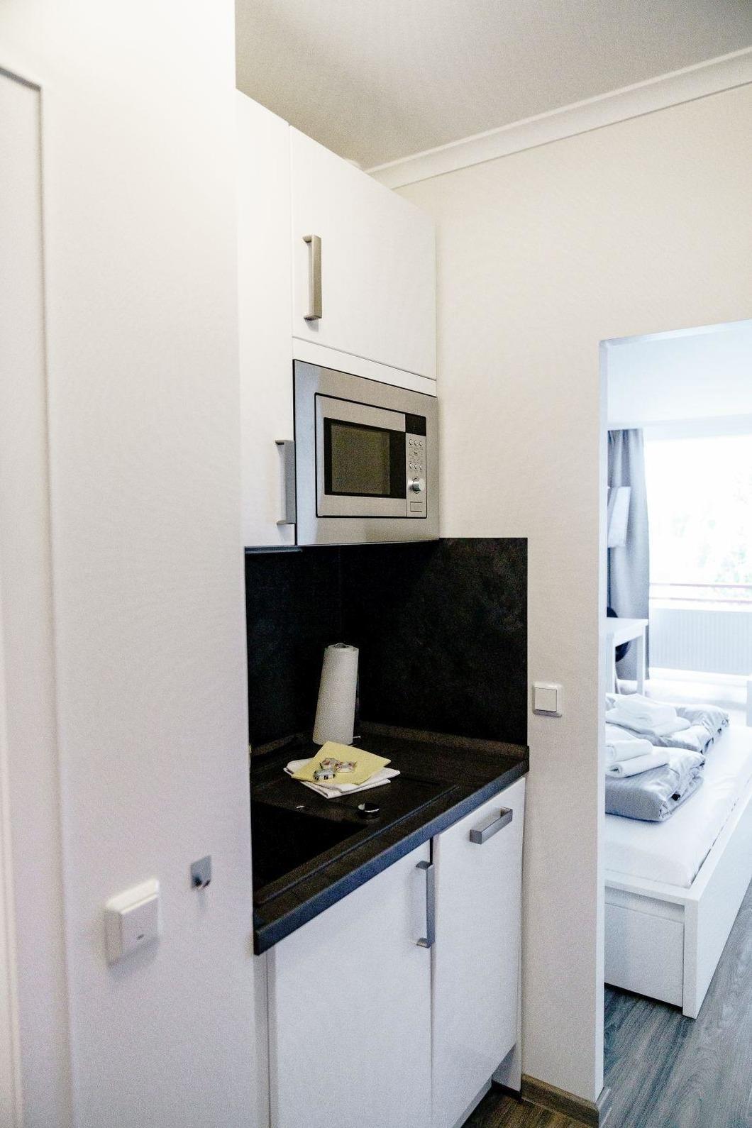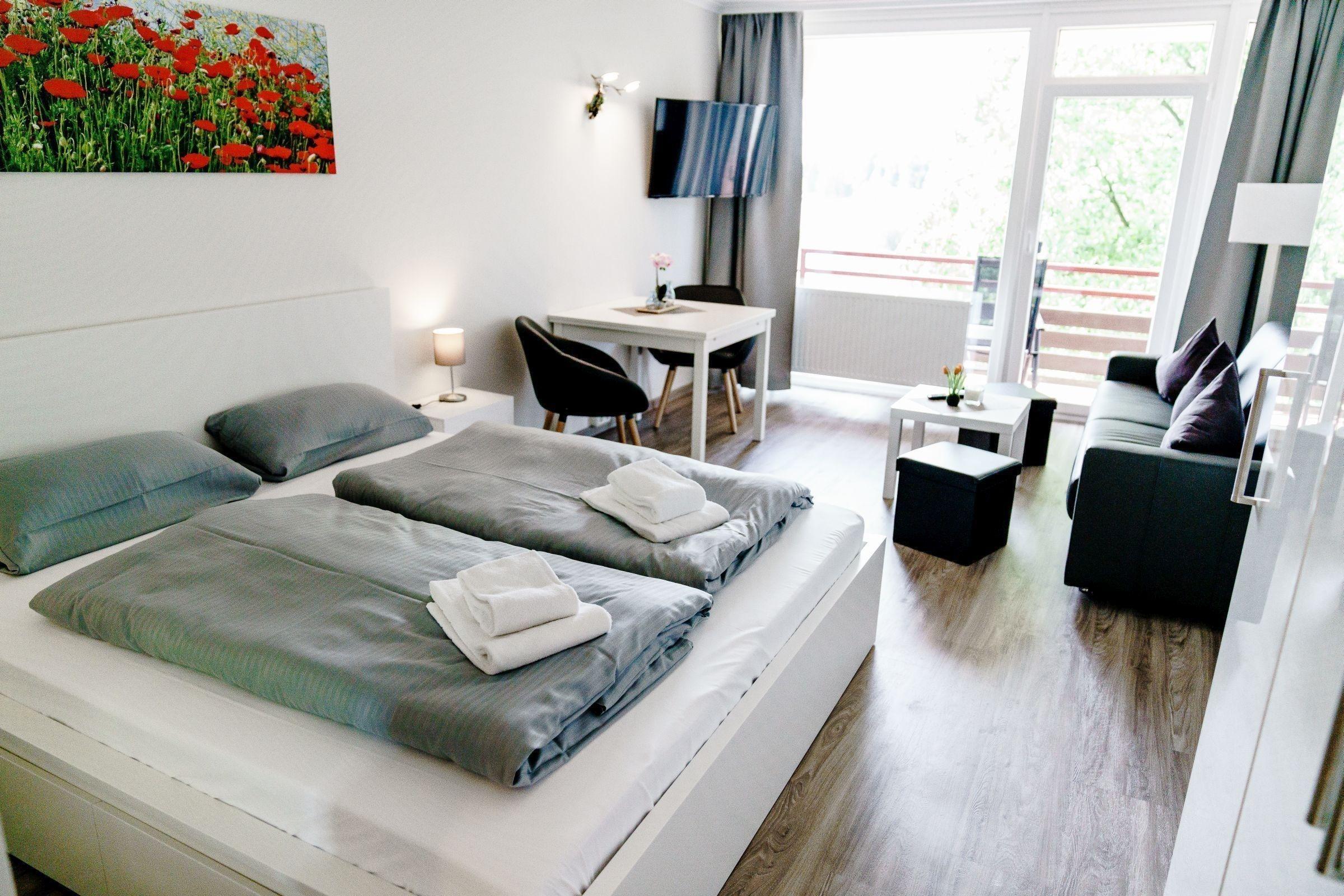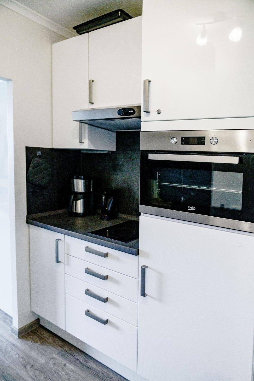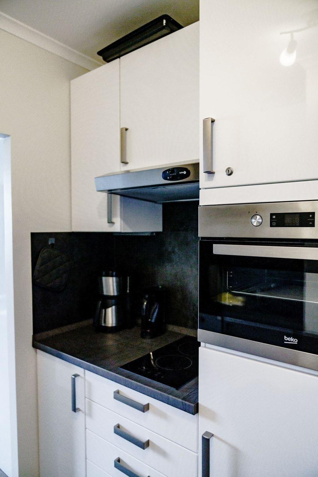 In einer modernen Ferienwohnung erwartet die Gäste eine stilvolle und komfortable Ausstattung. Das Schlafzimmer ist mit einem Doppelbett ausgestattet, während das Wohnschlafzimmer eine praktische Schlafcouch bietet. Die Küche überzeugt mit einer gut ausgestatteten Küchenzeile, die einen Geschirrspüler, Elektro-/Gasherd, Backofen, Mikrowelle, Kühlschrank, Kaffeemaschine, Toaster und Gefriermöglichkeiten umfasst. Ein Esstisch lädt zum gemeinsamen Speisen ein. Für Entspannung sorgt das Badezimmer mit Dusche und Haartrockner. Der Wohnbereich ist mit einer HiFi-Anlage und TV ausgestattet, um die Freizeit angenehm zu gestalten. Wi-Fi mit einer Geschwindigkeit von 25 MBit/s ist ebenfalls vorhanden. Die Wohnung verfügt über Heizung, Badetücher, Geschirr und Besteck sowie weitere Annehmlichkeiten wie einen Parkplatz und einen Fahrstuhl. Ein Safe und Rauchmelder bieten zusätzliche Sicherheit, während eine Garderobe für die persönliche Ablage sorgt.