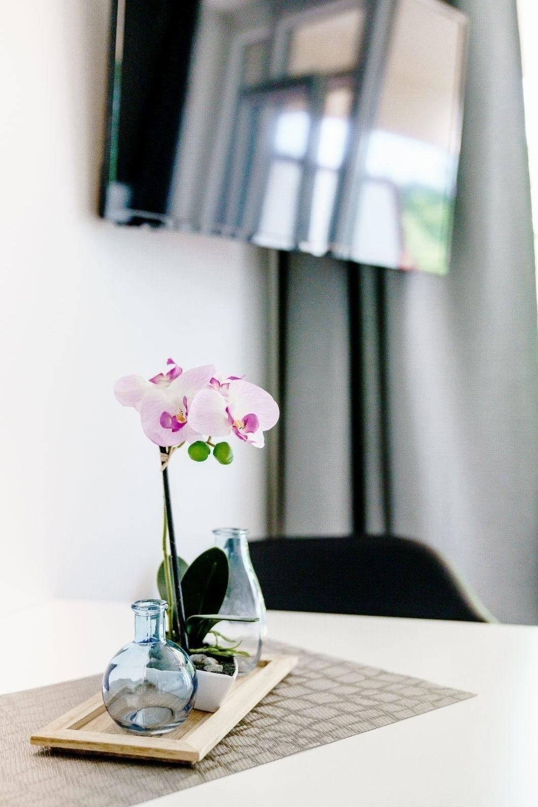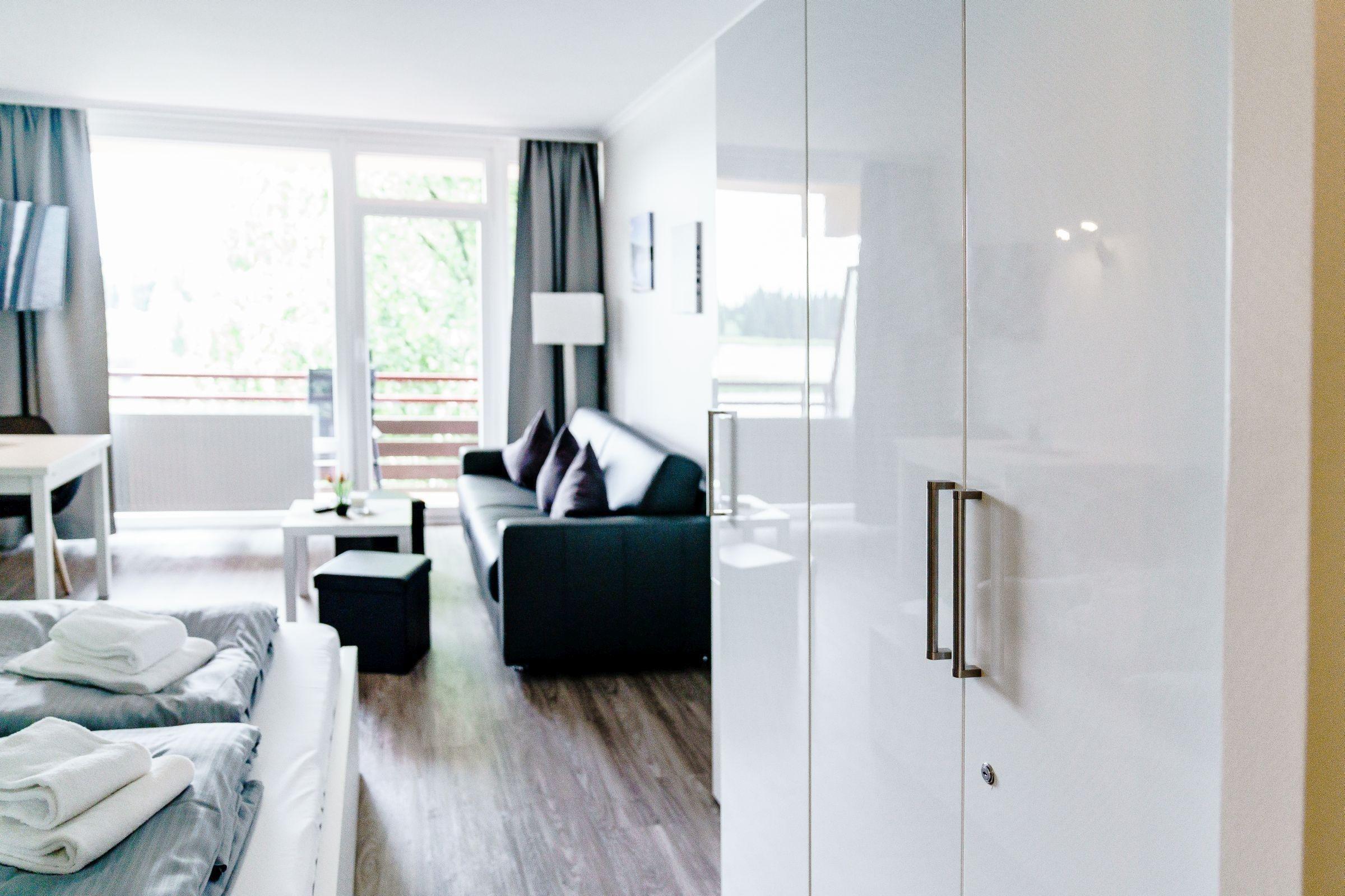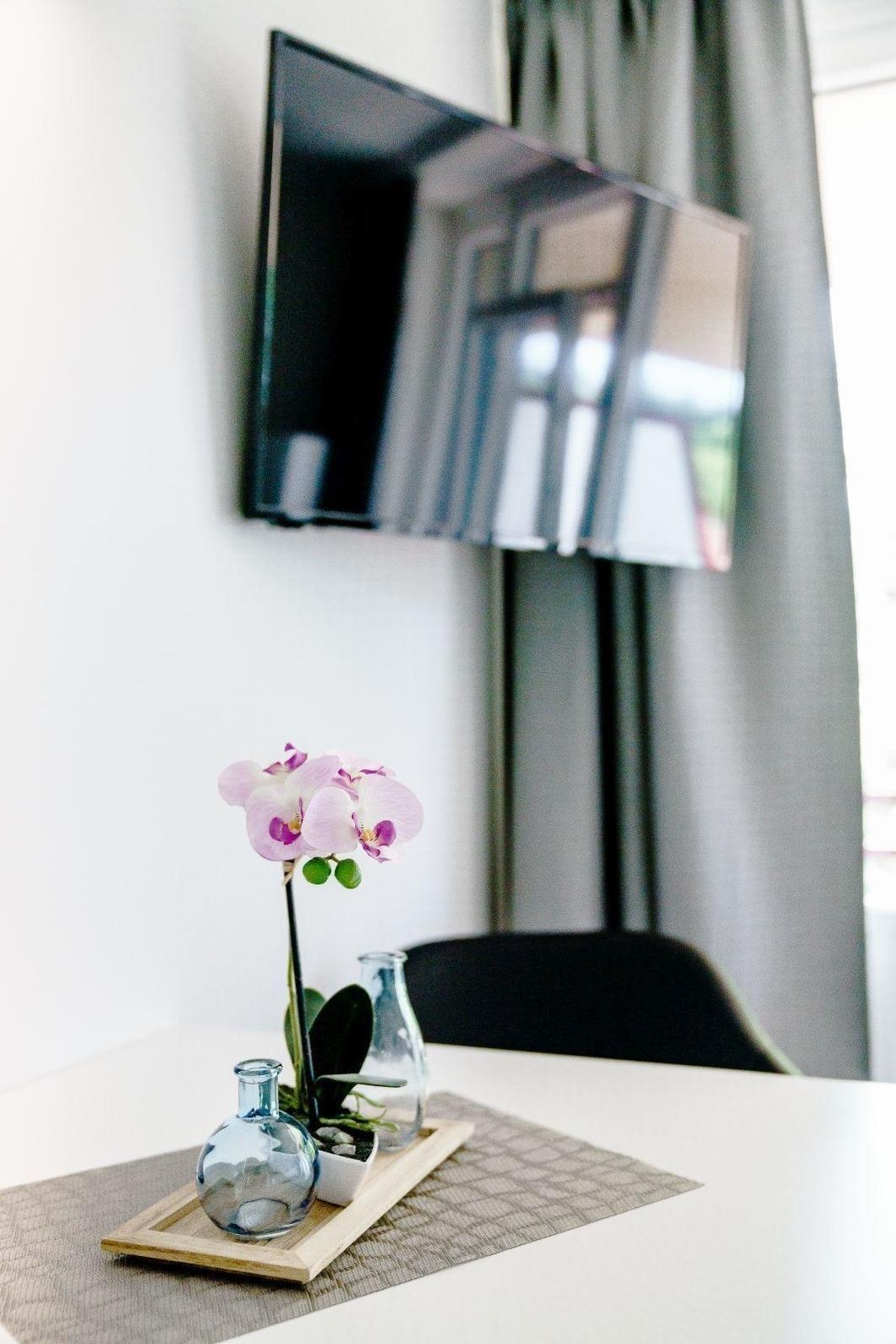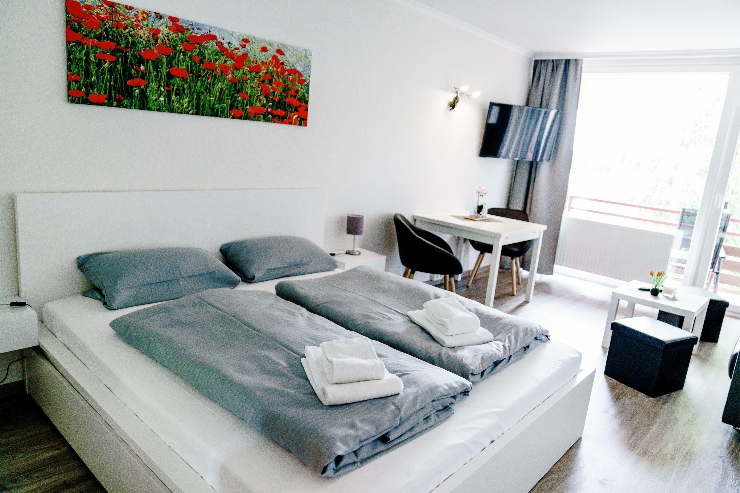 In einer modernen Ferienwohnung erwartet die Gäste eine stilvolle und komfortable Ausstattung. Das Schlafzimmer ist mit einem Doppelbett ausgestattet, während das Wohnschlafzimmer eine praktische Schlafcouch bietet. Die Küche überzeugt mit einer gut ausgestatteten Küchenzeile, die einen Geschirrspüler, Elektro-/Gasherd, Backofen, Mikrowelle, Kühlschrank, Kaffeemaschine, Toaster und Gefriermöglichkeiten umfasst. Ein Esstisch lädt zum gemeinsamen Speisen ein. Für Entspannung sorgt das Badezimmer mit Dusche und Haartrockner. Der Wohnbereich ist mit einer HiFi-Anlage und TV ausgestattet, um die Freizeit angenehm zu gestalten. Wi-Fi mit einer Geschwindigkeit von 25 MBit/s ist ebenfalls vorhanden. Die Wohnung verfügt über Heizung, Badetücher, Geschirr und Besteck sowie weitere Annehmlichkeiten wie einen Parkplatz und einen Fahrstuhl. Ein Safe und Rauchmelder bieten zusätzliche Sicherheit, während eine Garderobe für die persönliche Ablage sorgt.