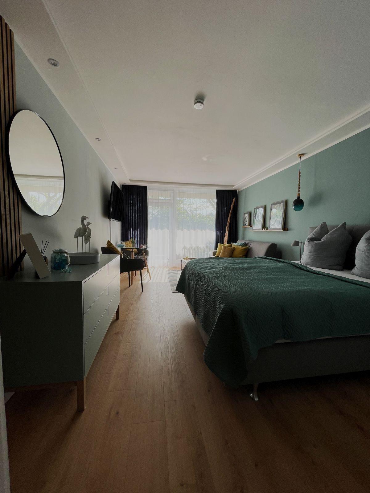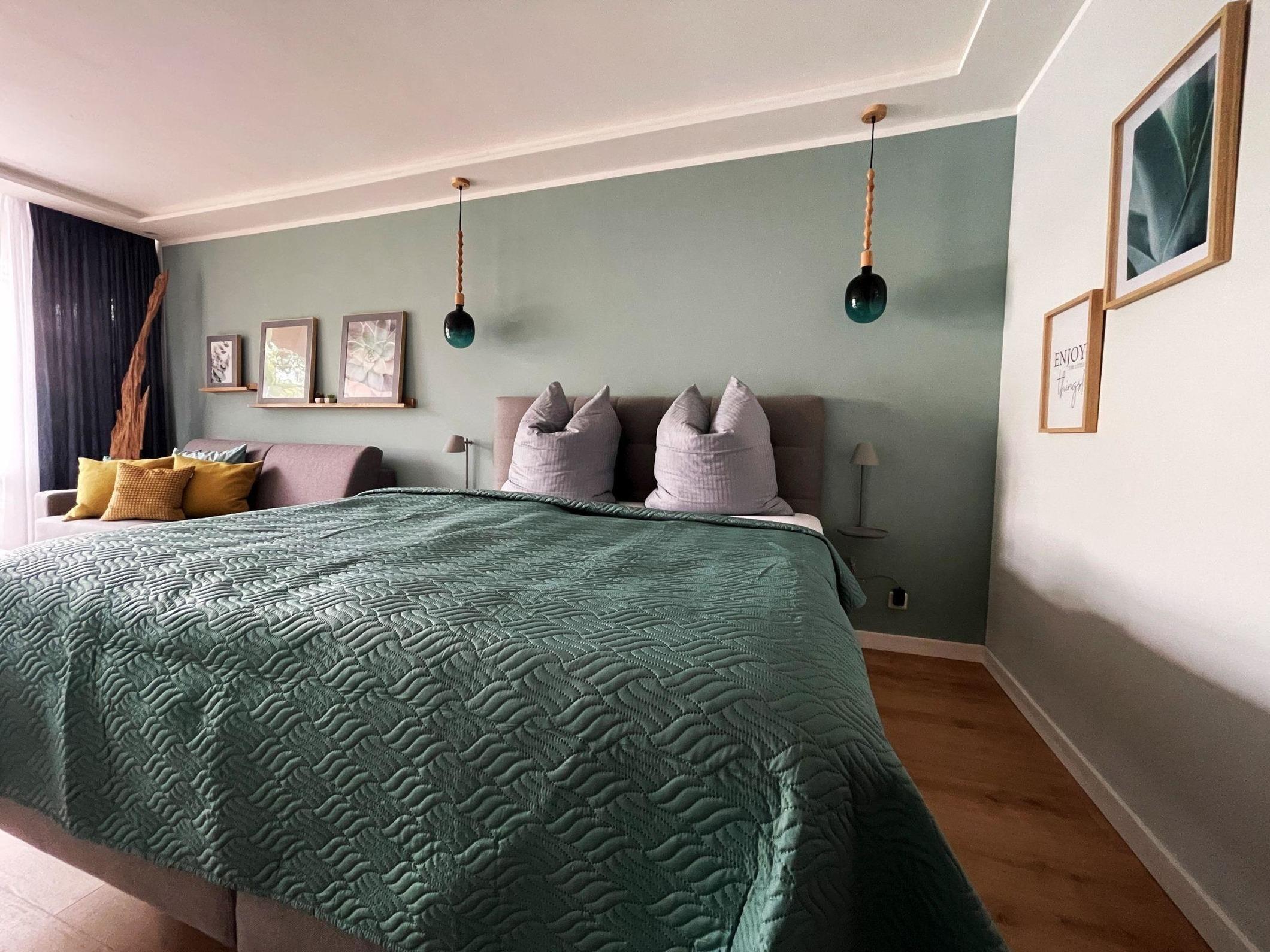 Die Ferienwohnung bietet eine komfortable und gut ausgestattete Unterkunft für entspannte Tage. Sie verfügt über ein Schlafzimmer mit einem gemütlichen Doppelbett sowie ein Wohnschlafzimmer, das mit einer Schlafcouch ausgestattet ist. Das zeitgemäße Duschbad verfügt über einen Haartrockner und ist funktional gestaltet.