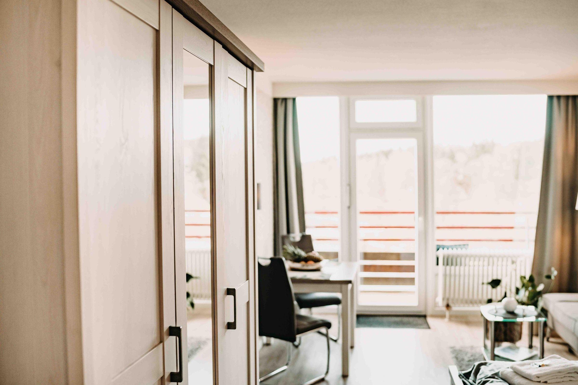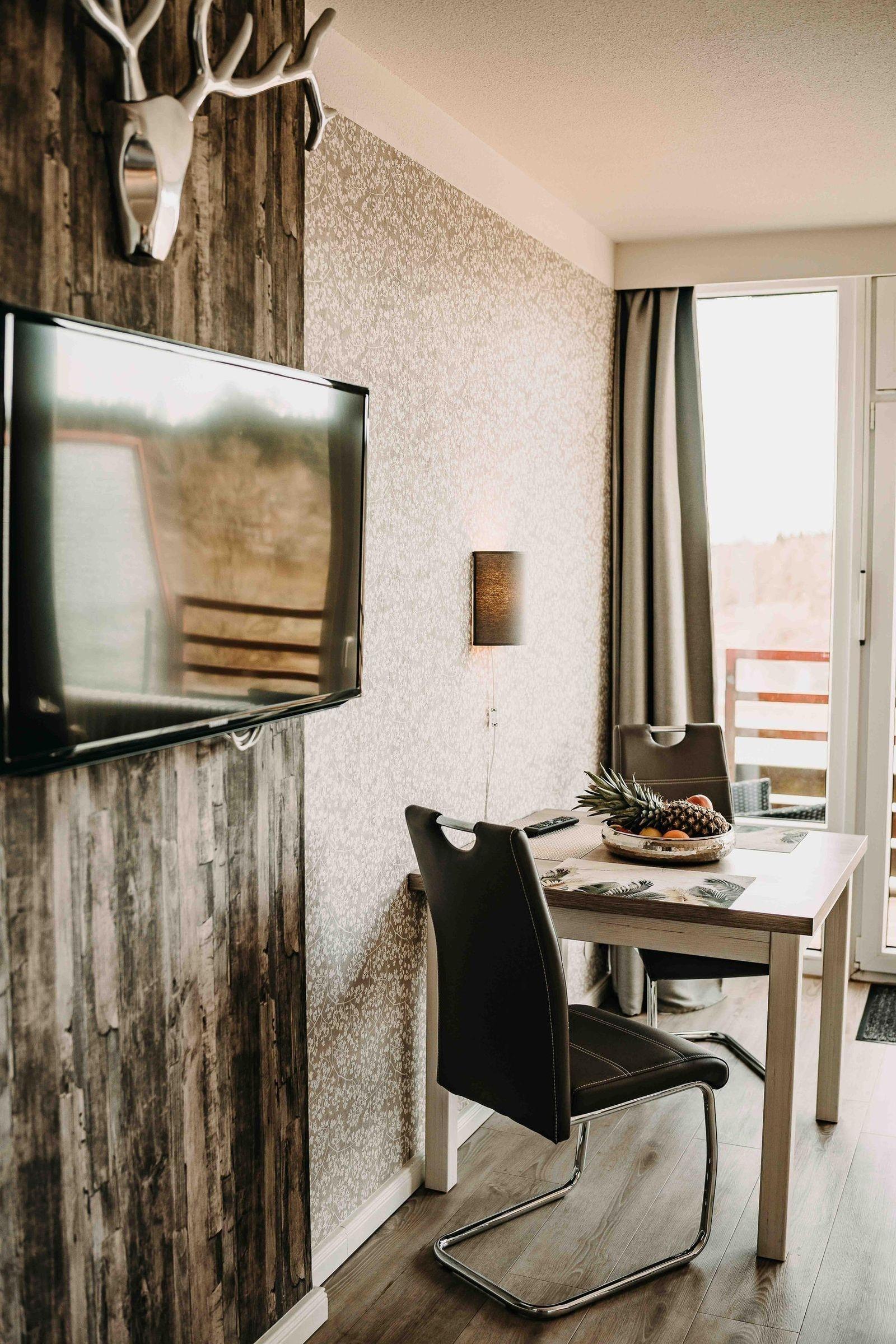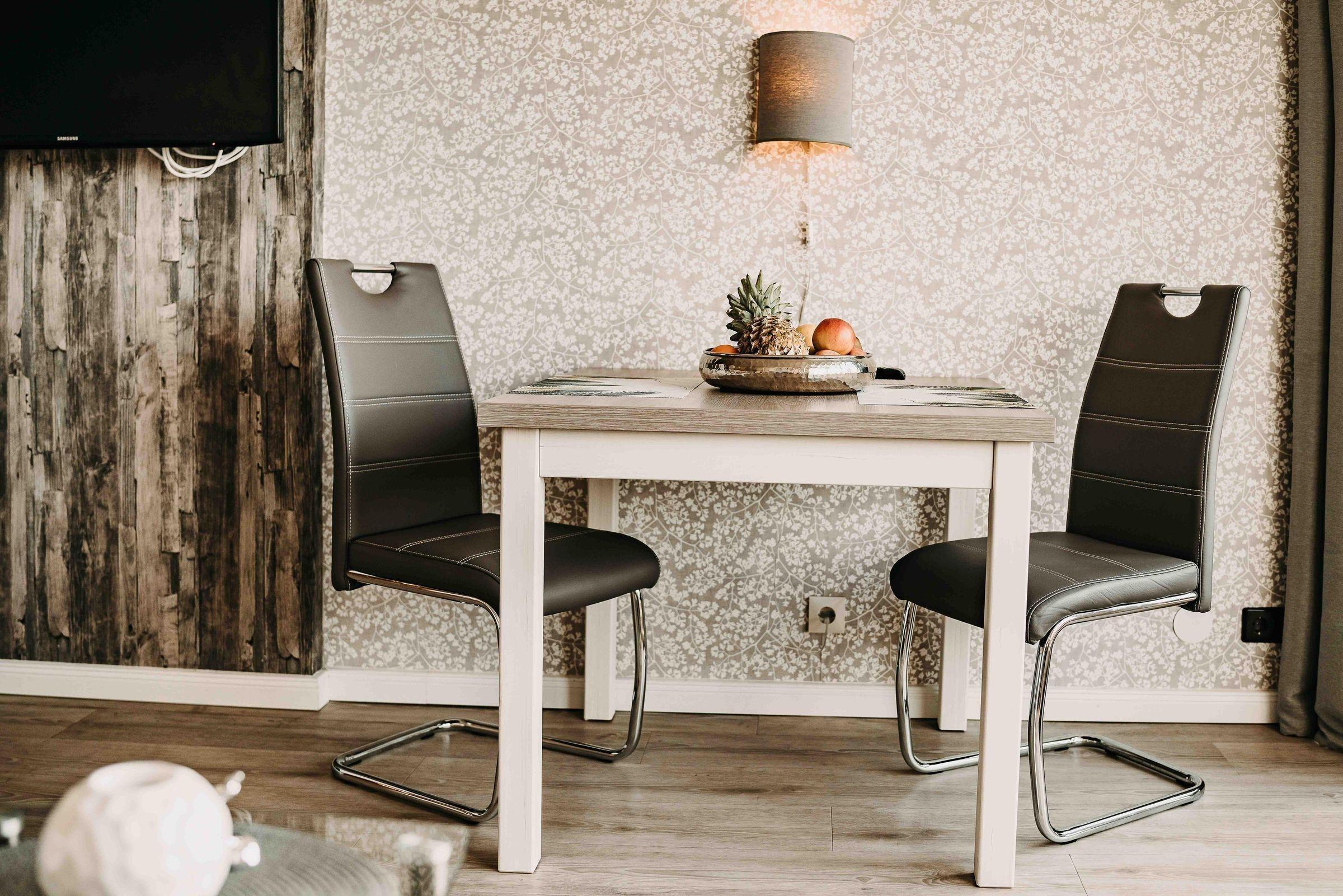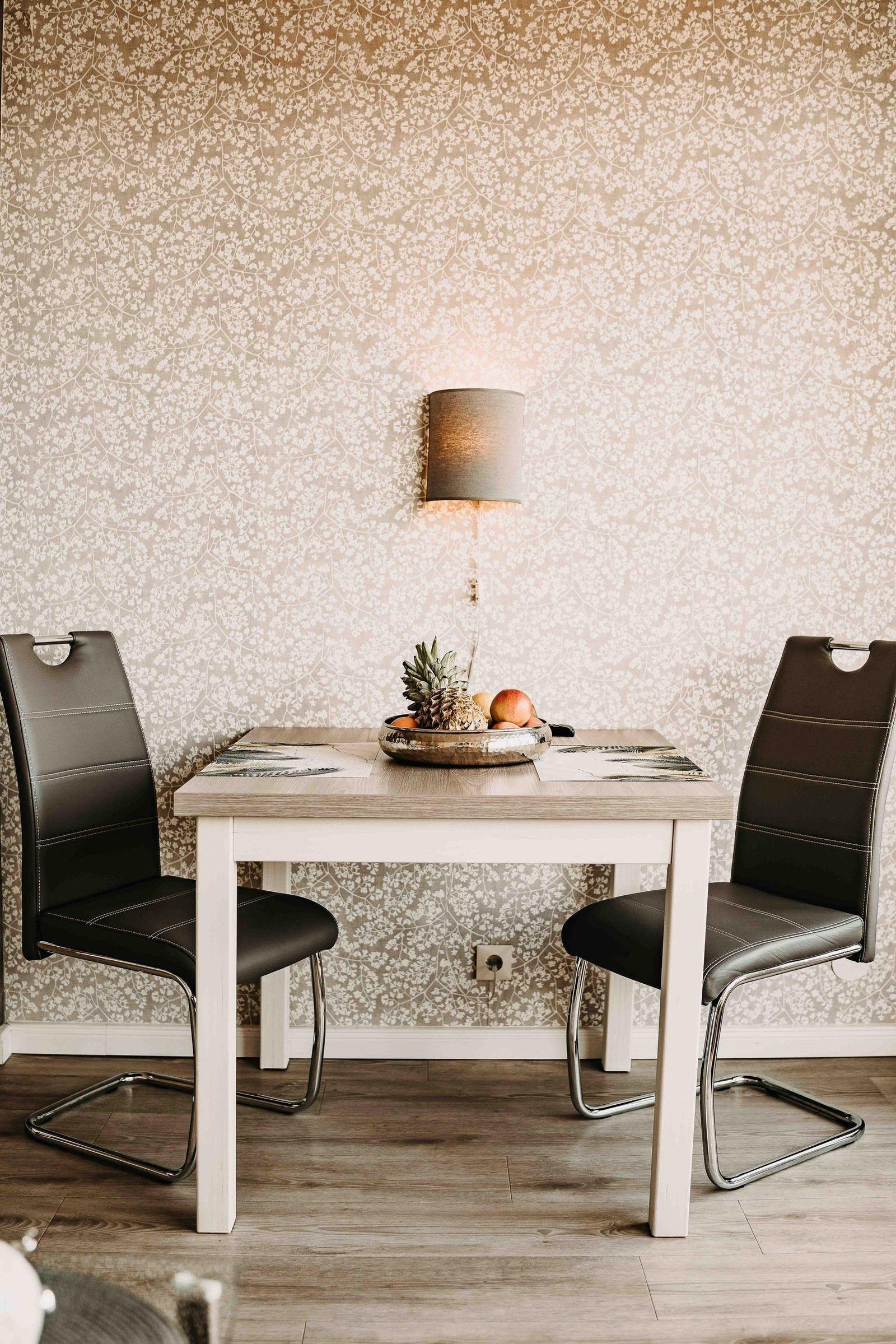 Die Ferienwohnung bietet einen einladenden Balkon, ideal für entspannte Stunden im Freien. Hier kann man die frische Luft genießen und den Blick auf die Umgebung schweifen lassen. Der private Außenbereich lädt dazu ein, ungestört zu verweilen und die Zeit auszukosten, sei es beim Frühstück in der Morgensonne oder beim Ausklang des Tages mit einem schönen Drink.