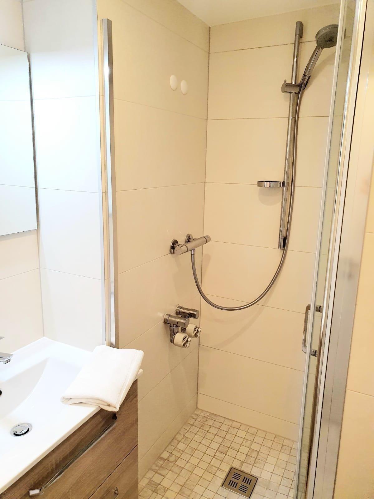 Die Ferienwohnung bietet eine komfortable und moderne Ausstattung, die keine Wünsche offenlässt. Sie verfügt über ein einladendes Schlafzimmer mit einem Doppelbett, das für erholsame Nächte sorgt. Die offene Küchenzeile ist mit einem Elektro-/Gasherd, Kühlschrank, Geschirrspüler und einer Kaffeemaschine ausgestattet. Ein Esstisch lädt zu gemeinsamen Mahlzeiten ein, während das Duschbad mit Haartrockner und Badetüchern aufwartet. Für Unterhaltung sorgt eine HiFi-Anlage sowie ein TV. Die Wohnung ist mit WLAN ausgestattet und bietet einen Schreibtisch für Gäste, die auch im Urlaub arbeiten möchten. Gemütliche Sitzgelegenheiten mit Sofa und Sessel laden zum Entspannen ein. Ein Fahrstuhl erleichtert den Zugang. Rauchmelder, Geschirrtücher und Geschirr sowie Besteck sind ebenfalls vorhanden, sodass die Gäste sich sofort wie zu Hause fühlen können. Diese Ferienwohnung ist der ideale Rückzugsort für einen unvergesslichen Aufenthalt.