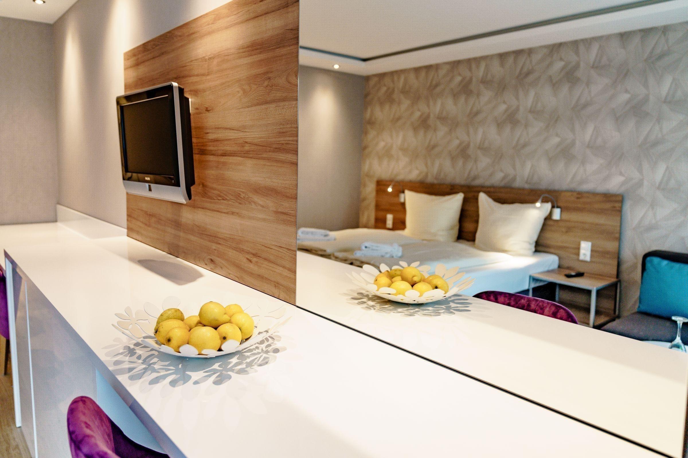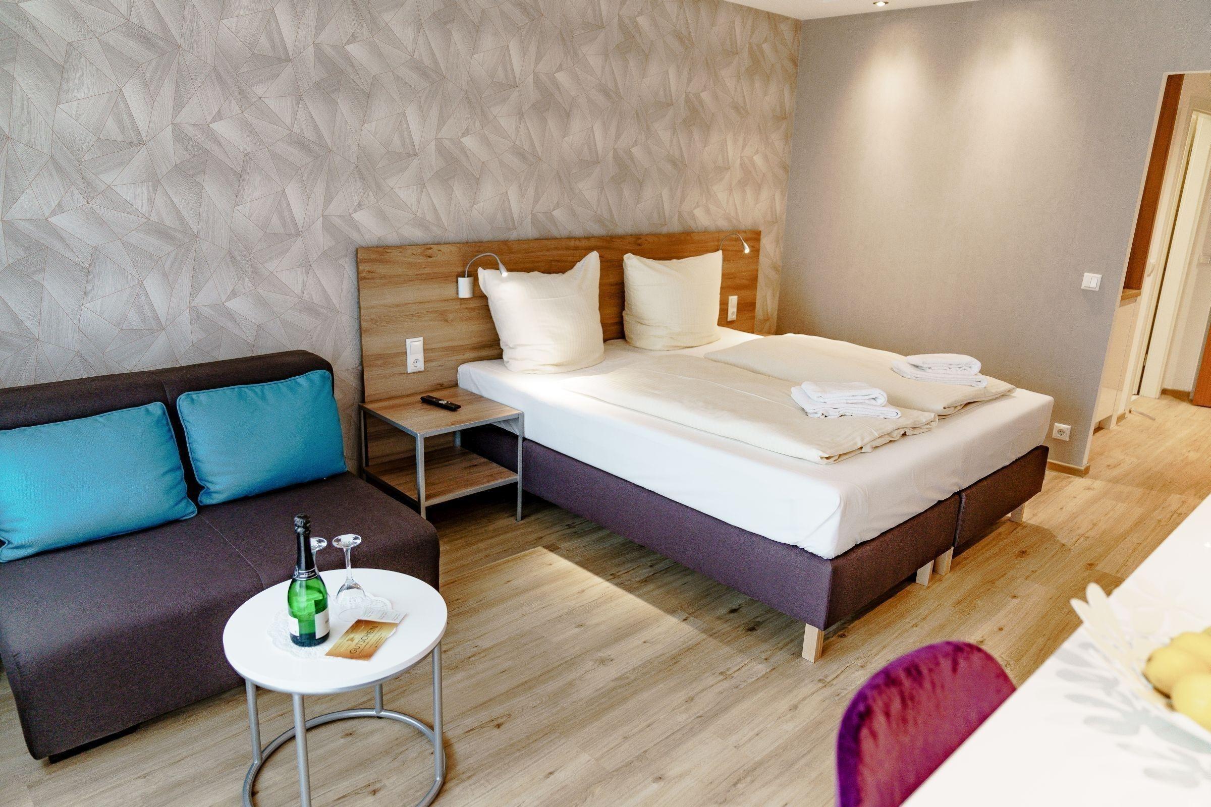 Die Ferienwohnung bietet ein einladendes Ambiente mit einem komfortablen Schlafzimmer, das mit einem Doppelbett und einem Einzelbett ausgestattet ist. Der lichtdurchflutete Wohnbereich lädt zum Entspannen ein und ist mit einem Sofa, Sessel und einem Esstisch ausgestattet. Die Küchenzeile verfügt über alle notwendigen Geräte, darunter einen Geschirrspüler, Elektro-/Gasherd, Mikrowelle, Kühlschrank und Kaffeemaschine. Für zusätzlichen Komfort sorgen der Wasserkocher, Toaster und die Gefriermöglichkeit. Das Badezimmer ist modern gestaltet und bietet eine Duschbad. Zur weiteren Ausstattung zählen ein TV, Schreibtisch, Schrank, Kommode sowie Badetücher und Geschirrtücher. Die Wohnung ist außerdem mit einem Fahrstuhl erreichbar. Ein Rauchmelder sorgt für Sicherheit. Internet ist ebenfalls vorhanden, jedoch ohne WLAN, ideal für eine unkomplizierte Nutzung.