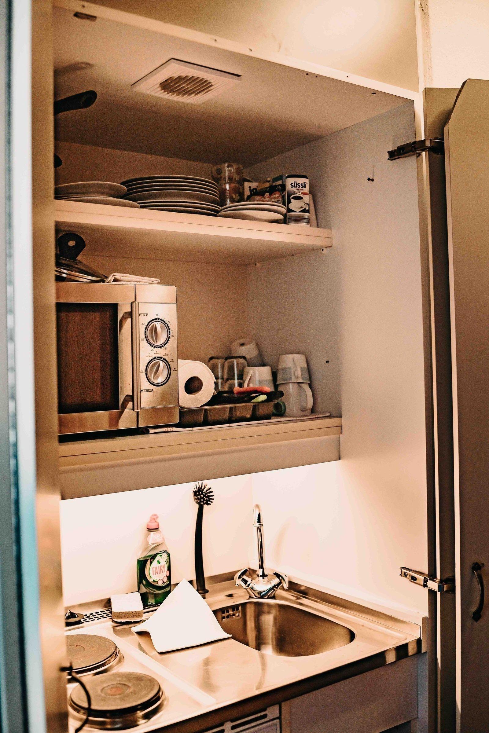 Praktische Extras wie WLAN, Geschirr, Besteck, Geschirrtücher und ein Starterset mit Gewürzen runden das Angebot ab. Die Wohnung verfügt zudem über einen Fahrstuhl, Heizung und eine Garderobe. Ein Festnetztelefon ist ebenfalls vorhanden, um den Kontakt zur Außenwelt zu halten.