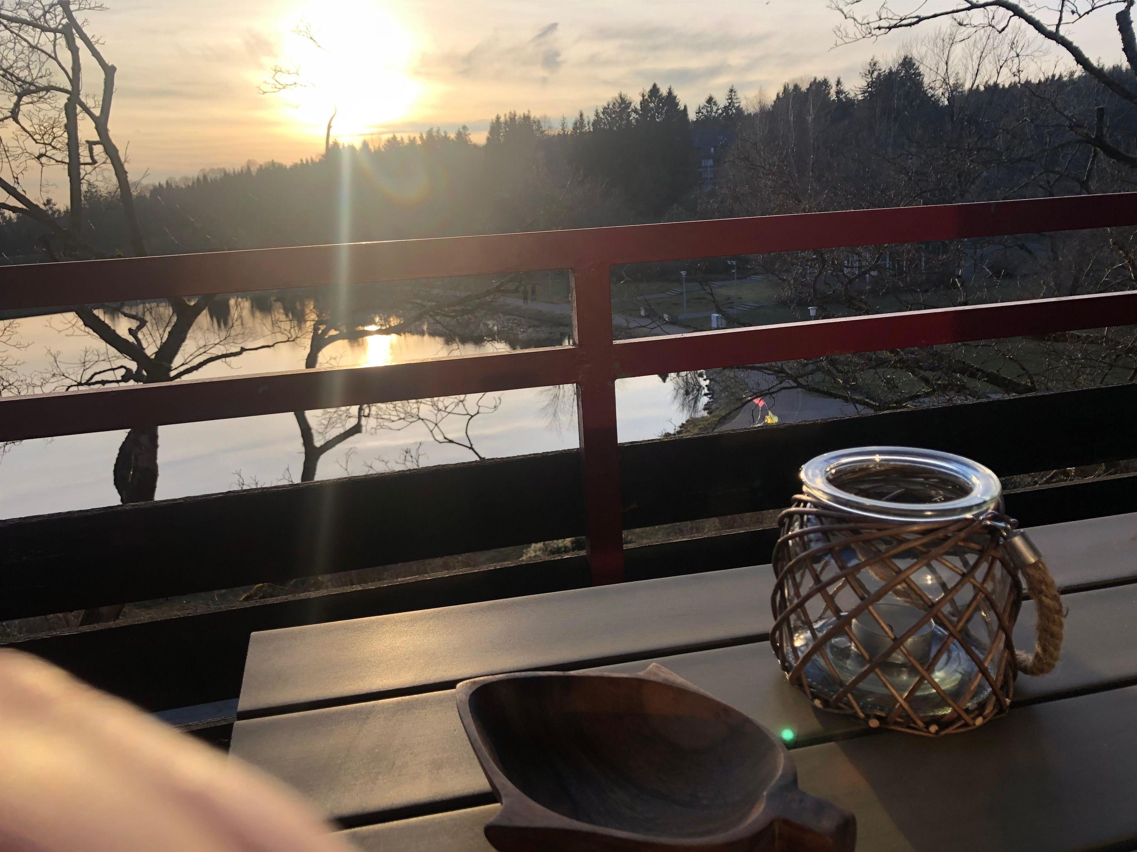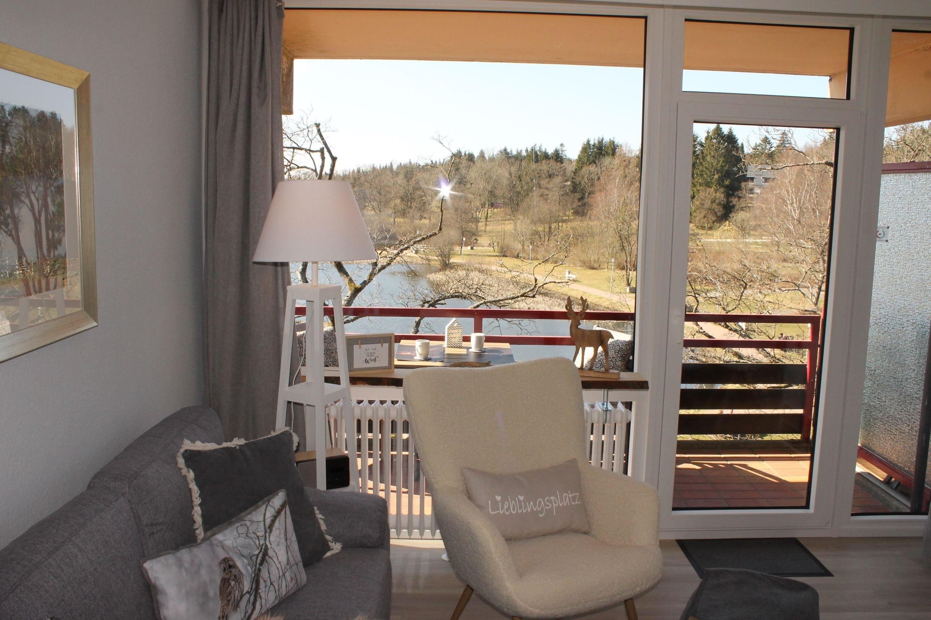 Wir laden Sie herzlich ein in unser kleines Apartment mit Balkon und Panoramablick auf den See. Sie finden hier alles was Sie für einen entspannten Urlaub benötigen, einschließlich bezogenen Betten und Handtüchern. Der Balkon, mit zwei Stühlen und einem Tisch, hat schon früh Sonne und am Abend geht diese hinter den Tannen unter. Das große Bett hat eine Liegefläche von 180x200 cm. Das Sofa und ein gemütlicher Sessel laden zum Relaxen ein. Die Küche hat ein zweier Ceranfeld, einen kleinen Geschirrspüler, einen Kühlschrank, einen Gastrobackofen und alles was man so in einer Küche benötigt.