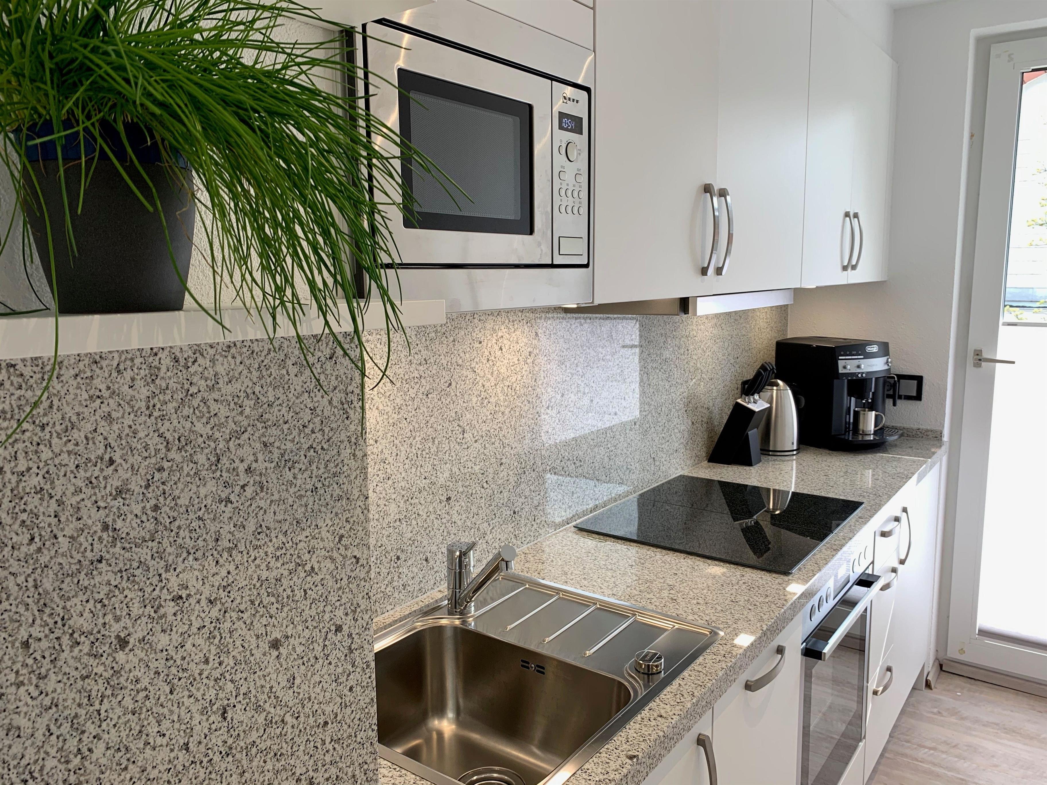 Die separate Einbauküche bietet Ihnen: Geschirrspülmaschine, 4-Zonen Induktionsherd mit Backofen, Mikrowelle, Kühlschrank mit Gefrierfach, Wasser- und Eierkocher, Toaster, Filterkaffeemaschine und ein Kaffeevollautomat für frisch gemahlenen Bohnenkaffee! Auf Wunsch und auf Anfrage erhalten Sie auch gerne weitere Küchengeräte wie Handmix- und Standmixgeräte!