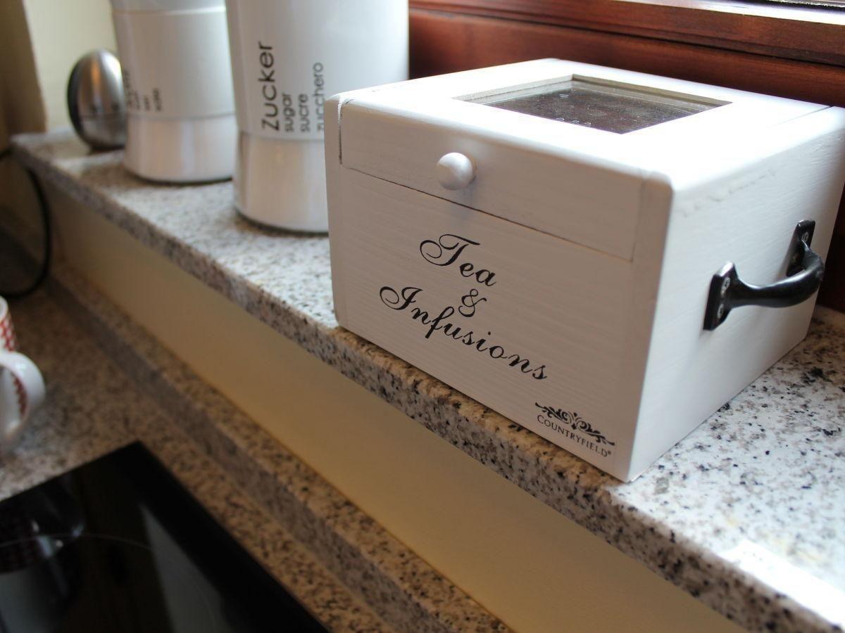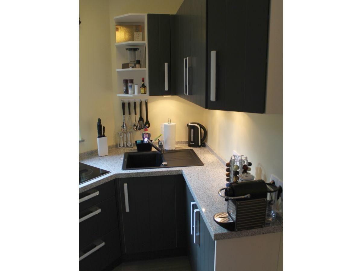 Die offene Küche ist auf Selbstversorger optimal abgestimmt und verfügt über zahlreiche hochwertige Geräte: Induktionsherd, Backofen, Mikrowelle, Espressomaschine, Kaffeemaschine, Spülmaschine, Mixer, Toaster, Wasserkocher und Kühlschrank mit Gefrierfach gehören zur gehobenen Grundausstattung. Küchenutensilien, Geschirr, Besteck, Gewürze und Geschirrhandtücher sind vorhanden. Die Erstausstattung umfasst außerdem Bettwäsche, Handtücher sowie Reinigungsmittel.