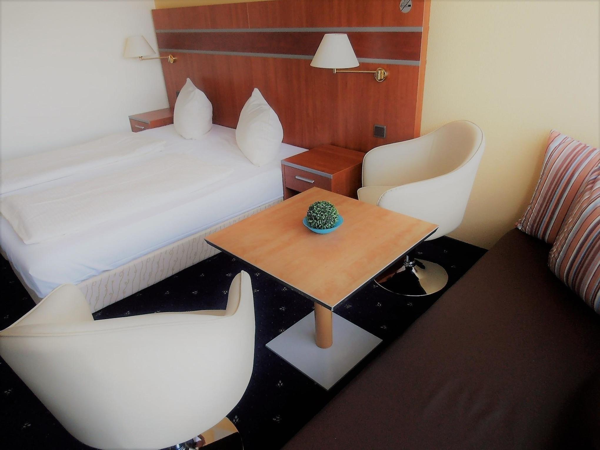 Ein einladendes Wohnzimmer, ausgestattet mit einem Sofa und einem Schreibtisch, lädt zum Entspannen und Arbeiten ein. Moderne Annehmlichkeiten wie ein TV und kostenloses Internet ohne WLAN runden das Angebot ab. Die Wohnung ist bequem über einen Fahrstuhl zugänglich und bietet zudem eine Garderobe sowie Rauchmelder für zusätzliche Sicherheit. Diese Ferienwohnung ist der ideale Ort für einen erholsamen Aufenthalt.