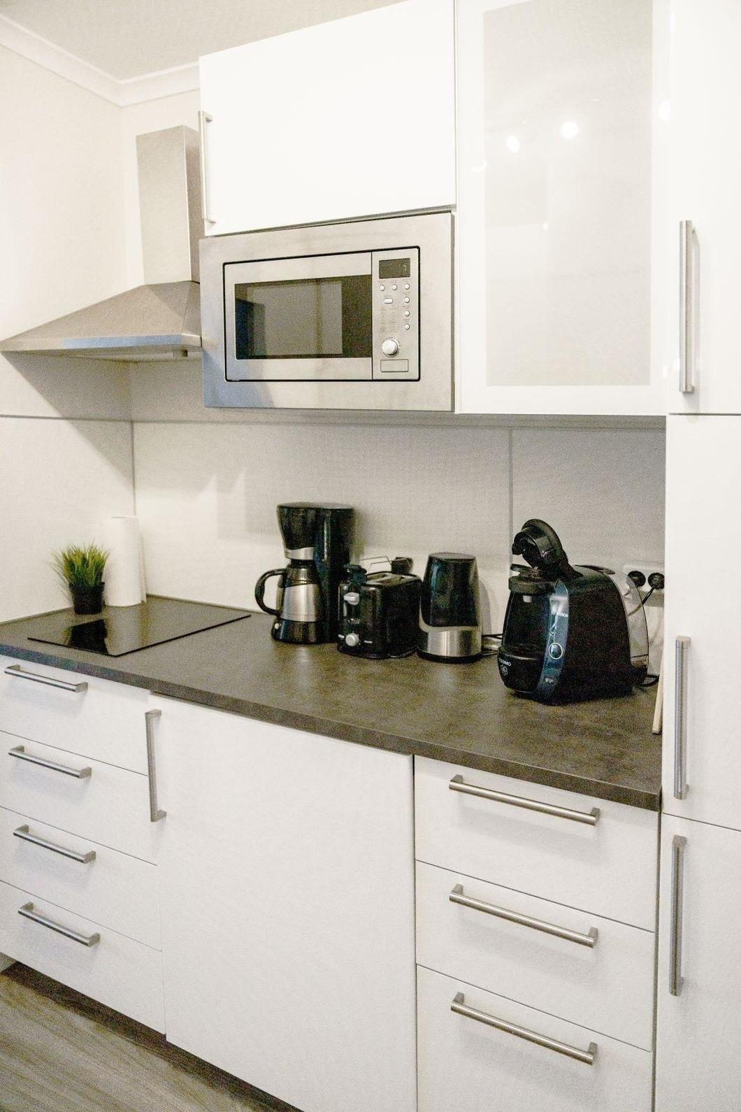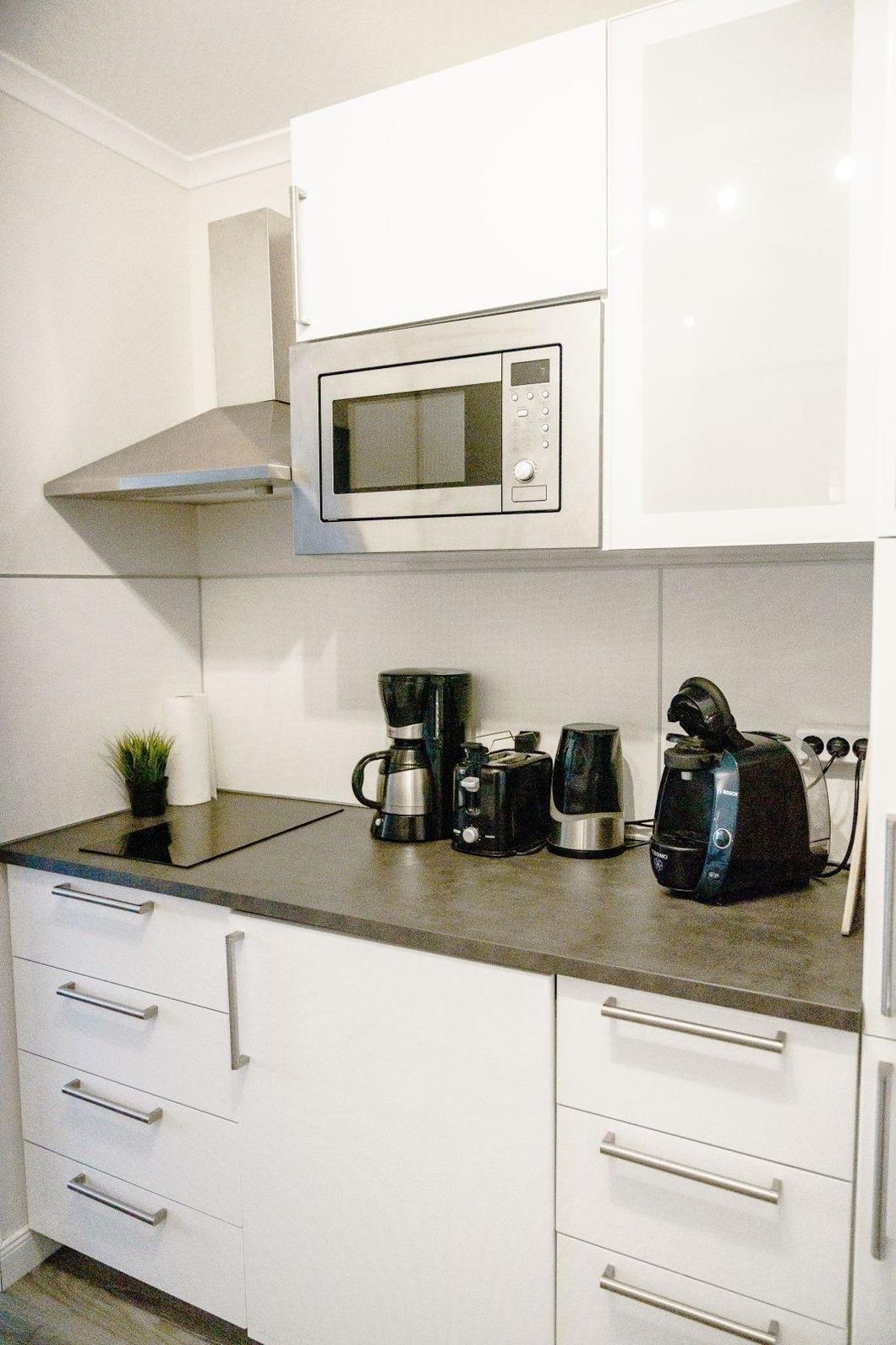Die Ferienwohnung präsentiert sich als idealer Rückzugsort mit durchdachter Ausstattung und einer barrierefreien Gestaltung. Sie bietet ein gemütliches Schlafzimmer mit einem Doppelbett sowie ein einladendes Wohnschlafzimmer, das mit einer Schlafcouch ausgestattet ist. Die offene Küche ist mit einem Elektro-/Gasherd, einer Mikrowelle, einem Kühlschrank, einer Kaffeemaschine, einem Toaster und einem Wasserkocher optimal ausgestattet, um kulinarische Köstlichkeiten zu zaubern.