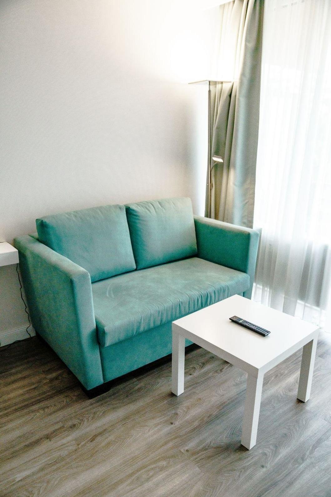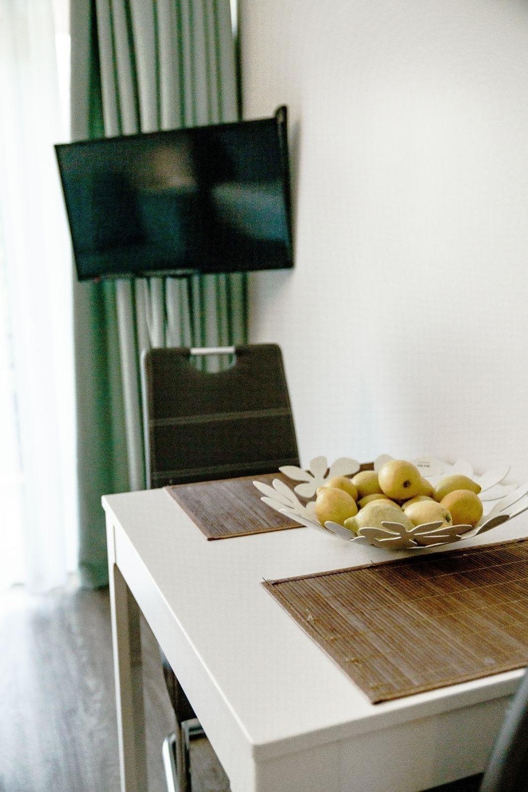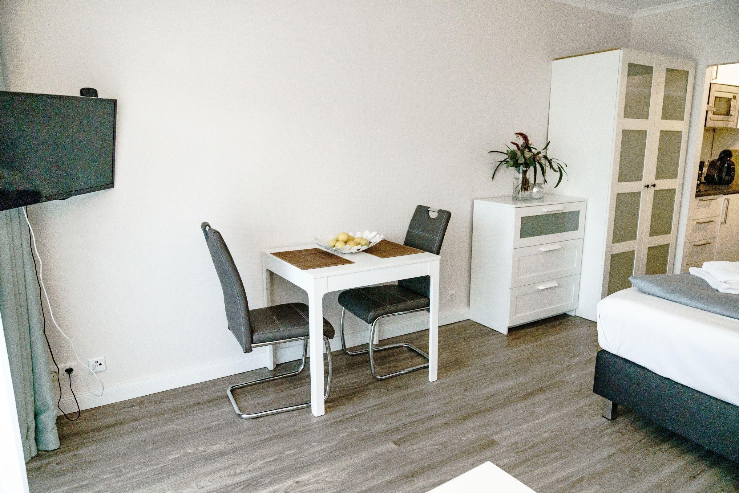 Das Badezimmer verfügt über eine moderne Dusche, einen Haartrockner sowie frische Badetücher. Zum weiteren Komfort gehört ein Esstisch, ein TV für entspannte Abende und ein Sofa zum Entspannen. WLAN mit 25 MBit/s sorgt für durchgehende Internetverbindung. Ein Fahrstuhl und ein Parkplatz stehen ebenfalls zur Verfügung.