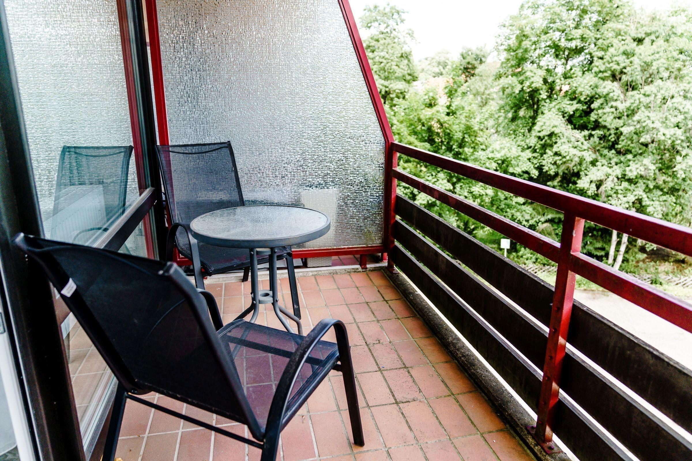 Die Ferienwohnung bietet einen einladenden Balkon, der ideal ist, um die frische Luft und die Aussicht zu genießen. Hier kann man entspannte Stunden verbringen oder den Tag mit einem Frühstück im Freien beginnen. Der private Außenbereich sorgt für Rückzugsmöglichkeiten und Ruhe, sodass der perfekte Ort für Erholung und Entspannung entsteht.