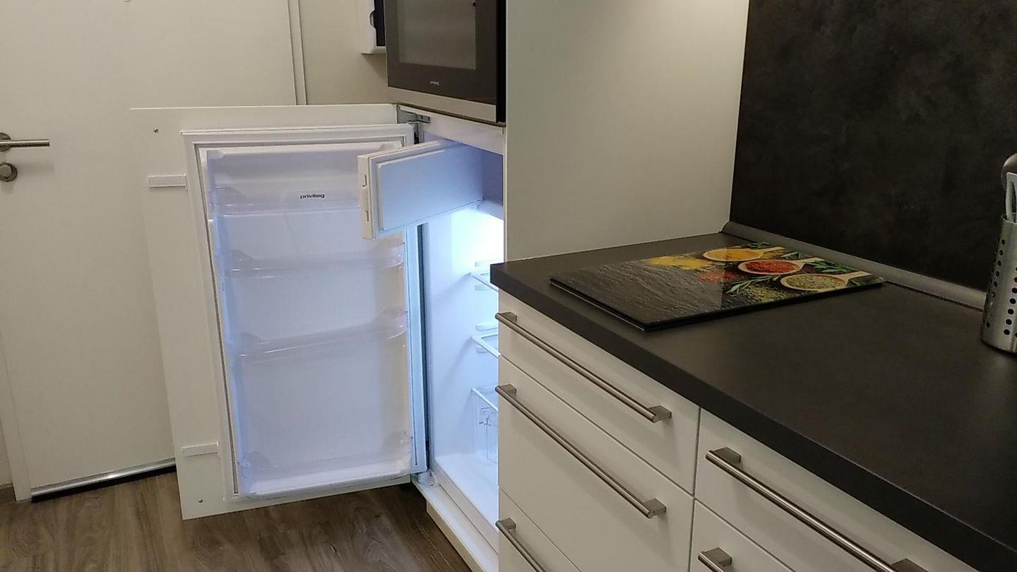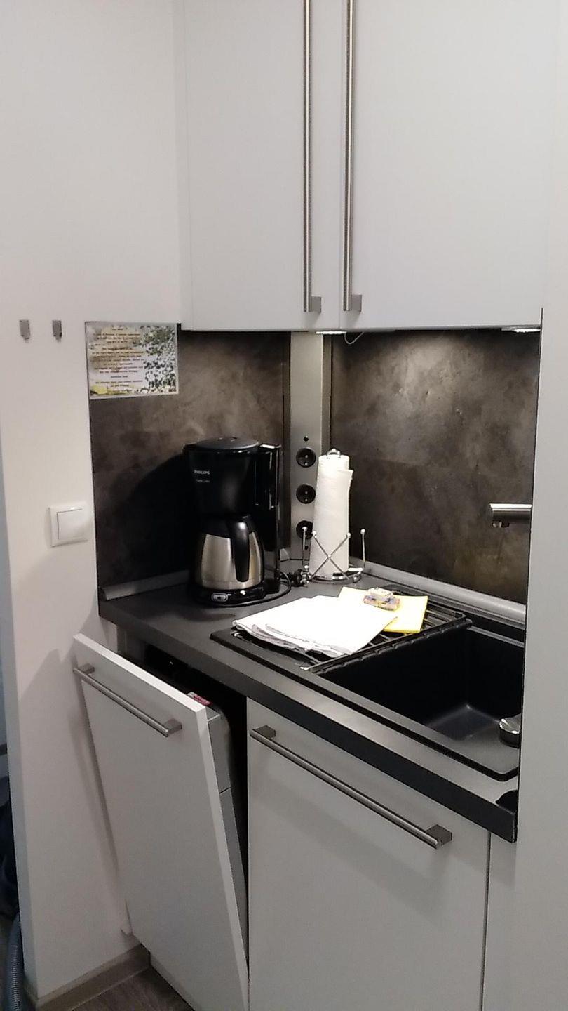 - Küche inkl. 2-Plattenherd, Kühlschrank, Wasserkocher, Kaffeemaschine, Toaster